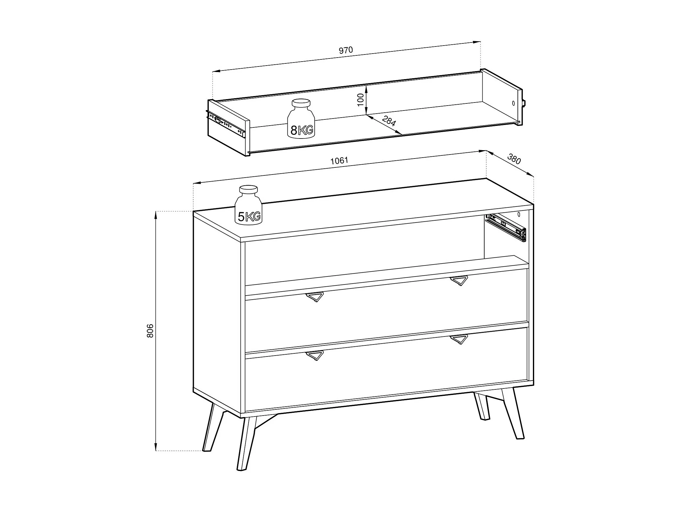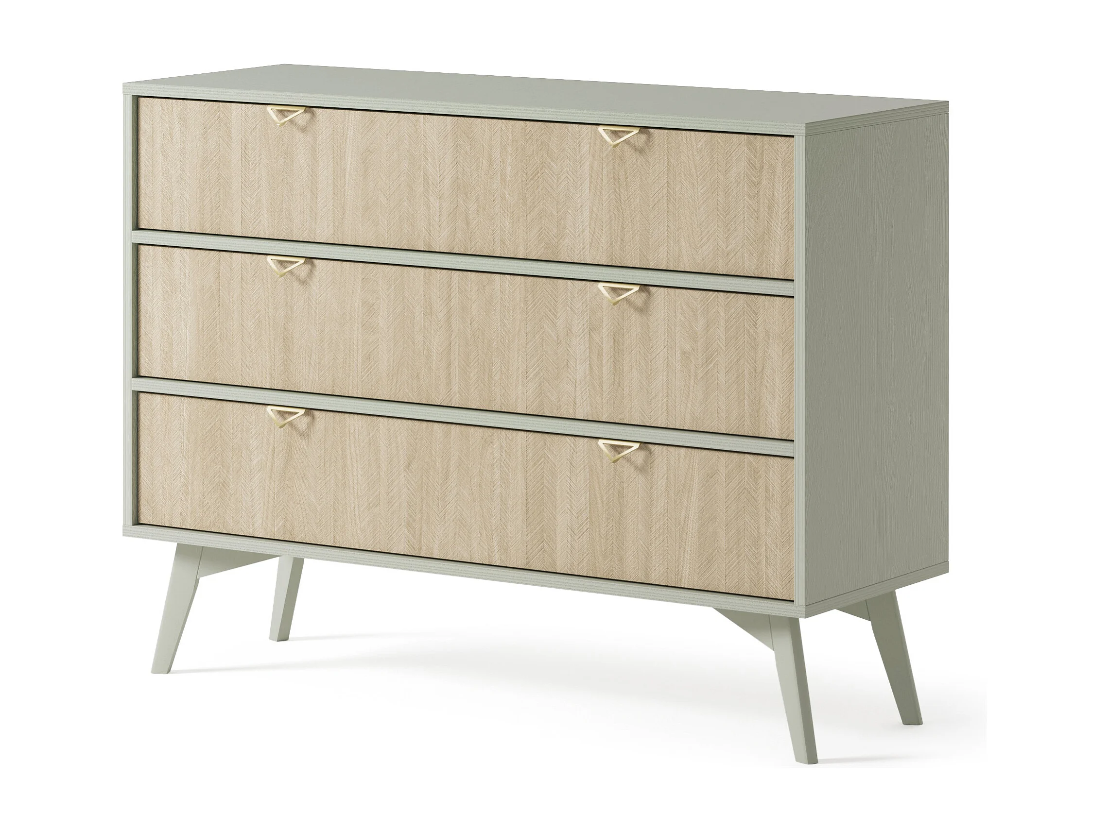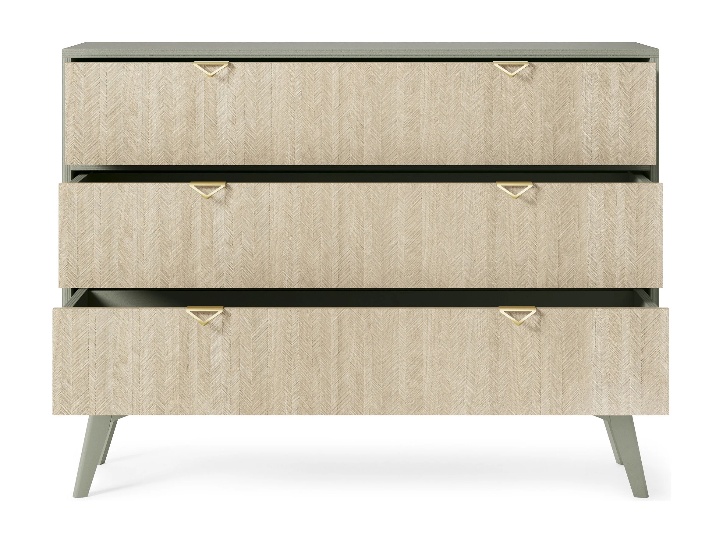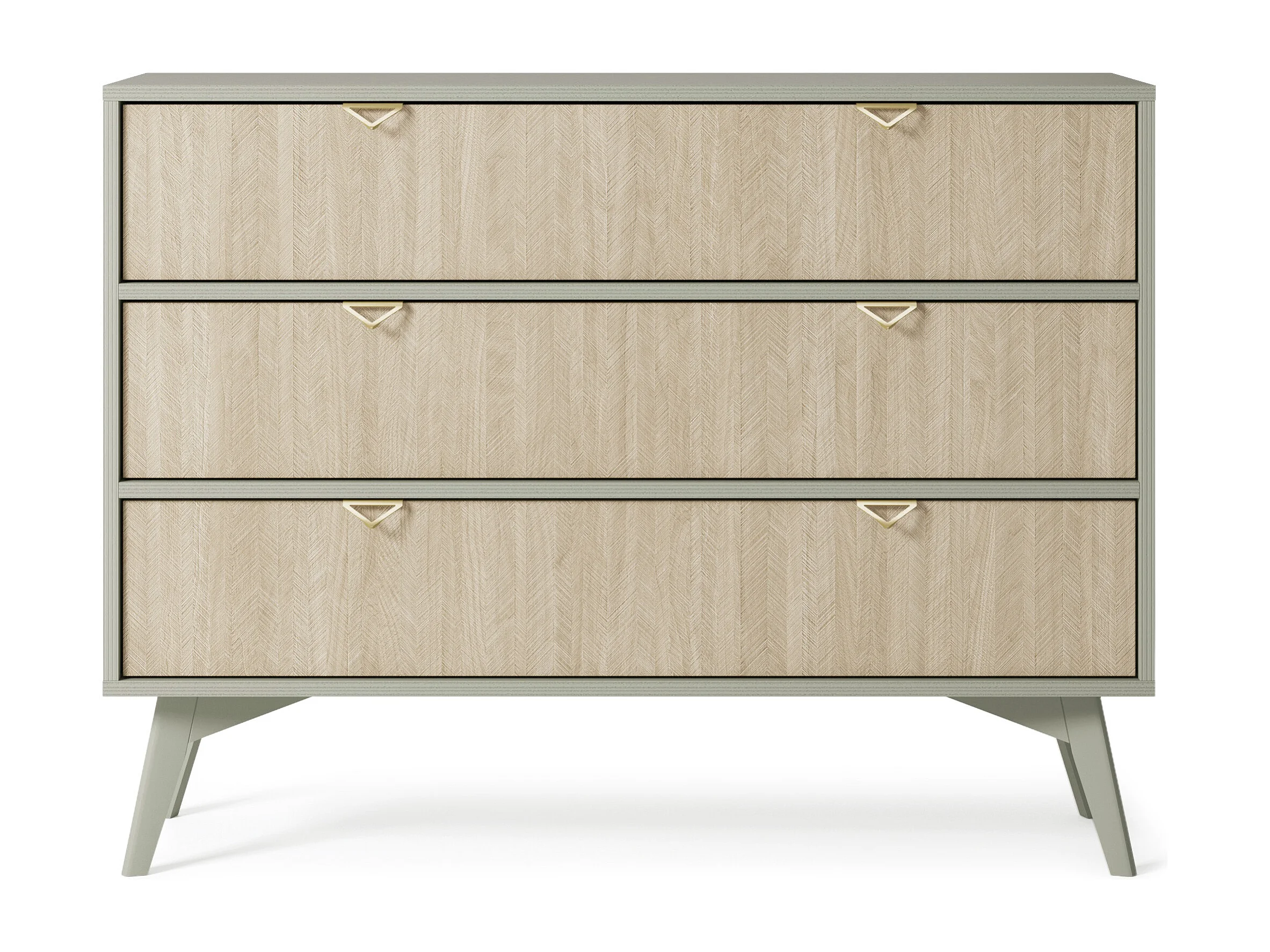 Cassettiera: 3 cassetti, eucalipto/Scandi Chevron, gambe in legno, 106 x 80 x 38 cm