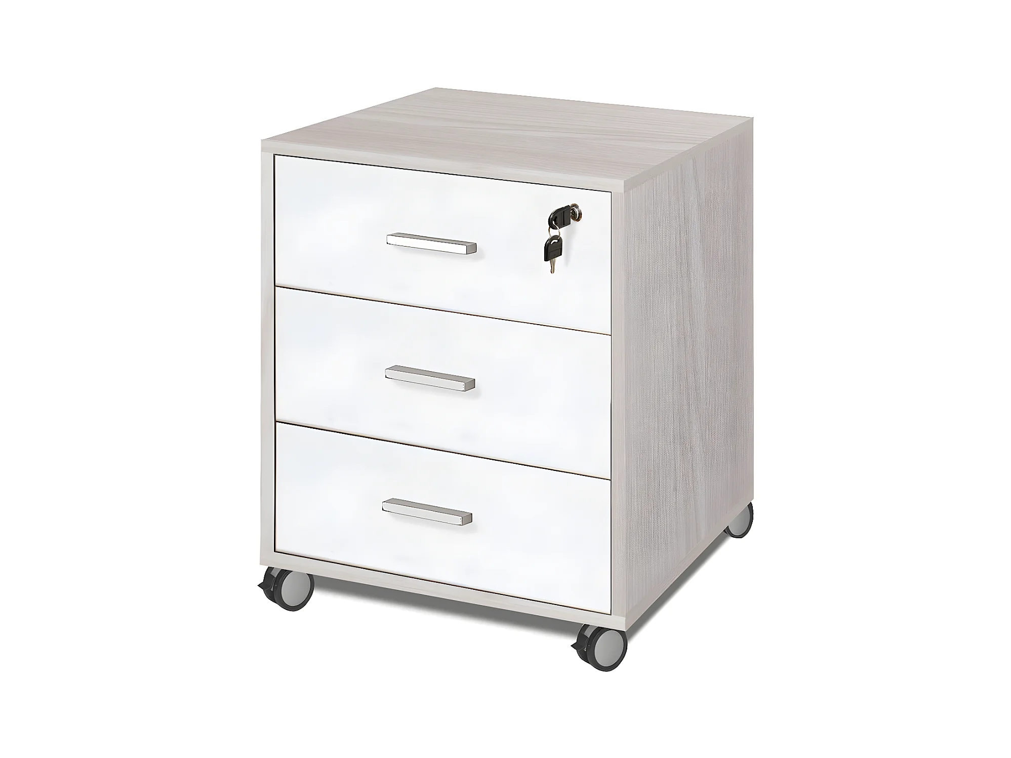 Cassettiera 3 cassetti l50 p41 h70 in truciolare nobilitato color olmo chiato e bianco fiammato