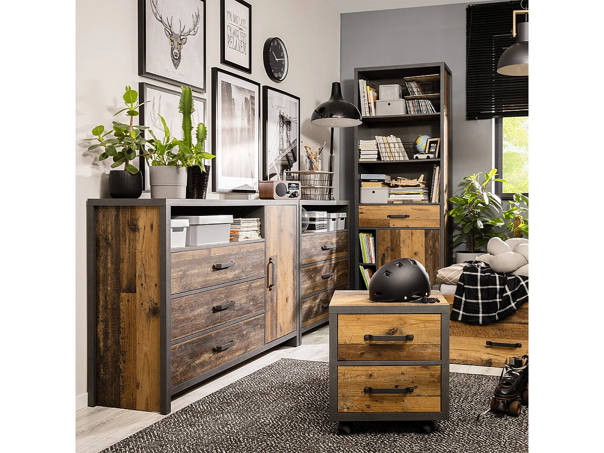 Cassettiera 3 cassetti Paul marrone e grigio 91cm