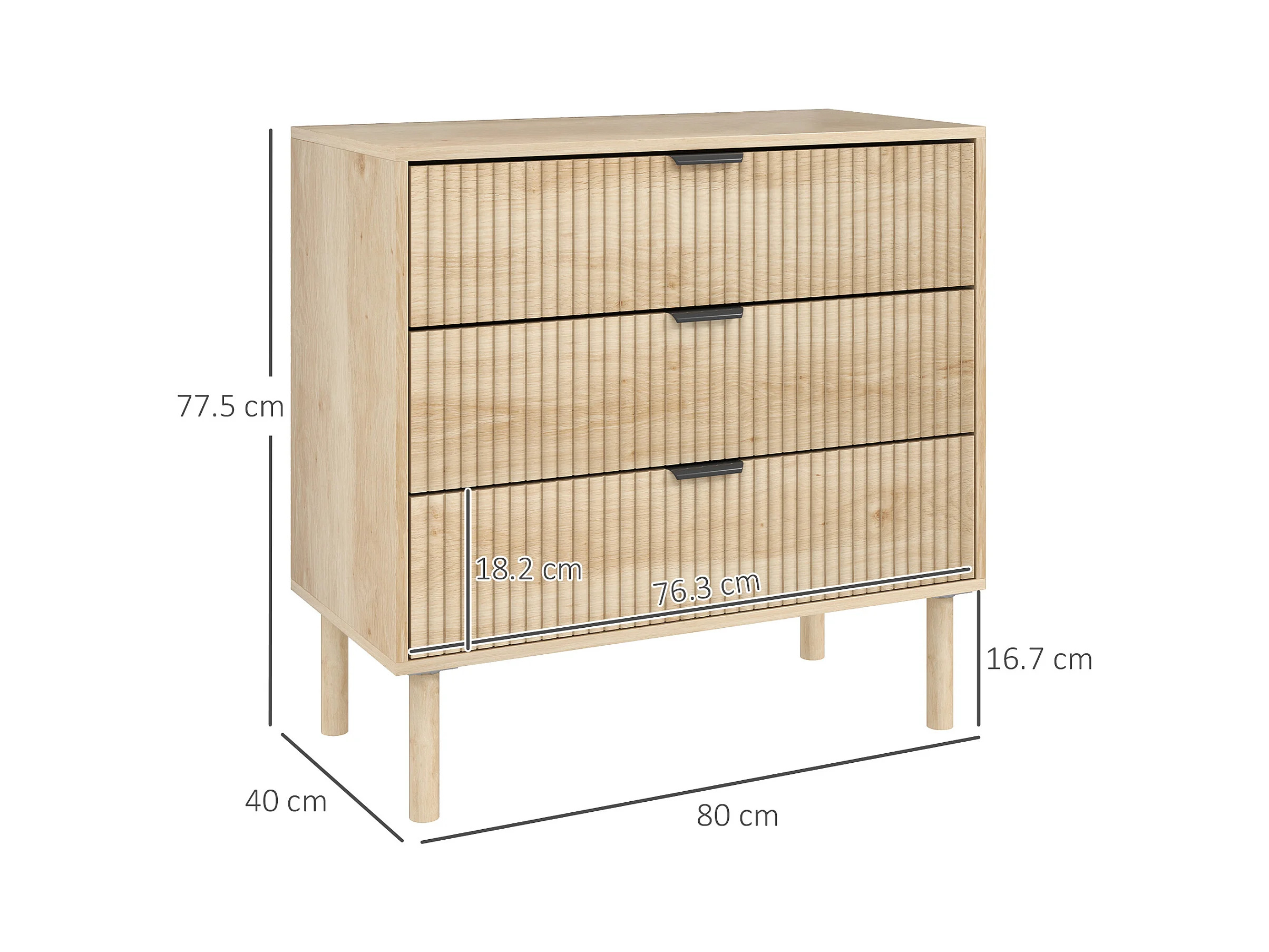 Cassettiera 3 cassetti per camera stile nordico in legno rovere