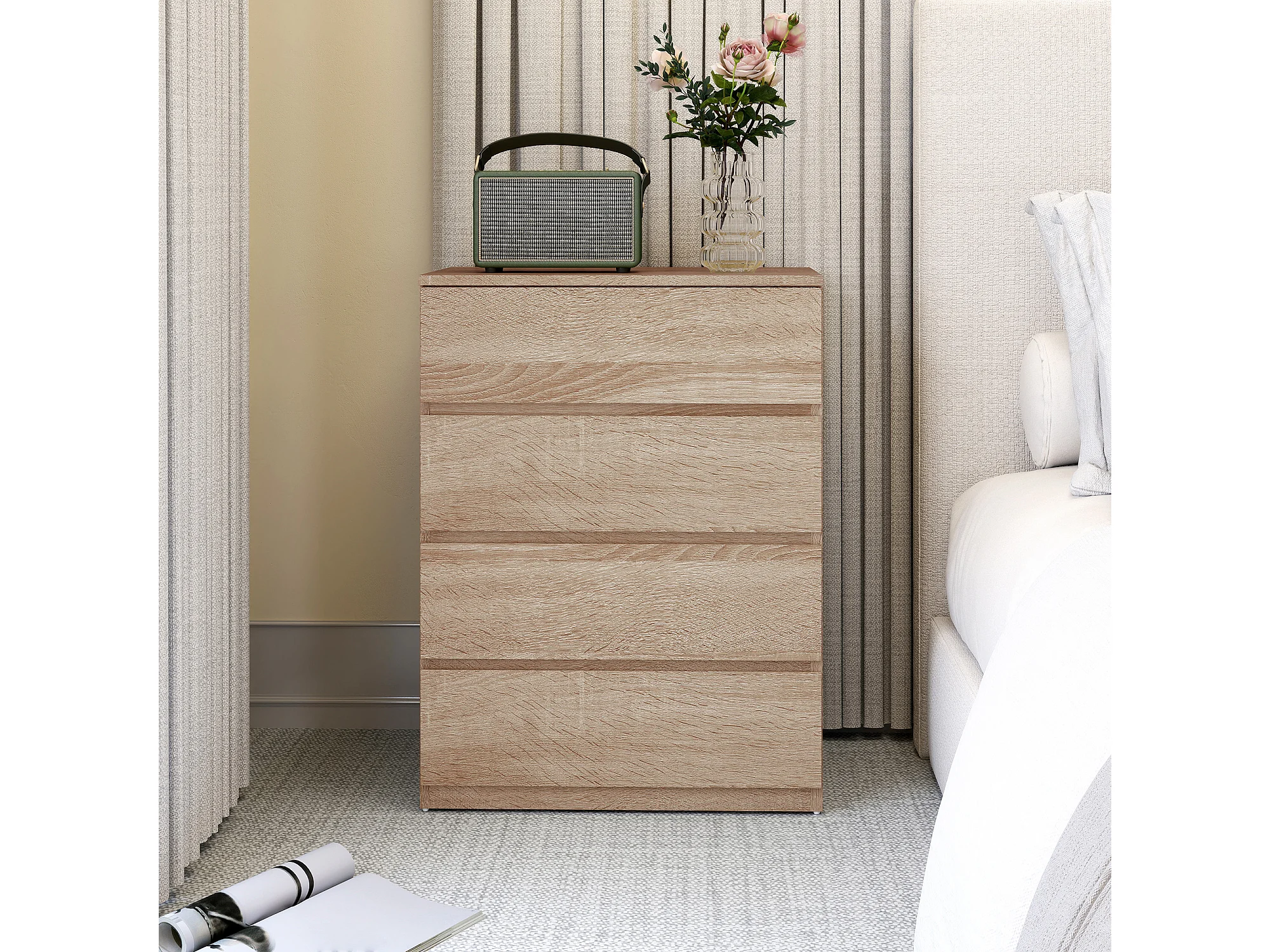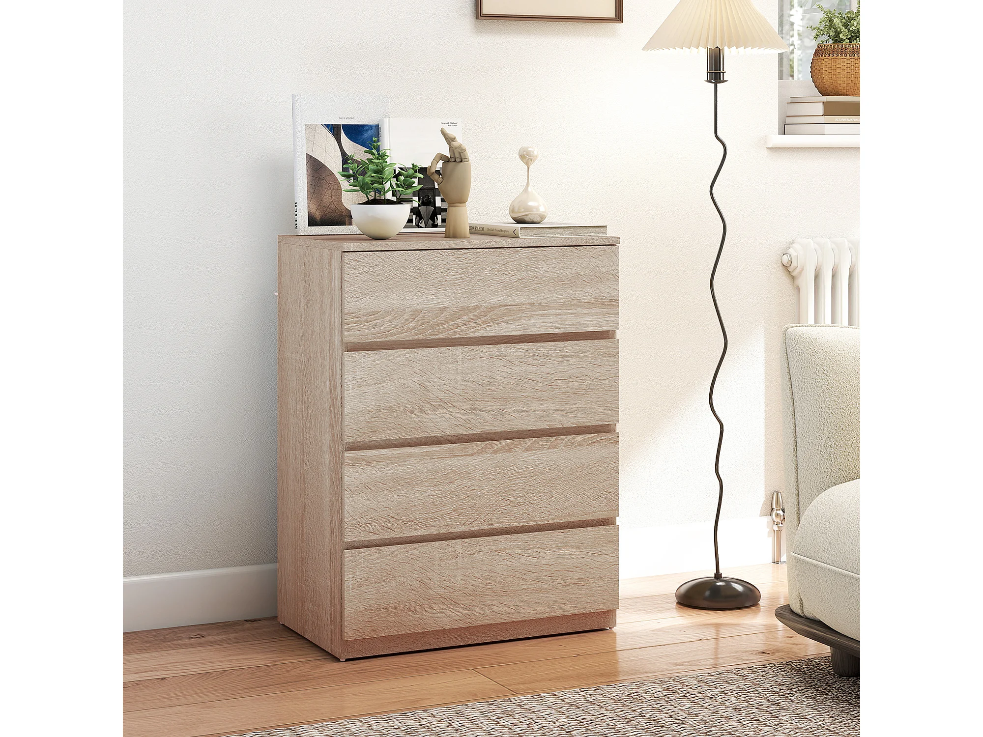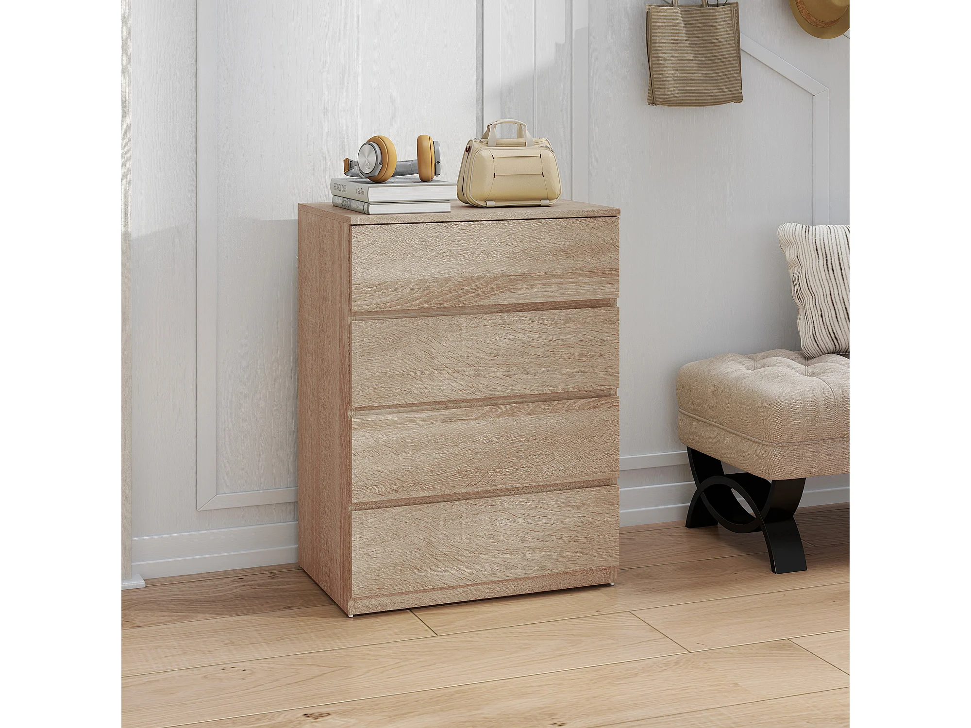 Cassettiera 4 cassetti in truciolato 60x40x80 cm color faggio