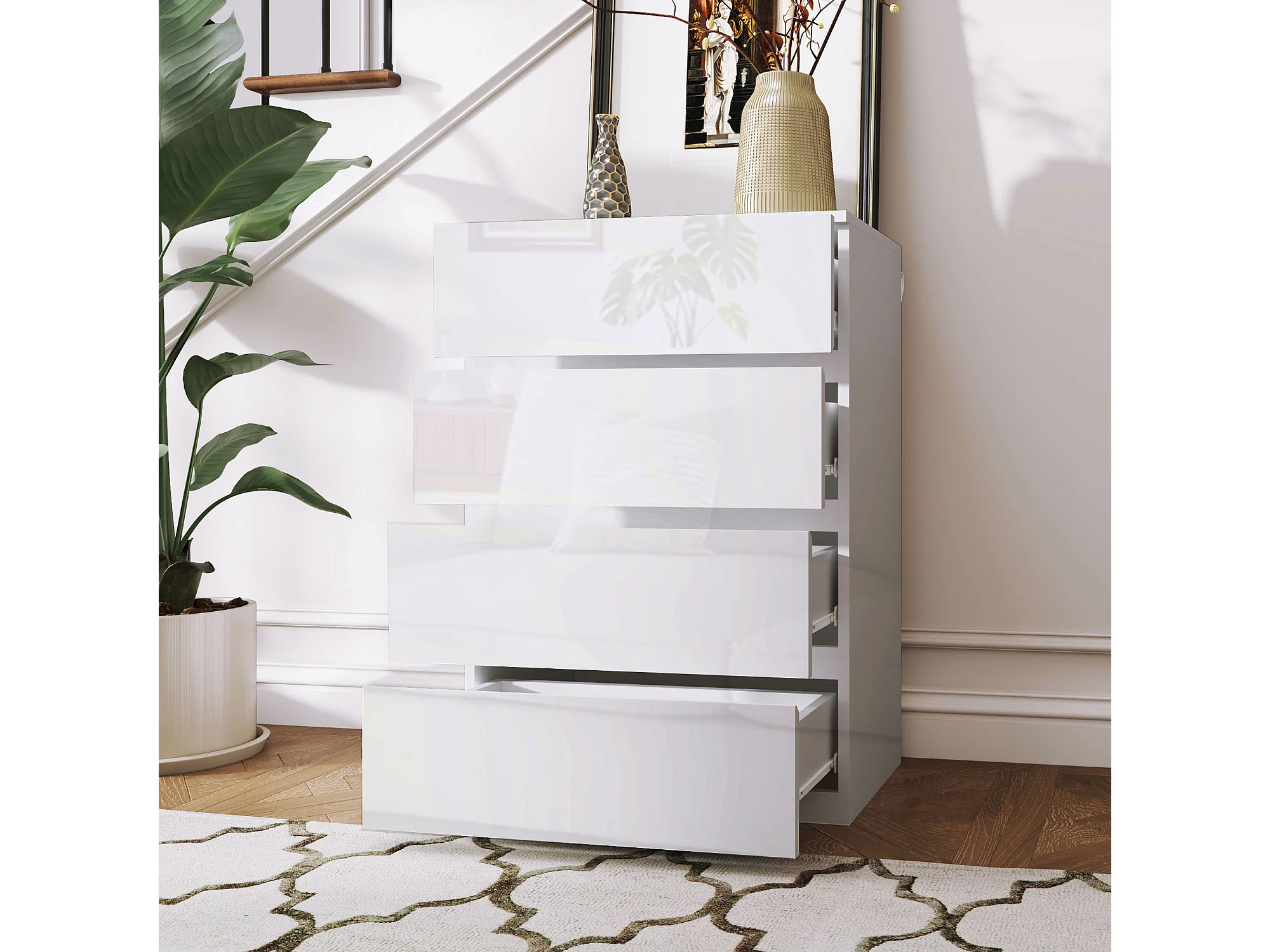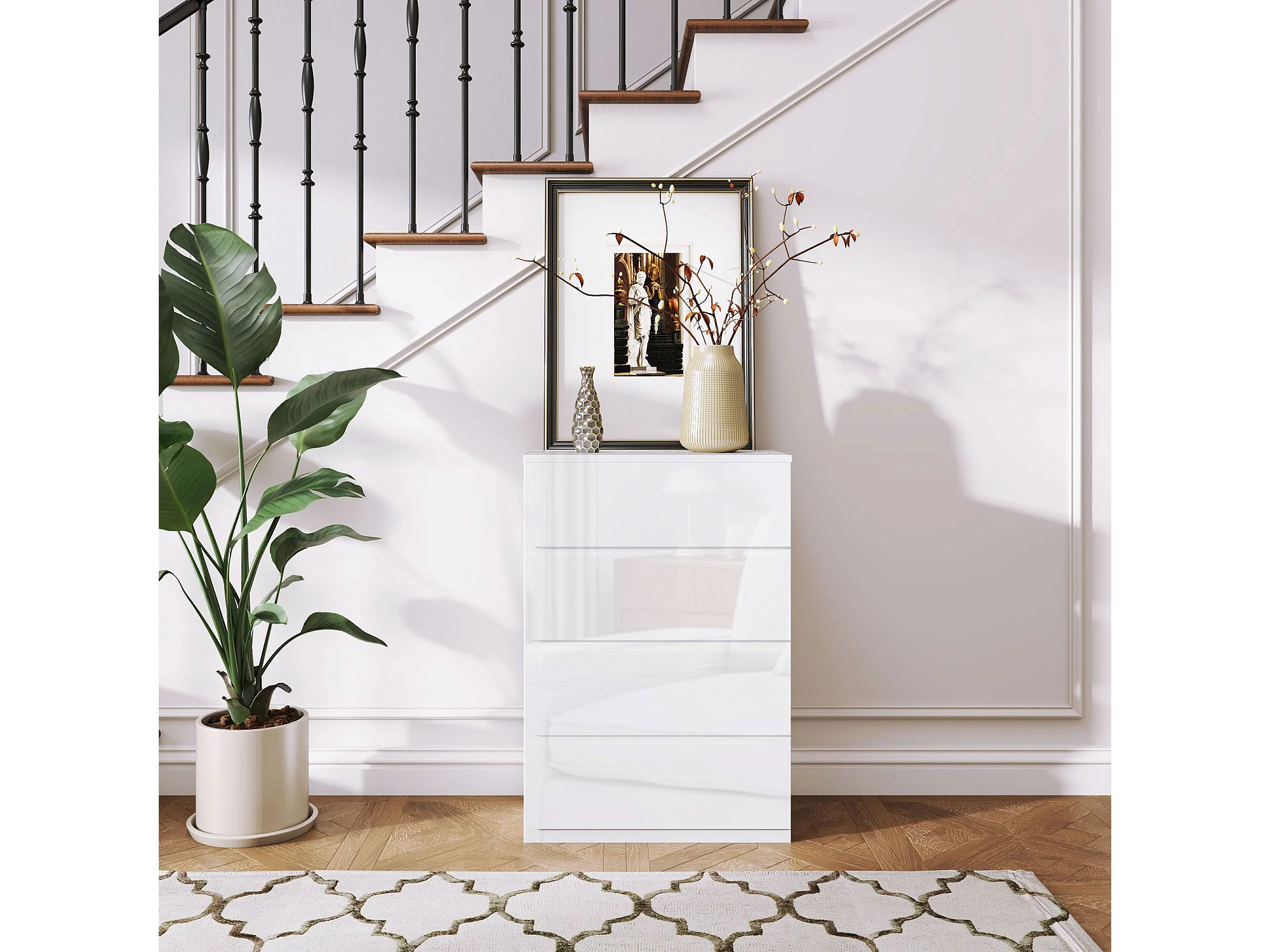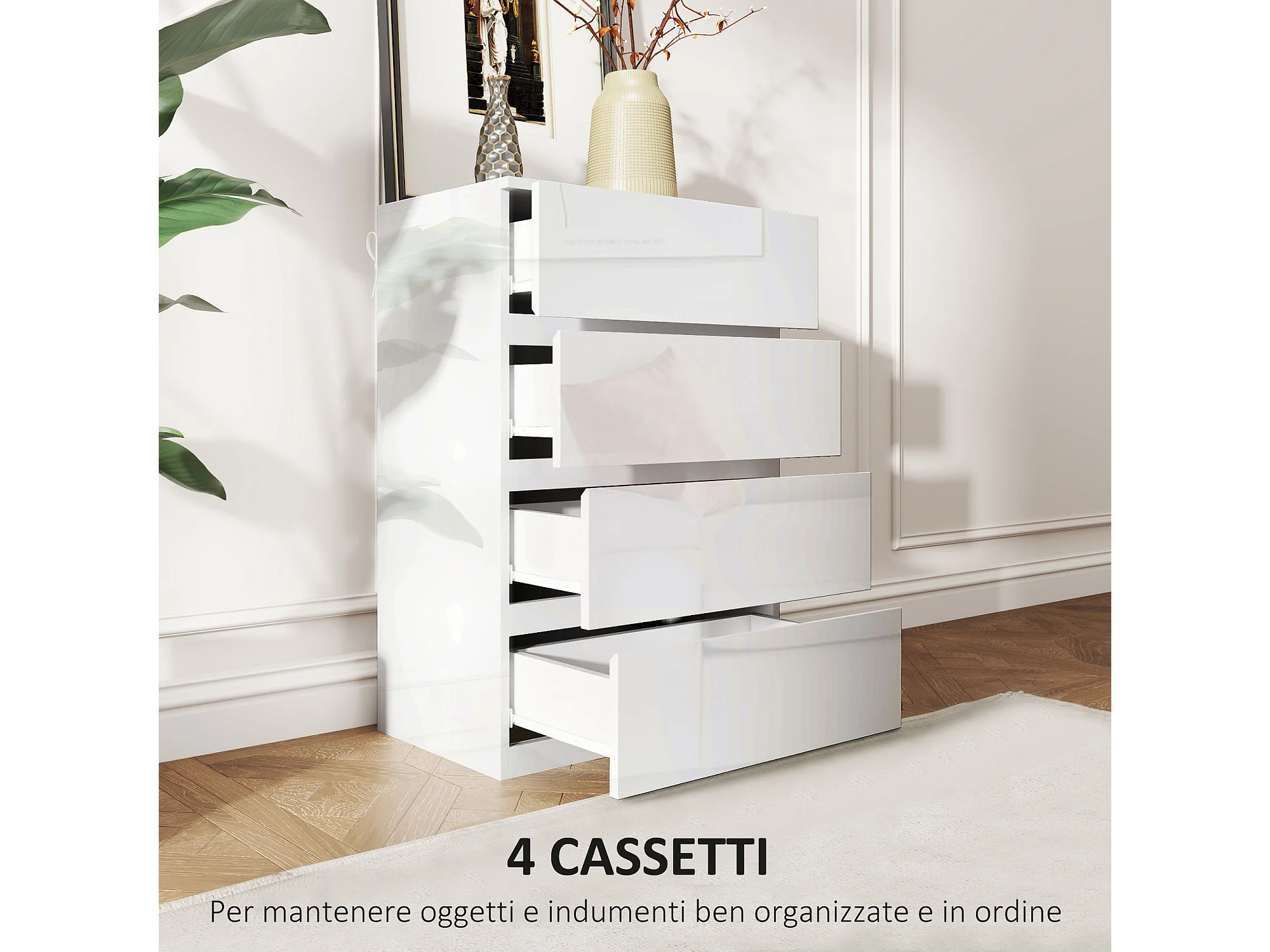 Cassettiera 4 cassetti in truciolato moderna 55x33x80 cm bianco lucido