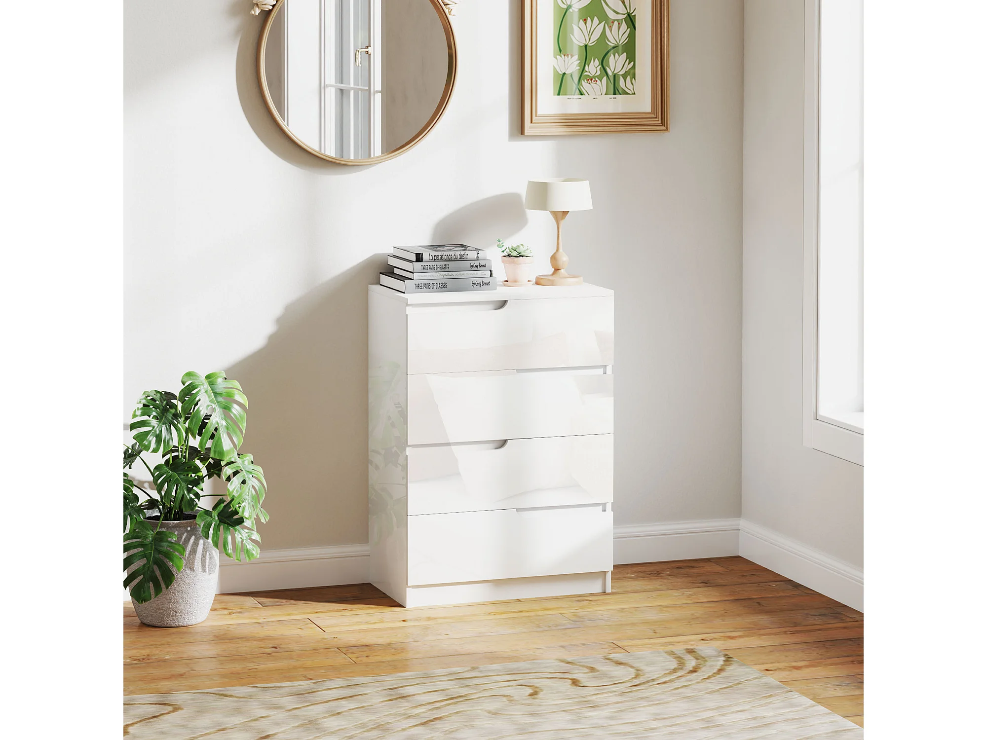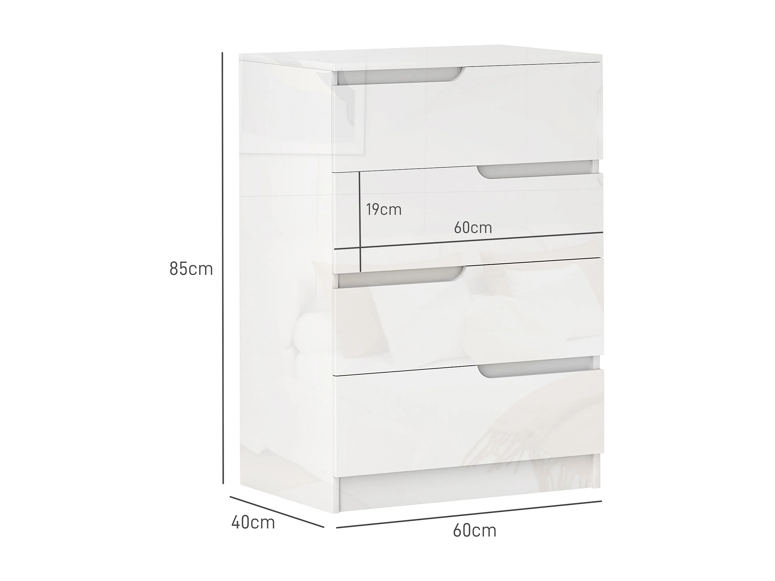 Cassettiera 4 cassetti in truciolato moderna 55x33x80 cm bianco lucido