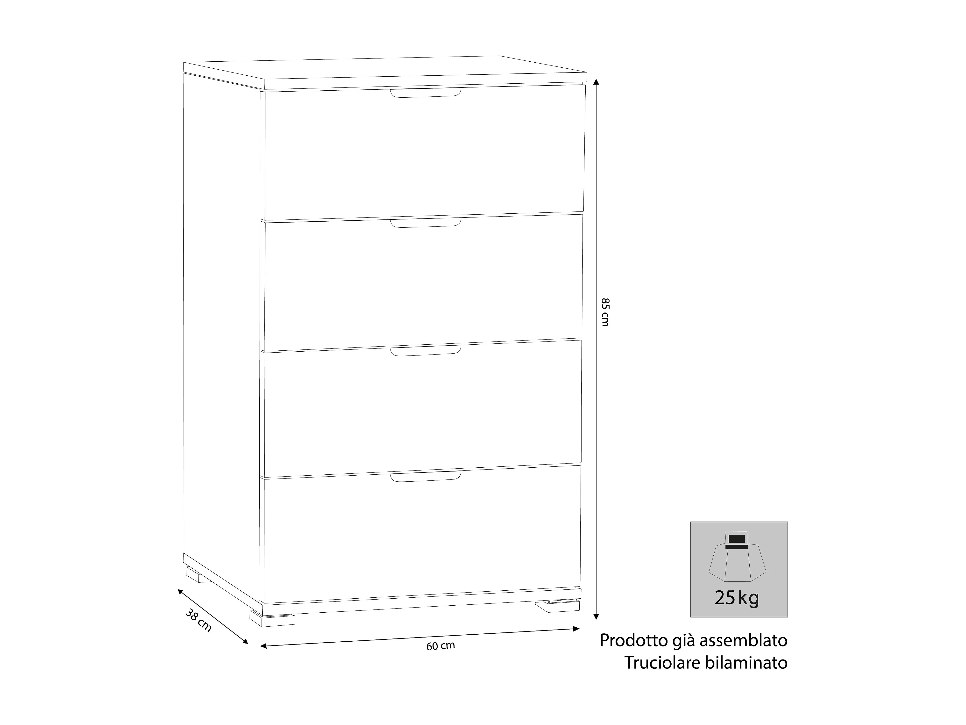 MilaniHome.it - cassettiera 4 cassetti per soggiorno cucina bagno fatto in Italia cm 60x38x85 hdi coloreMarrone