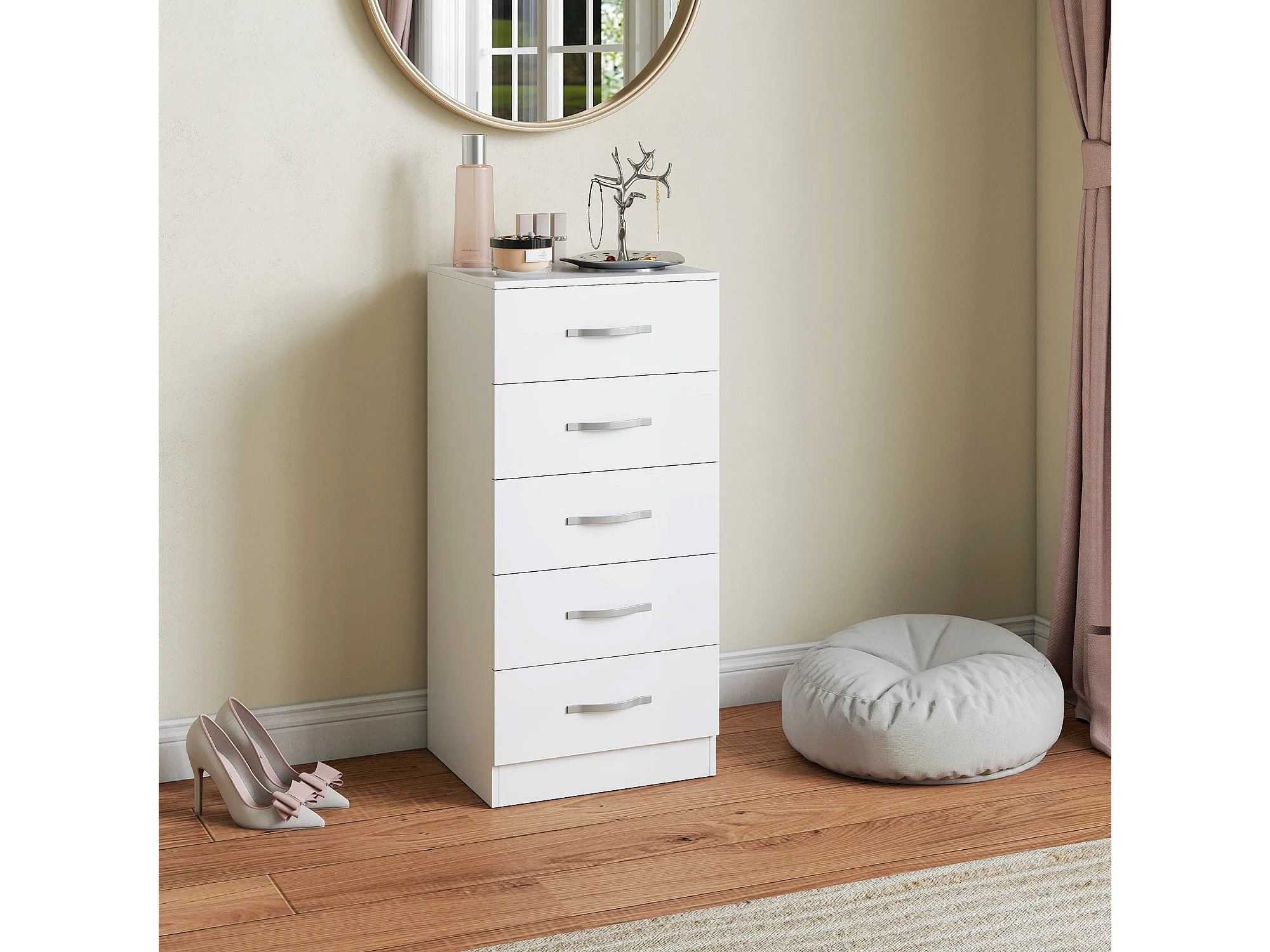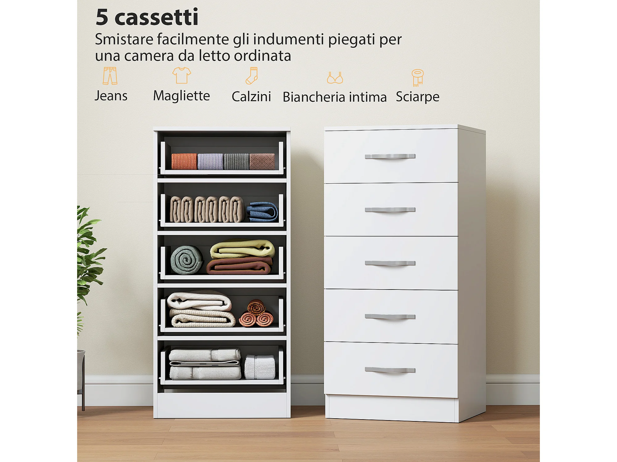 Cassettiera 5 cassetti moderna in truciolato 40x35x85 cm bianco