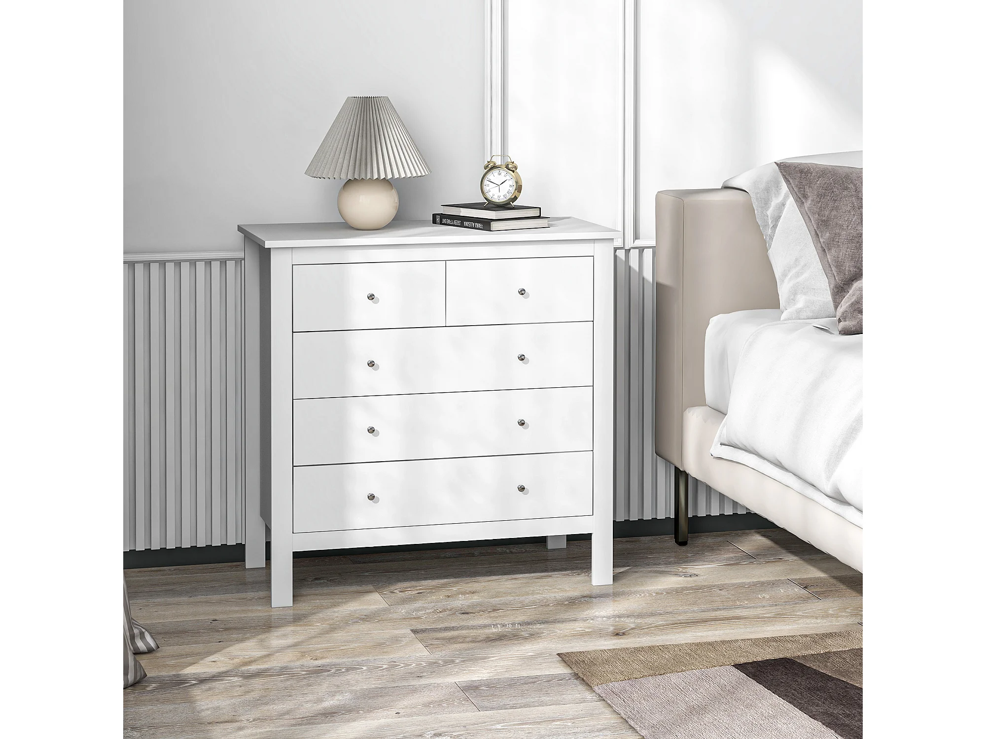 Cassettiera 5 cassetti per camera da letto in legno bianco