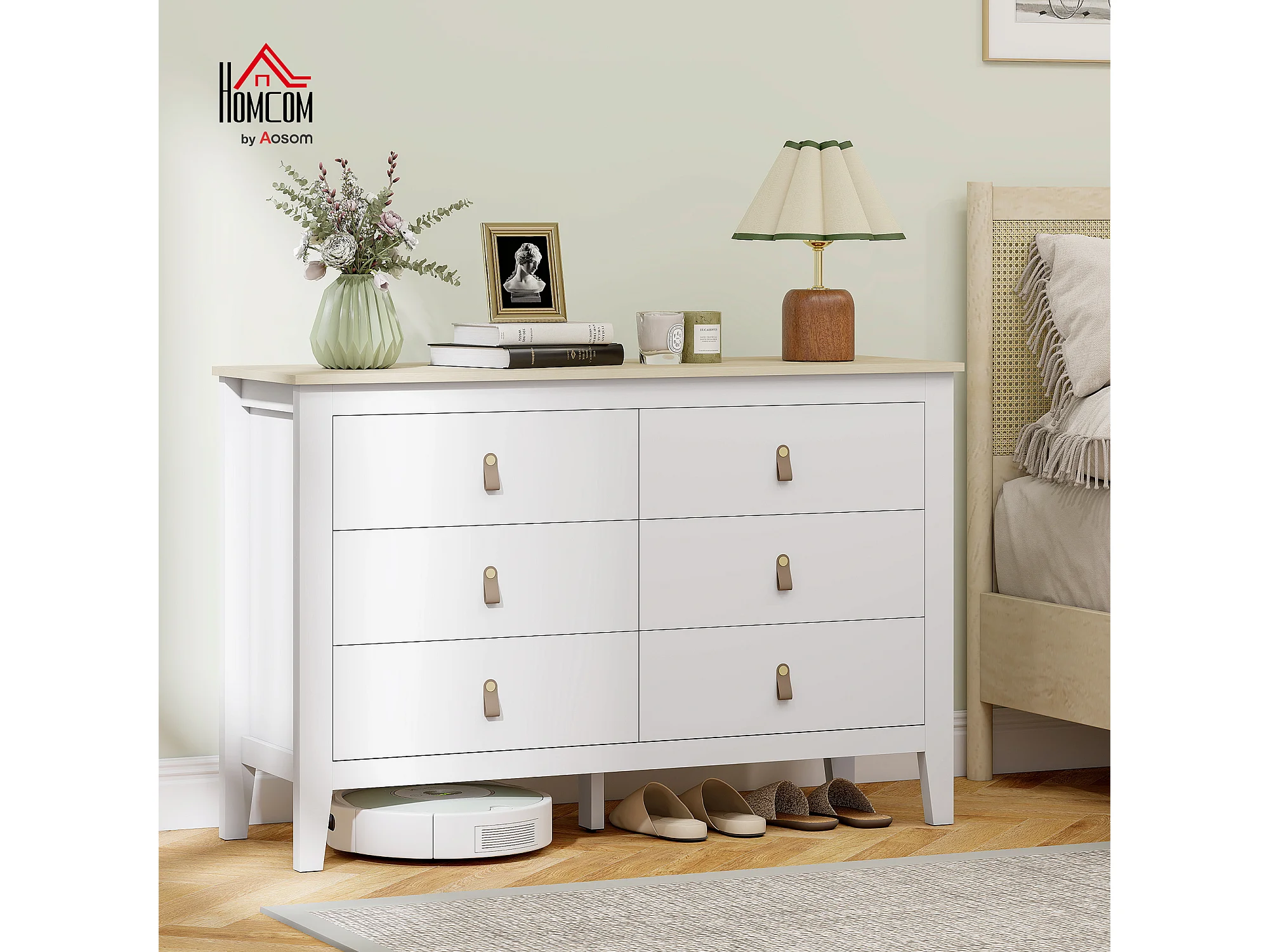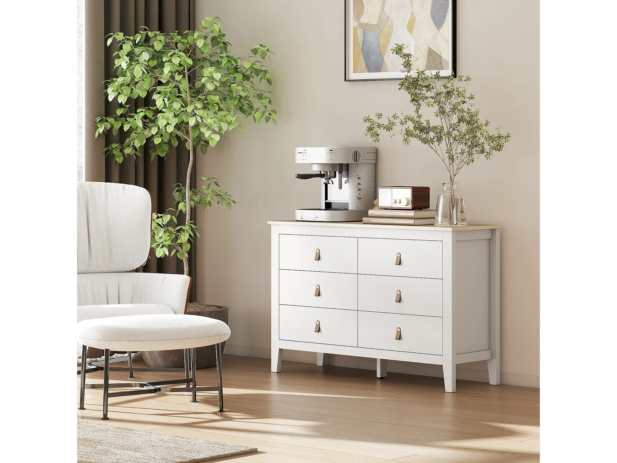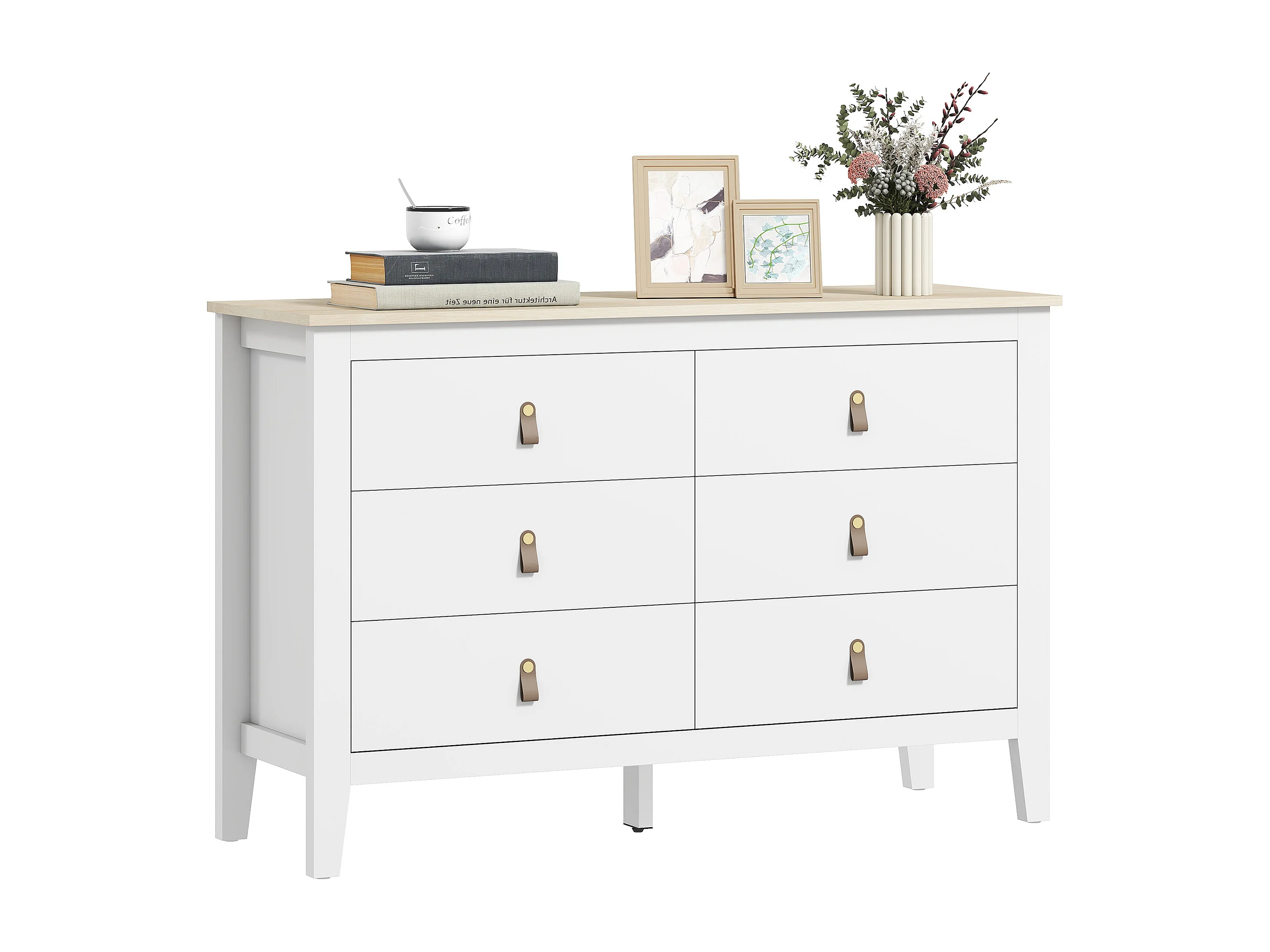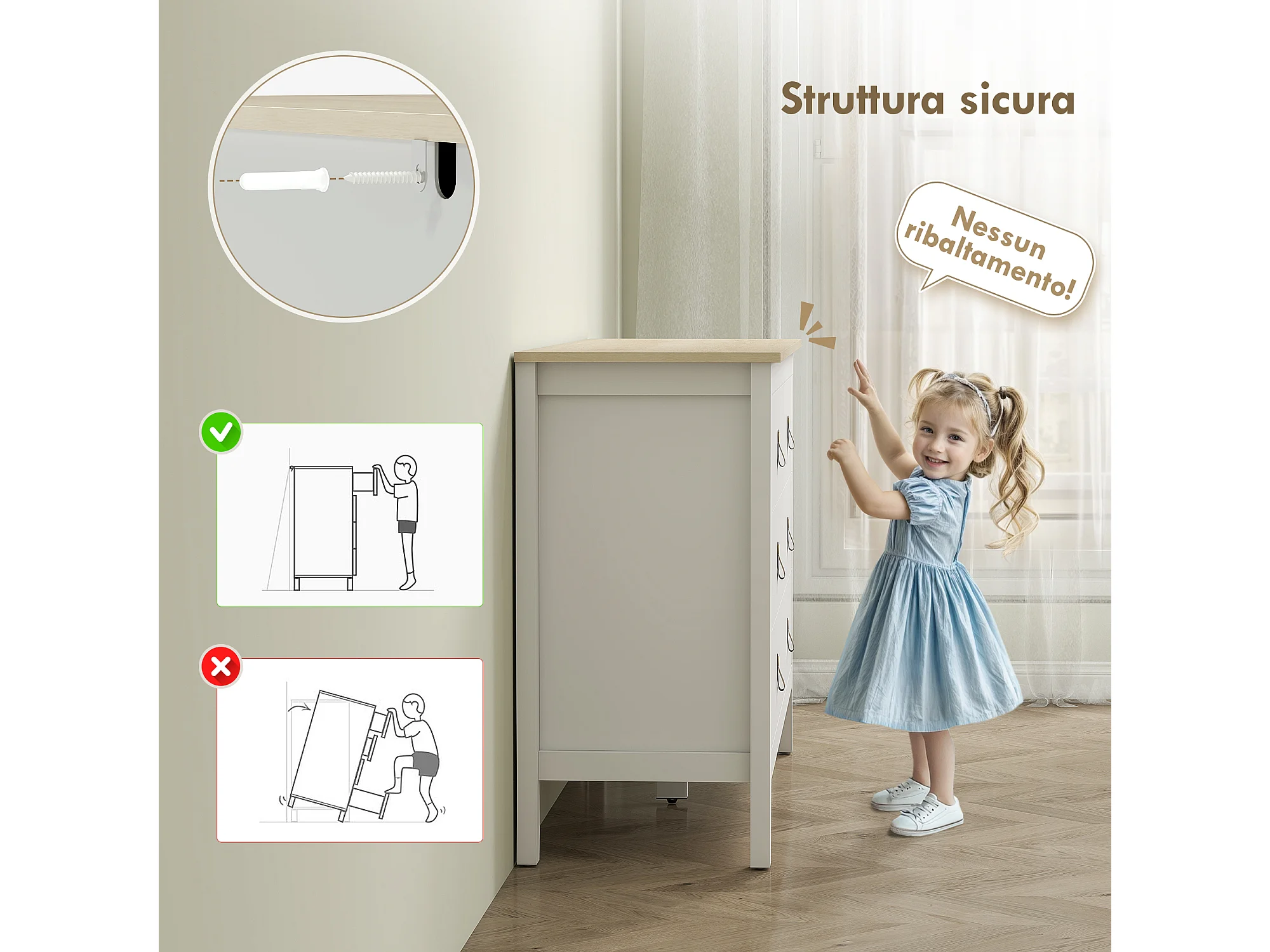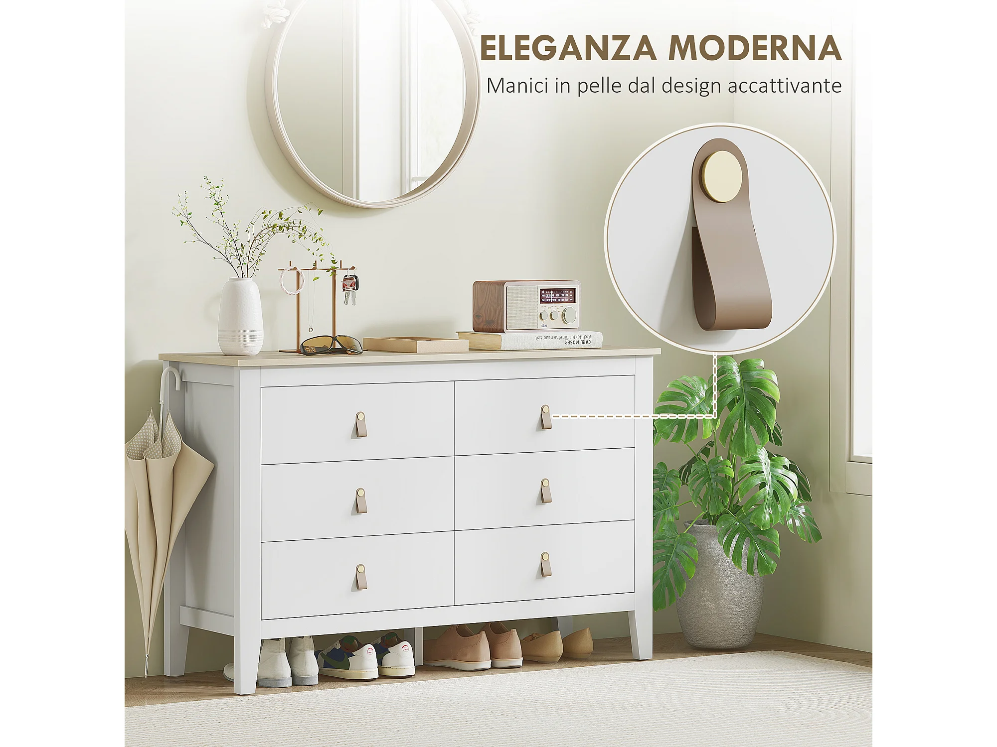 Cassettiera 6 cassetti con maniglie in finta pelle bianco
