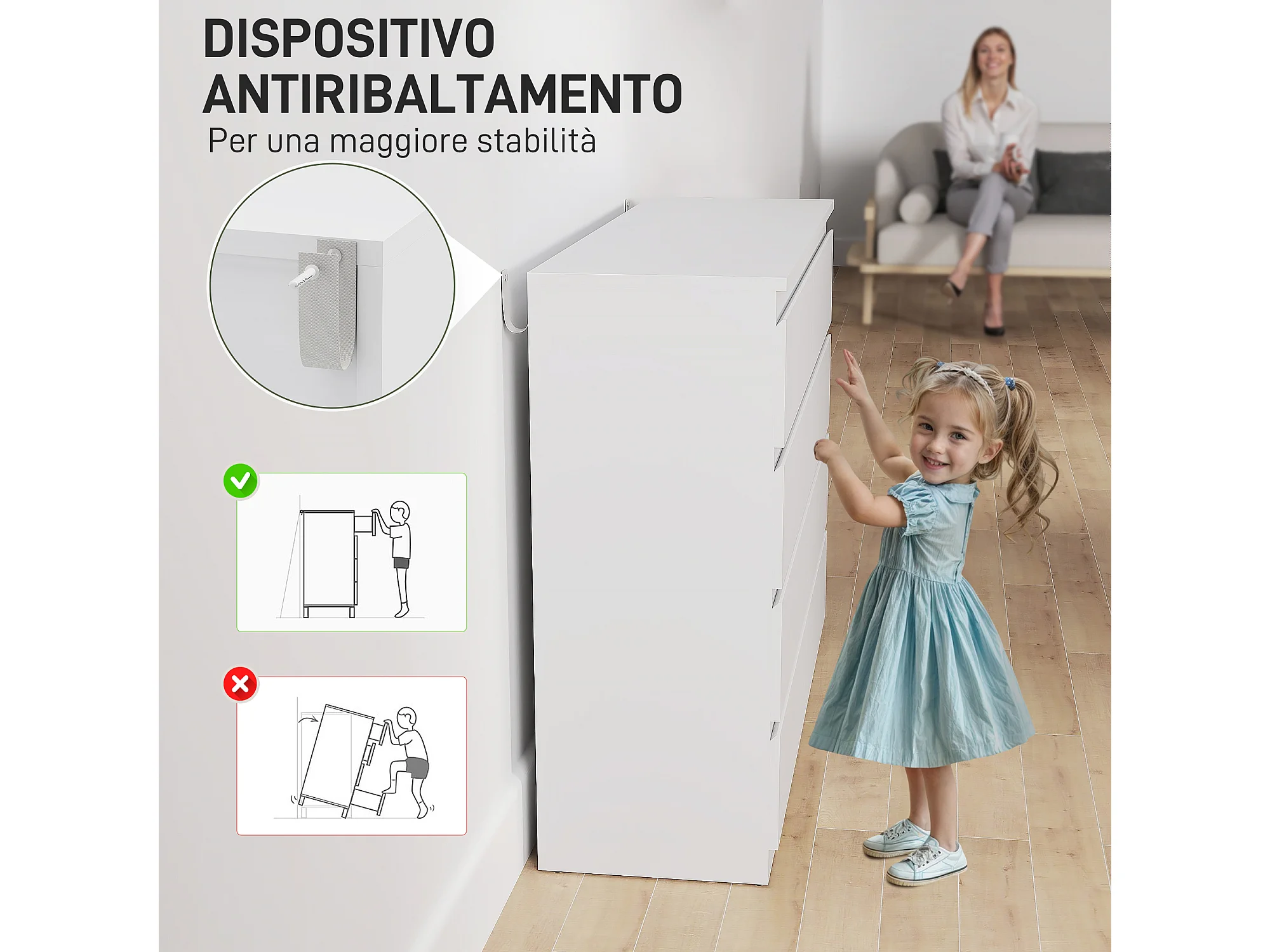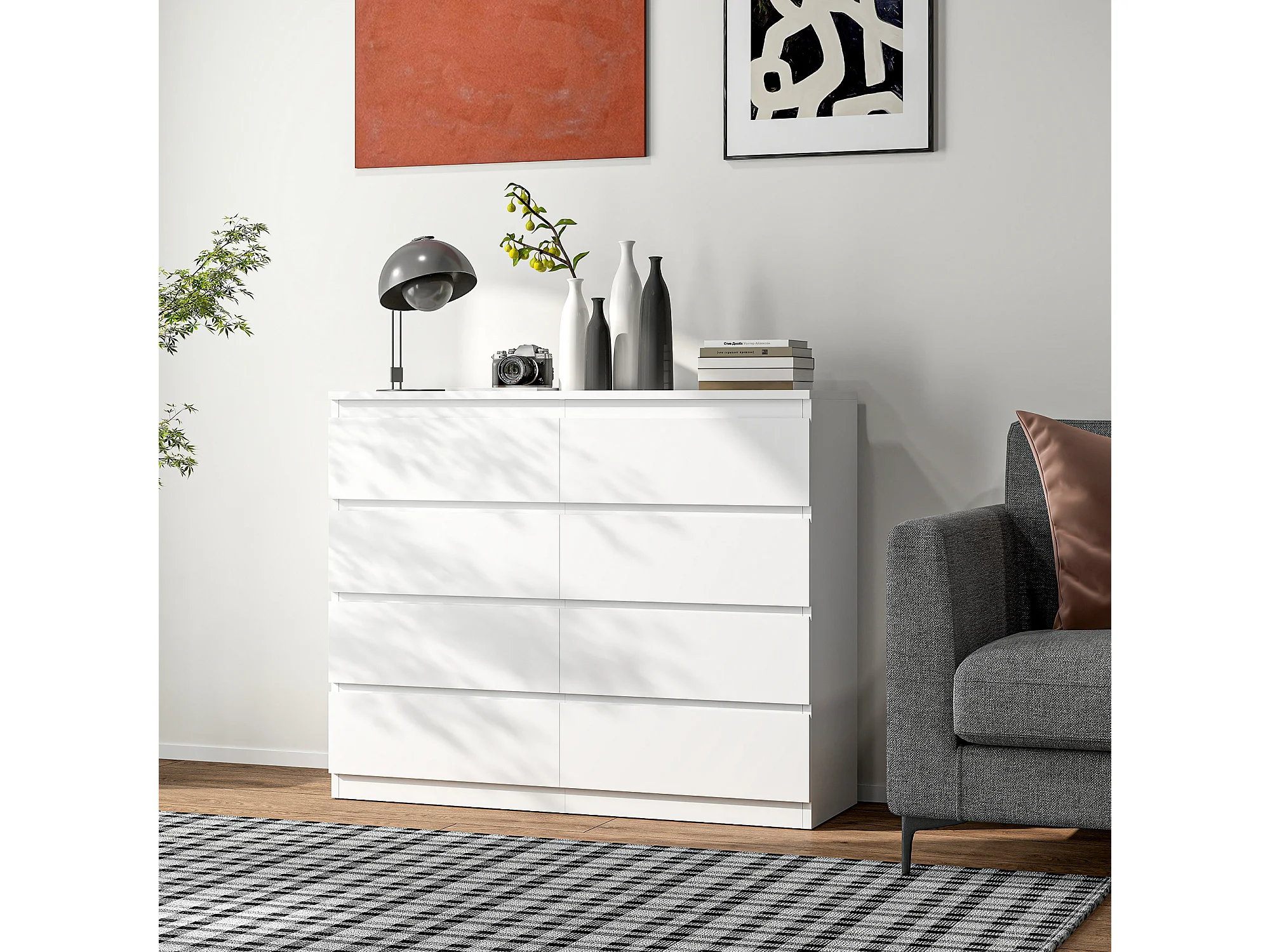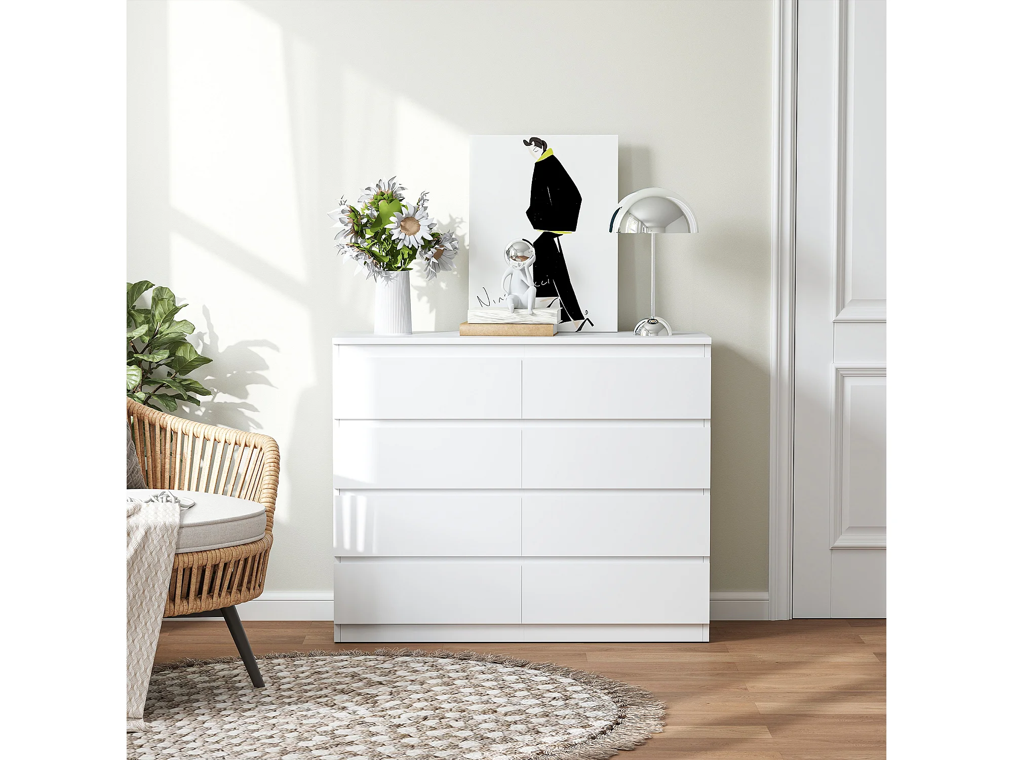 Cassettiera 8 cassetti per camera da letto senza maniglie bianco