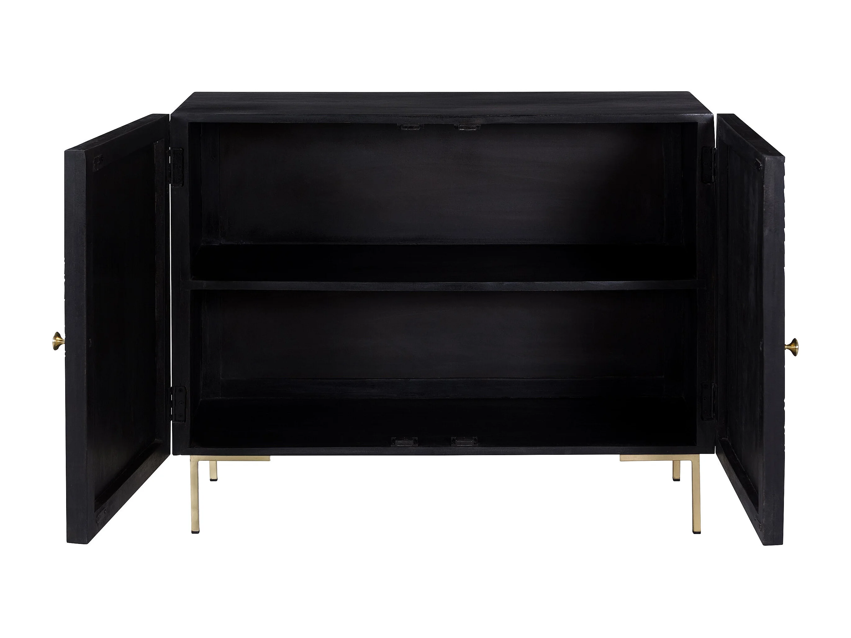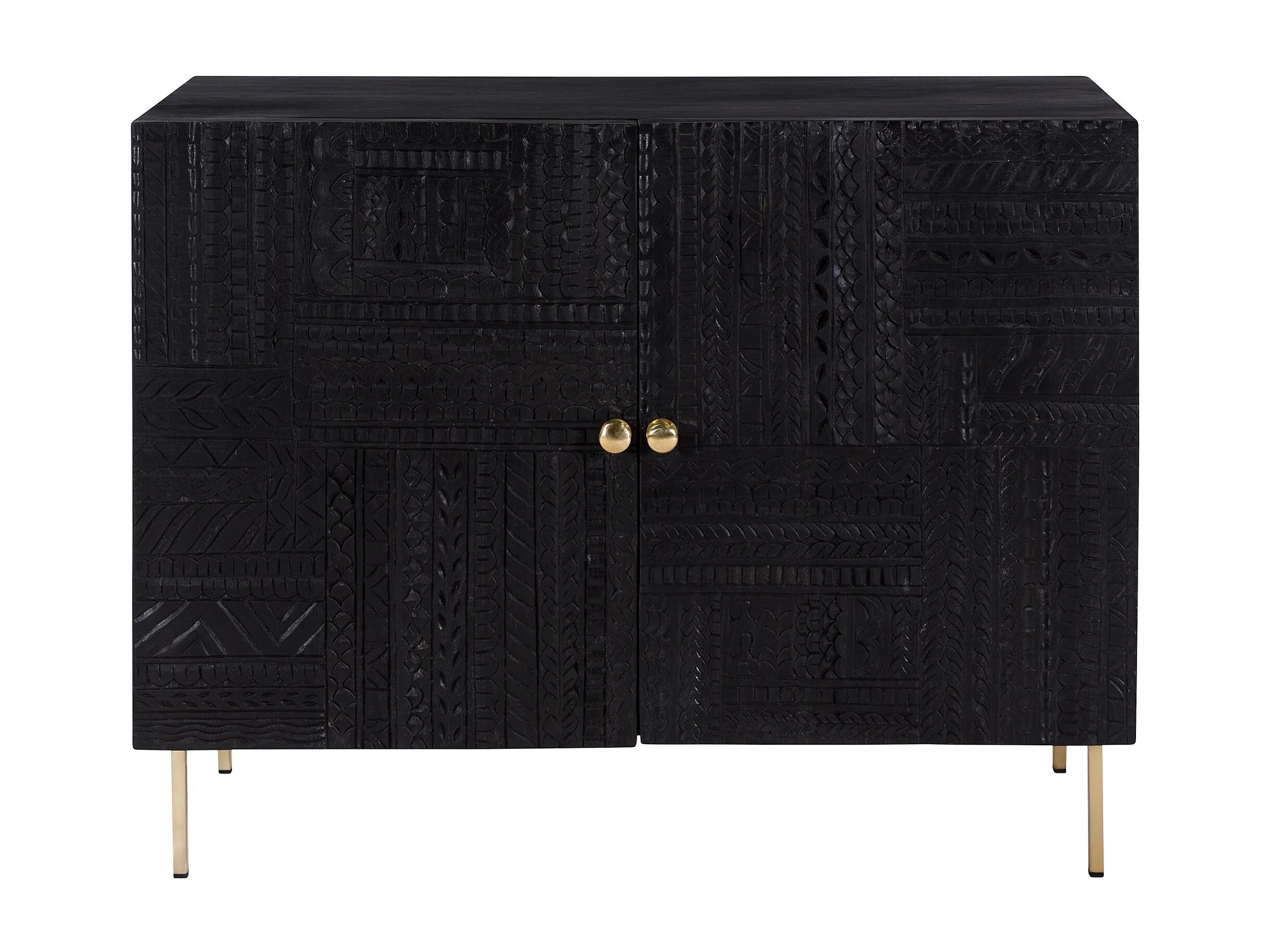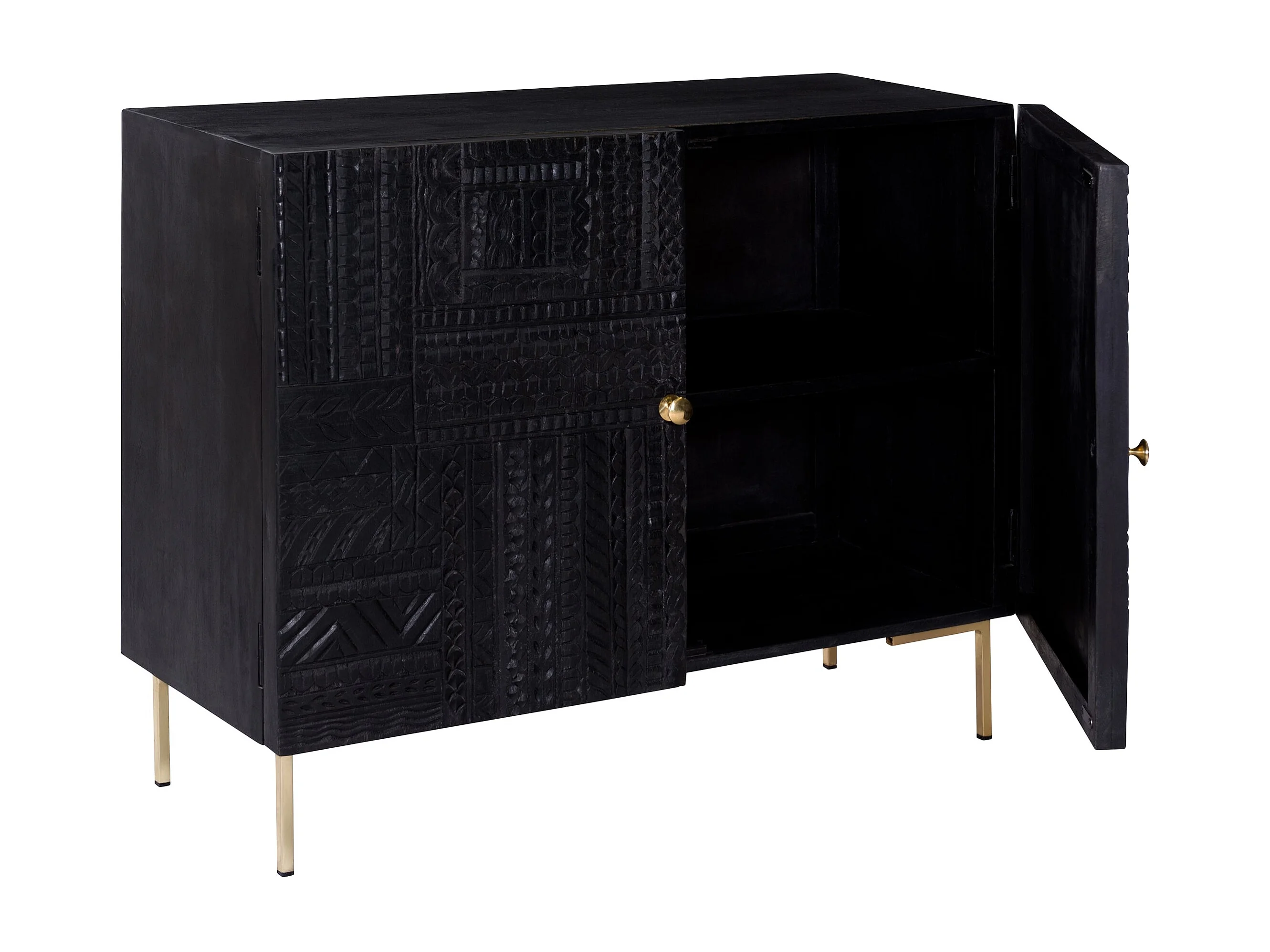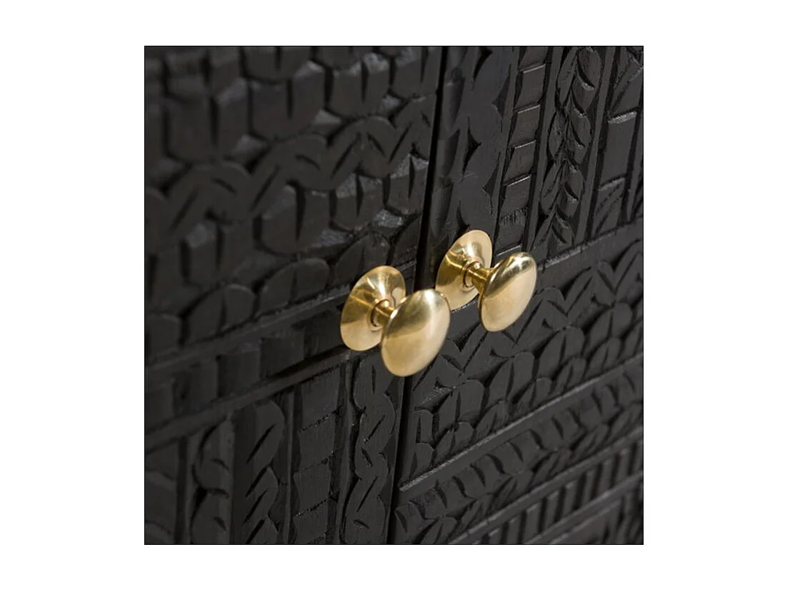 Cassettiera a 2 ante in legno nero inciso e metallo dorato - Chimane