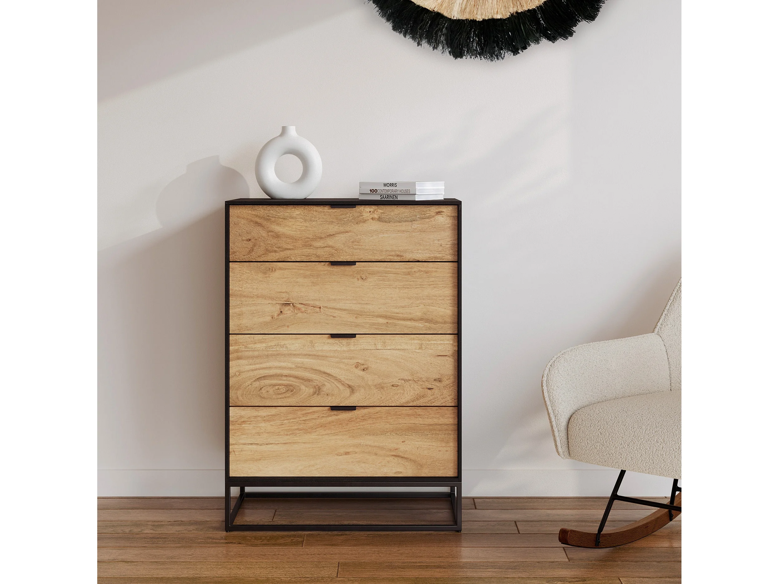 Cassettiera a 4 cassetti in legno d'acacia con gambe in metallo - Jakson