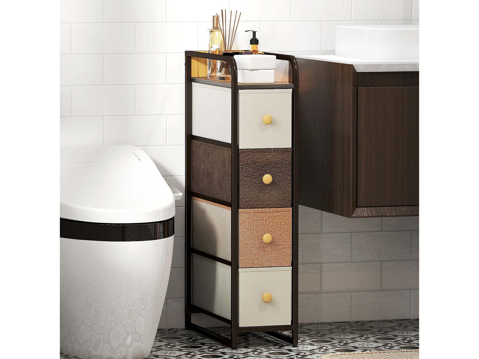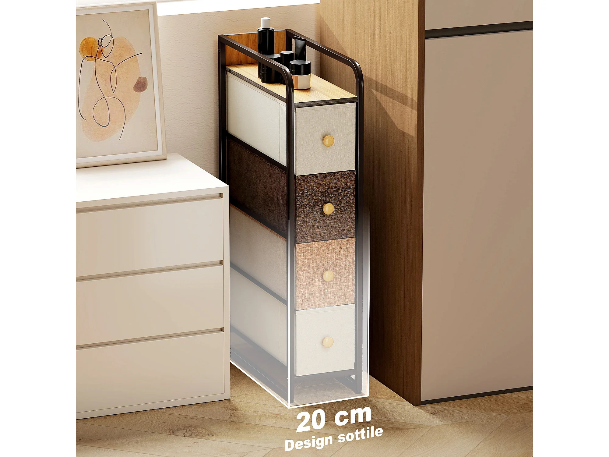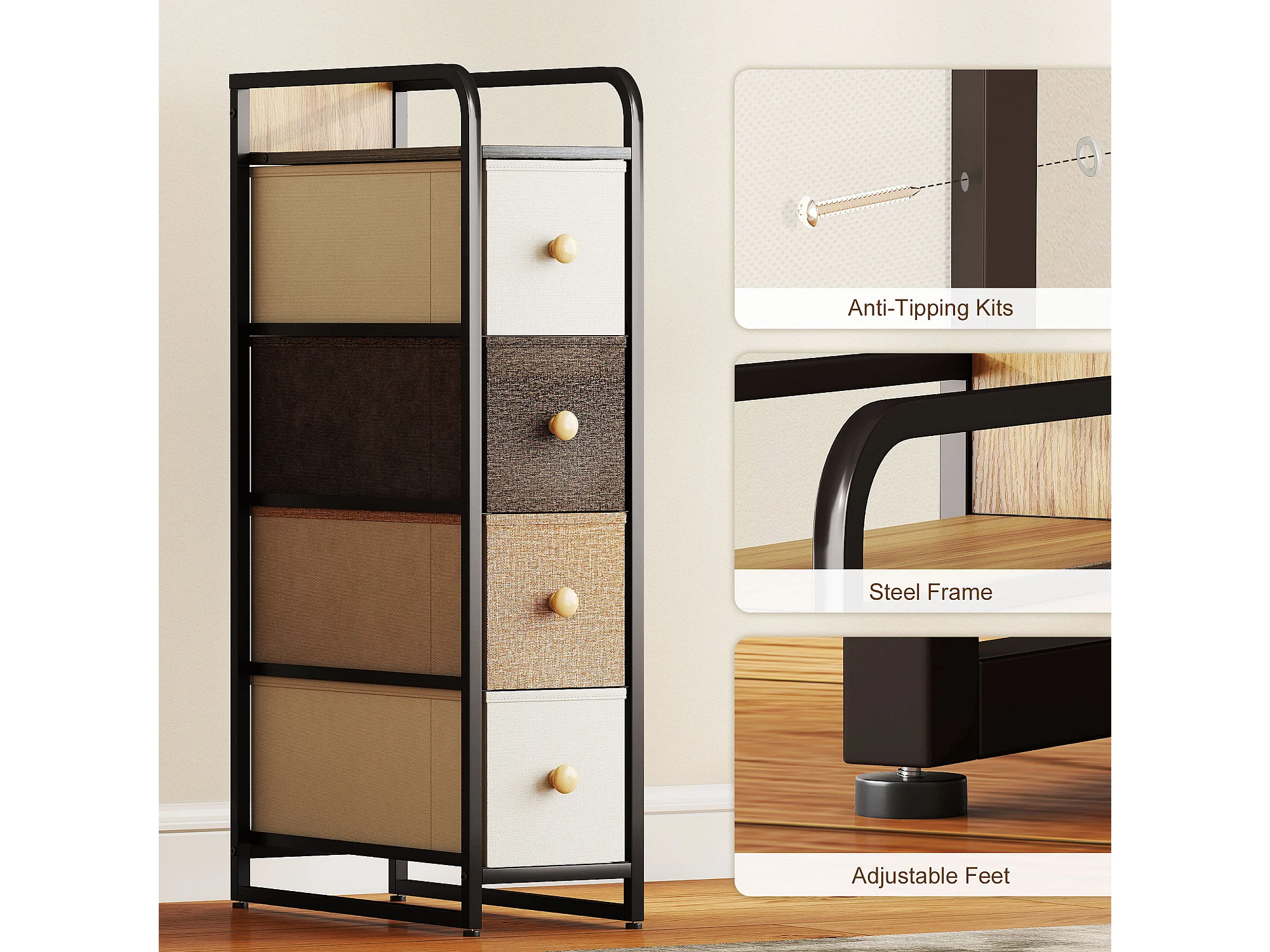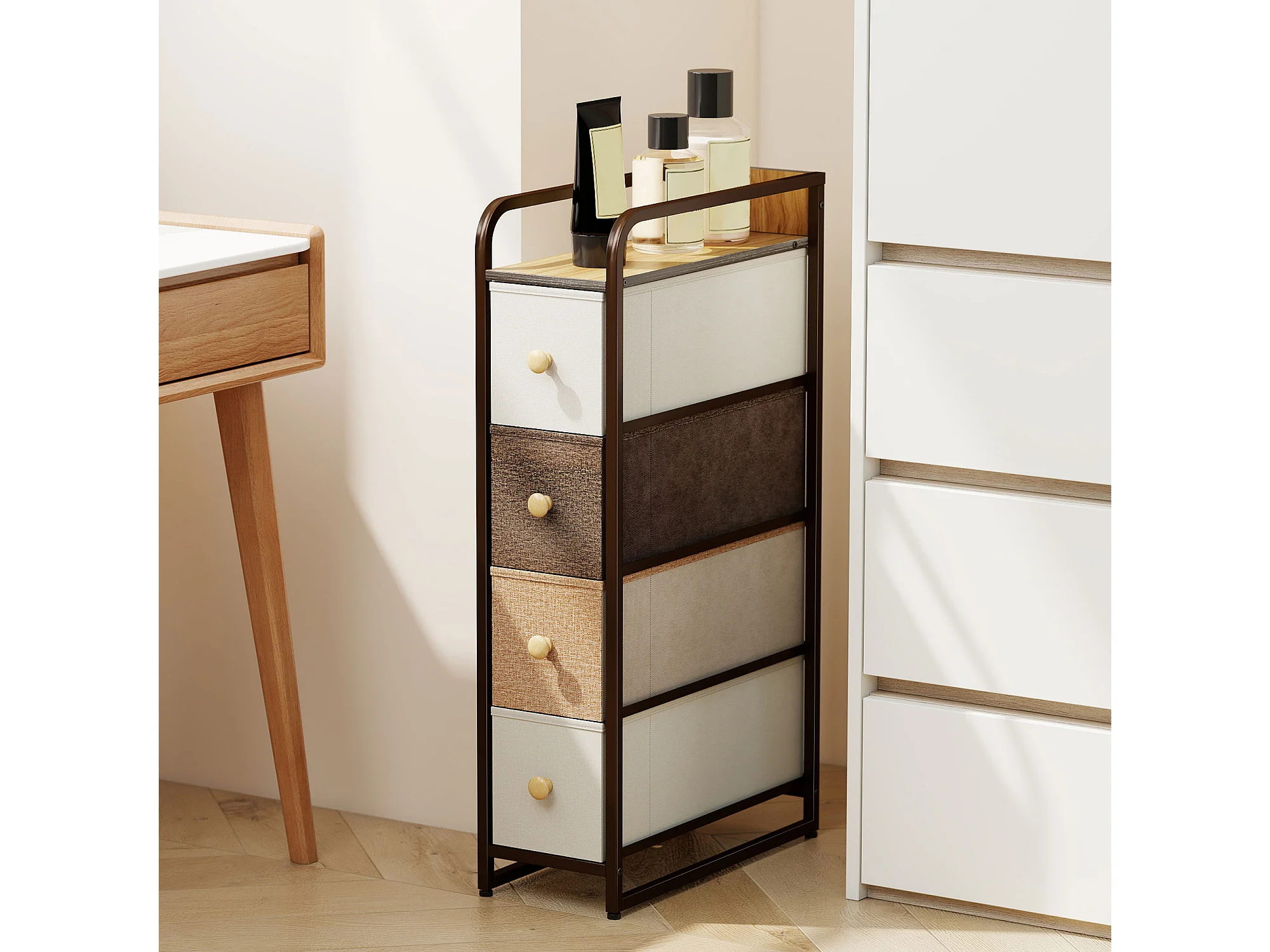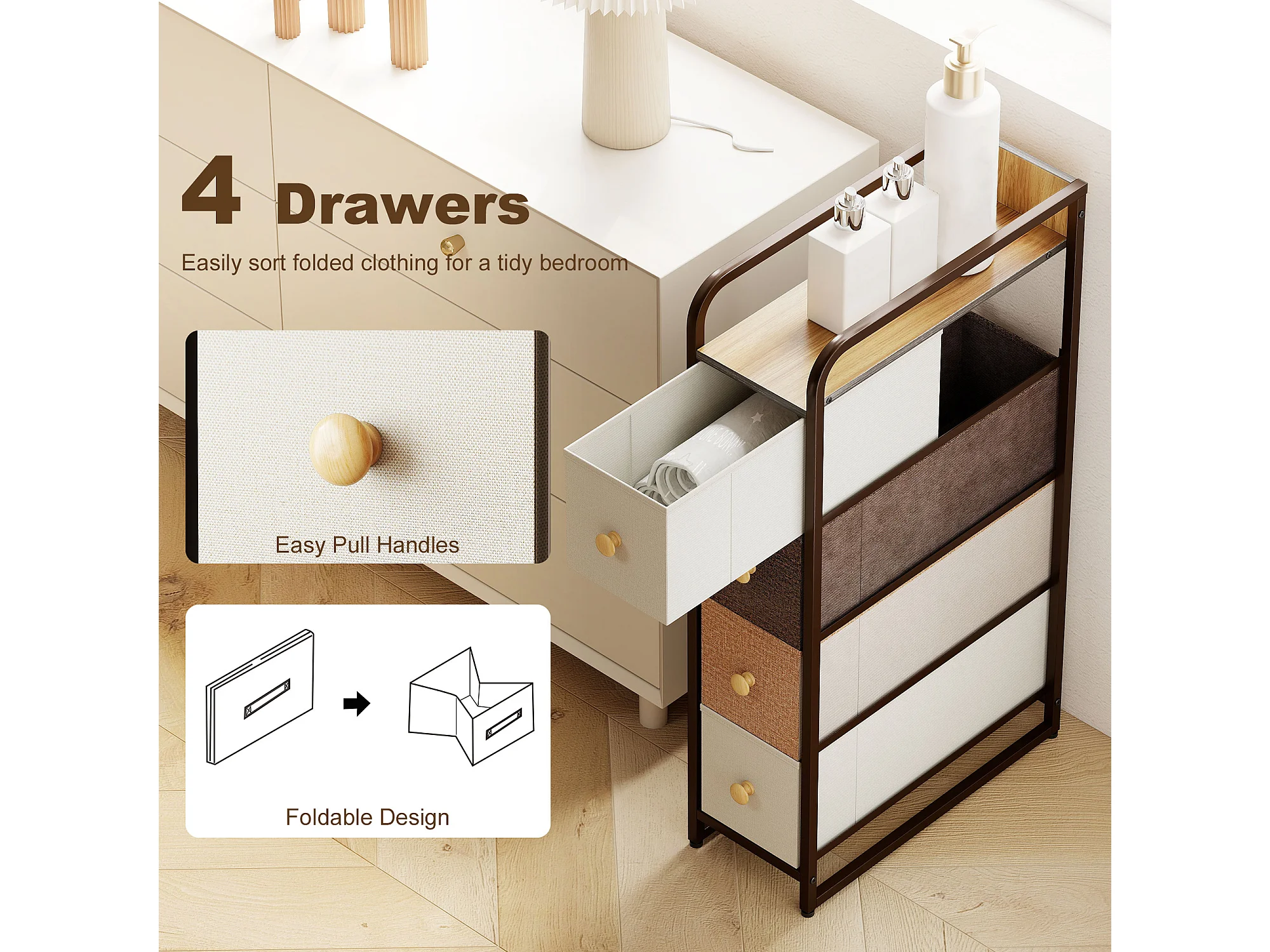 Cassettiera a 4 cassetti pieghevoli in tessuto acciaio e legno