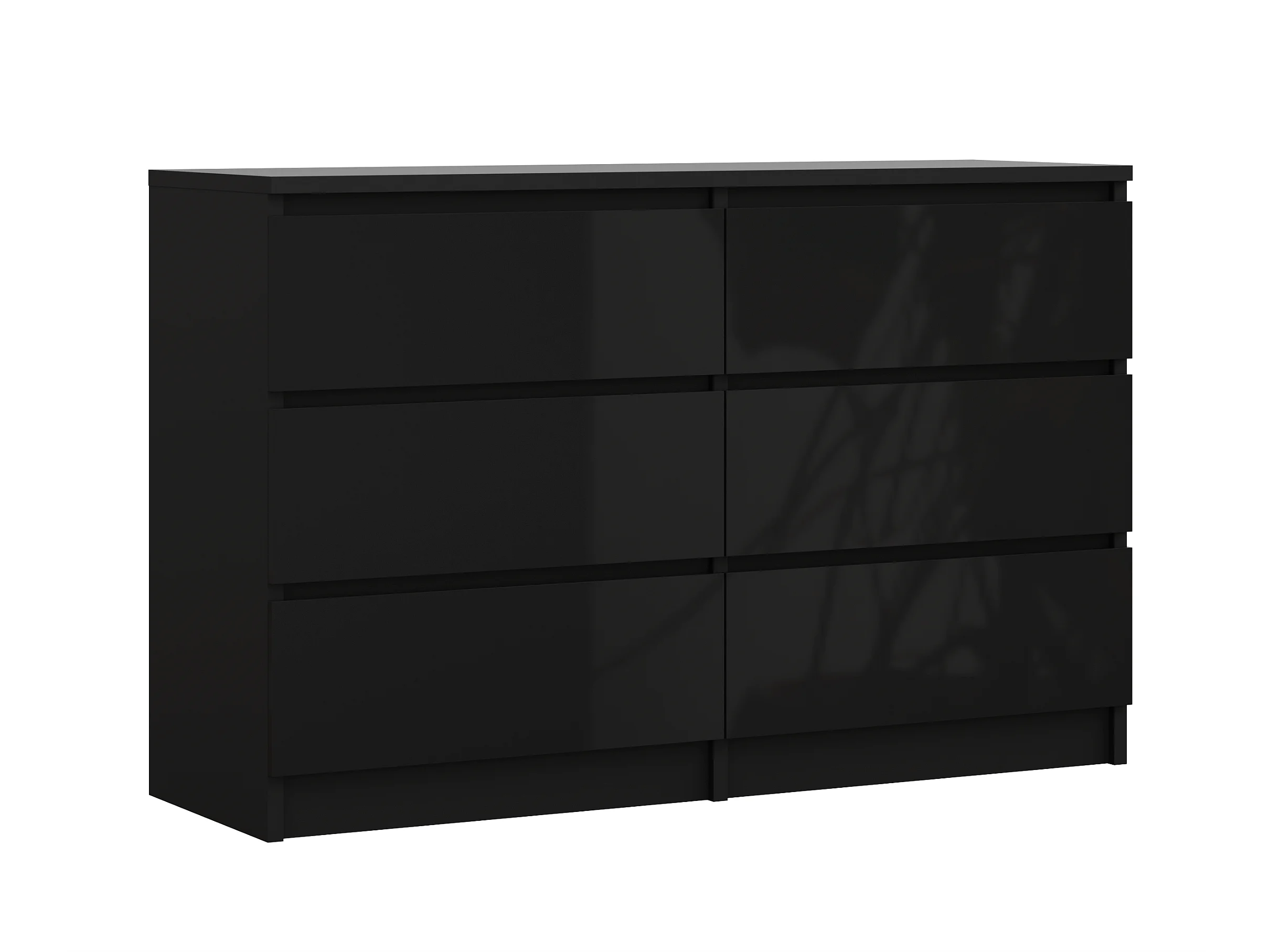Cassettiera a 6 cassetti: nero opaco/nero lucido, 120 x 39 x 79 cm