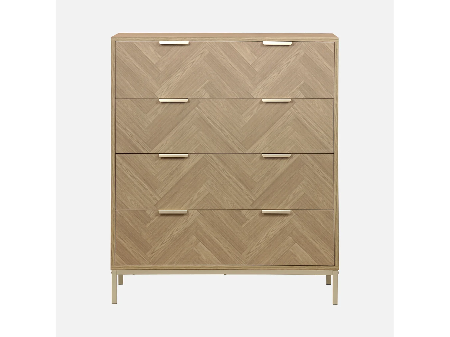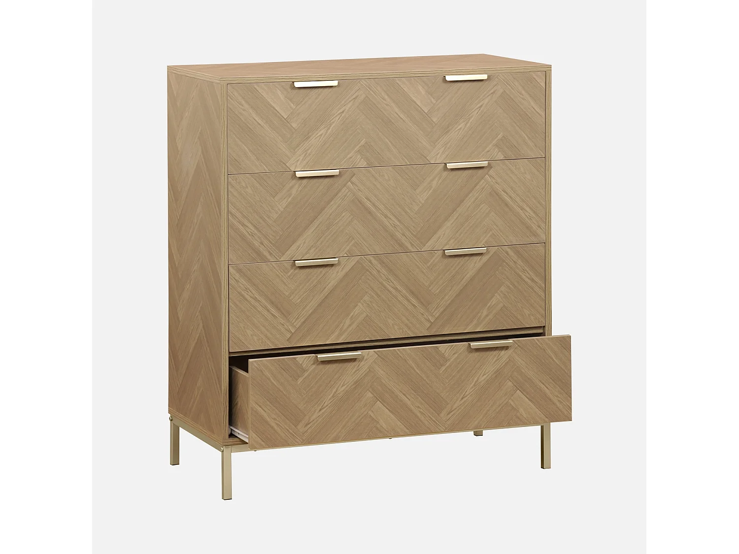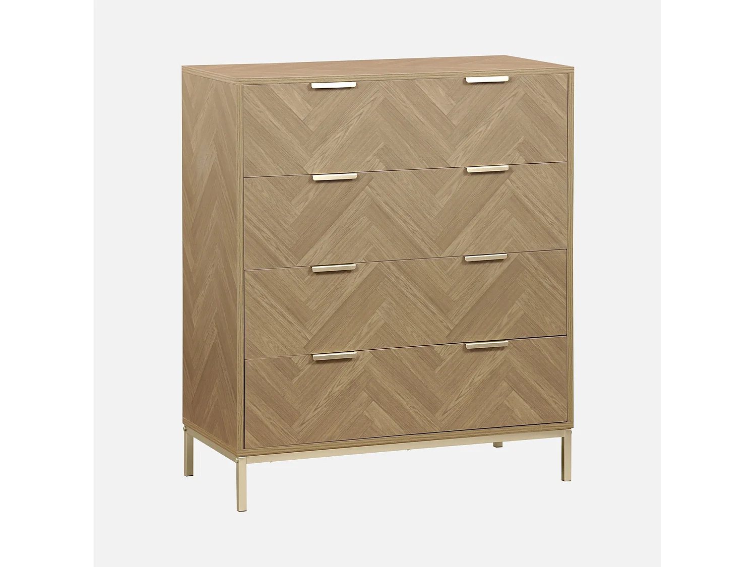 Cassettiera a spina di pesce, 4 cassetti, marrone naturale