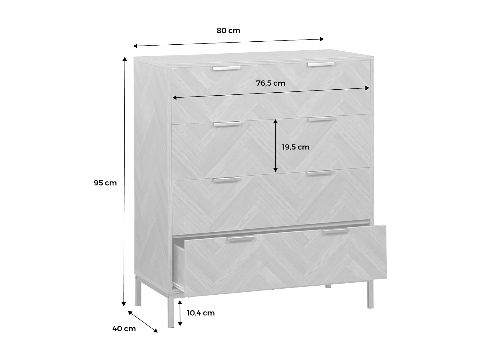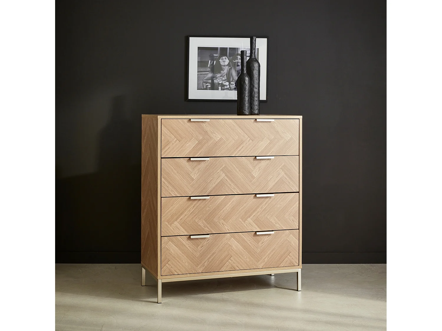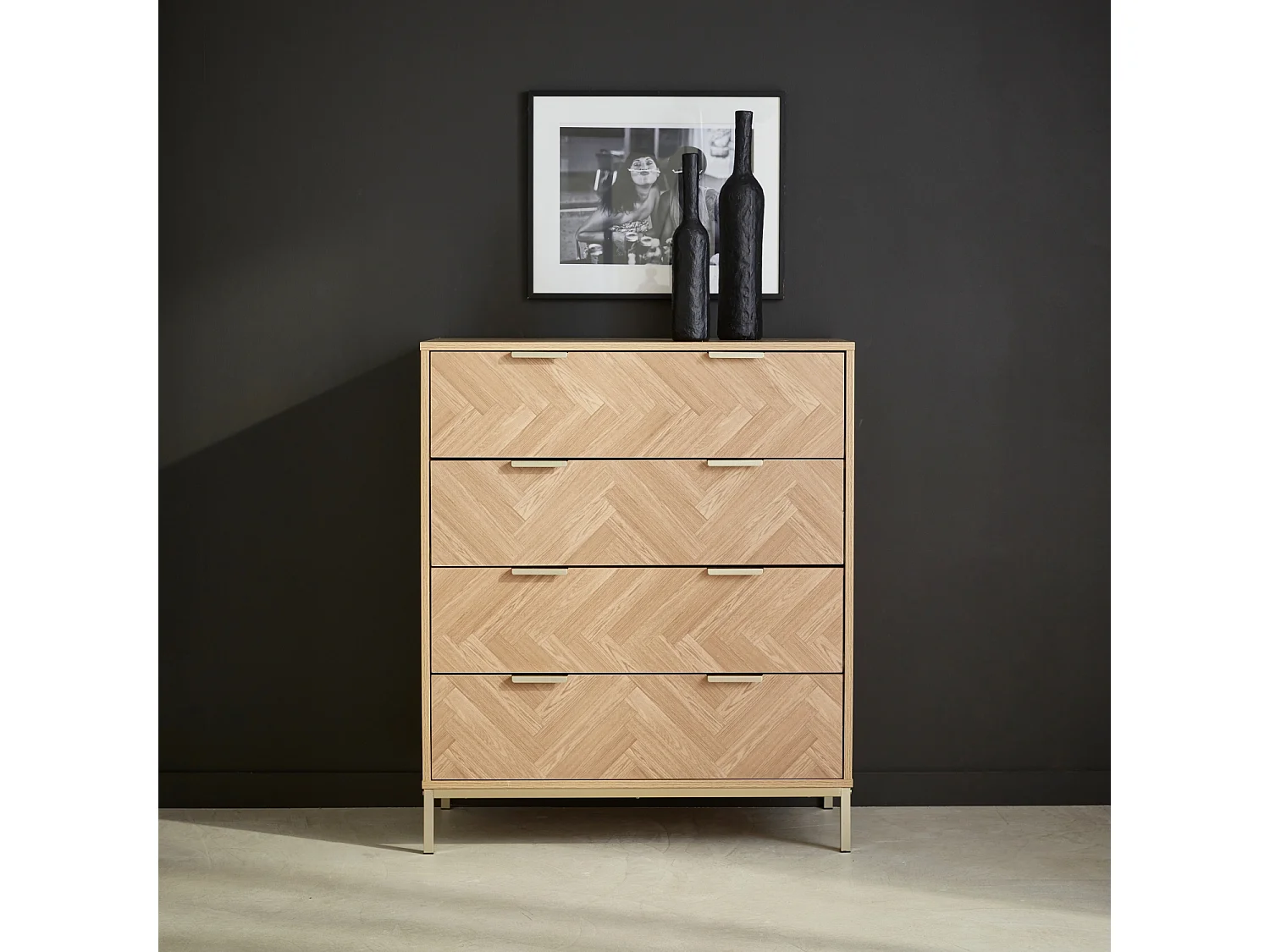 Cassettiera a spina di pesce, 4 cassetti, marrone naturale