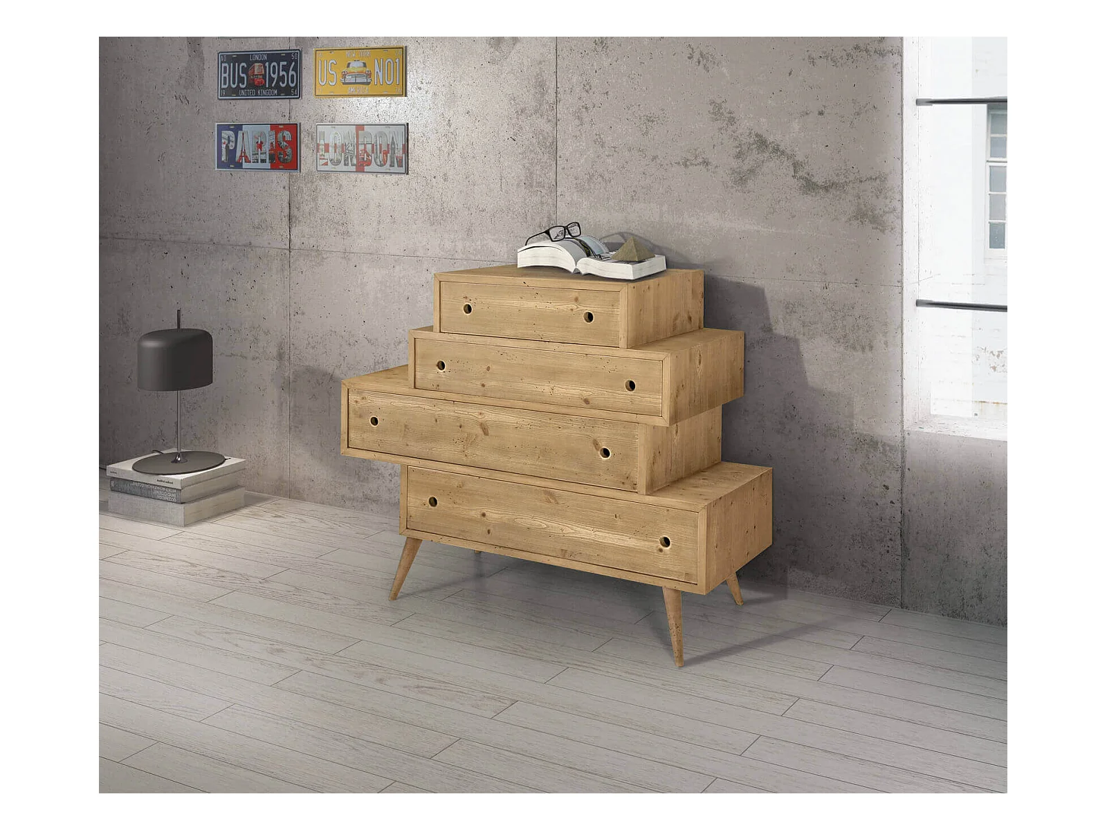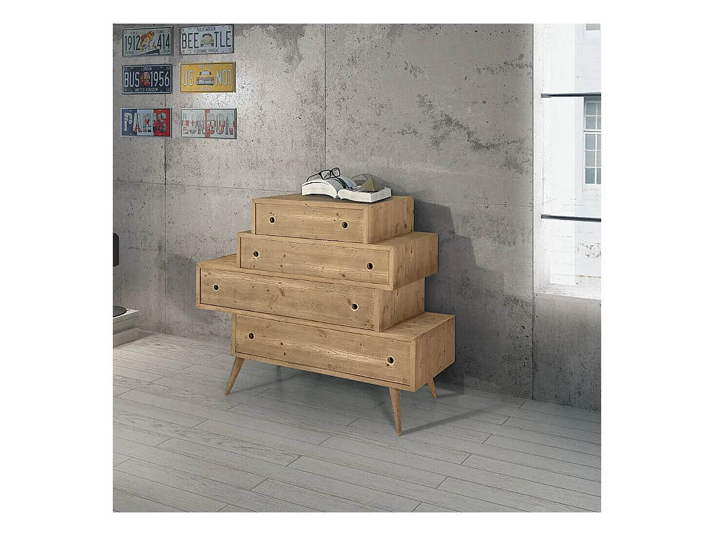 MilaniHome.it - cassettiera di design moderno in legno di pino riciclato massiccio stile moderno vintagedi coloreMarrone