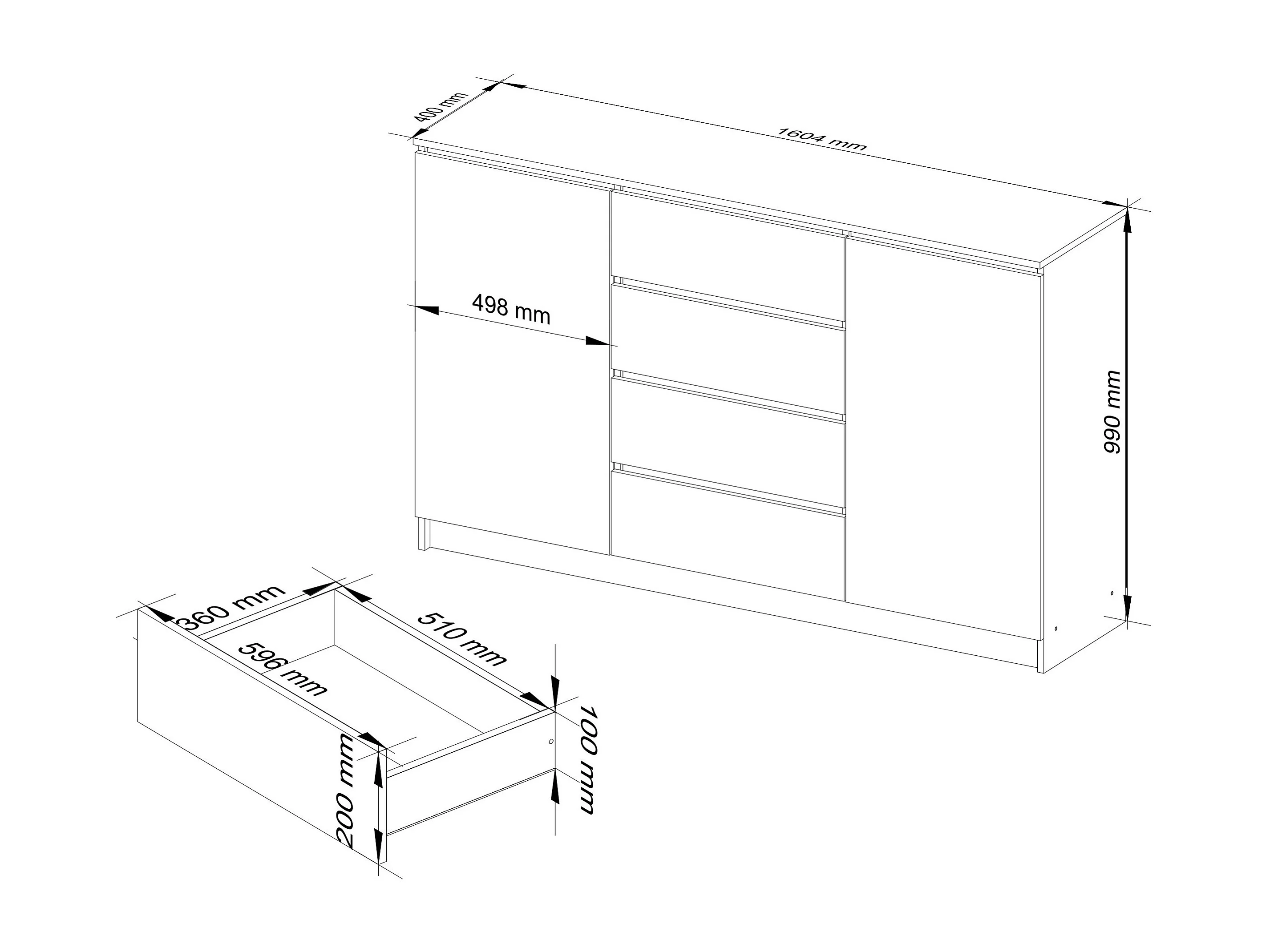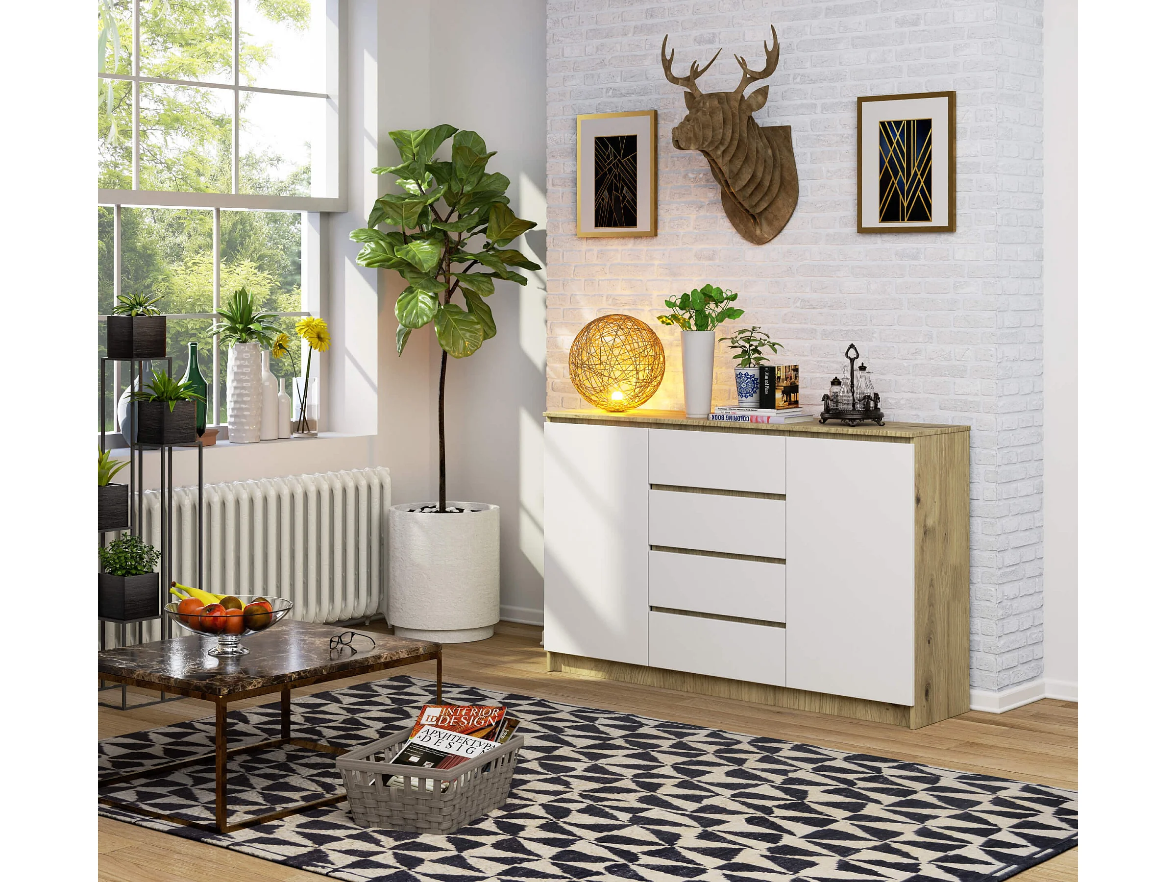 Cassettiera AKORD K160 Quercia Artisan 160 cm 2 ante 4 cassetti inserto frontale Bianco 160x40x99 cm