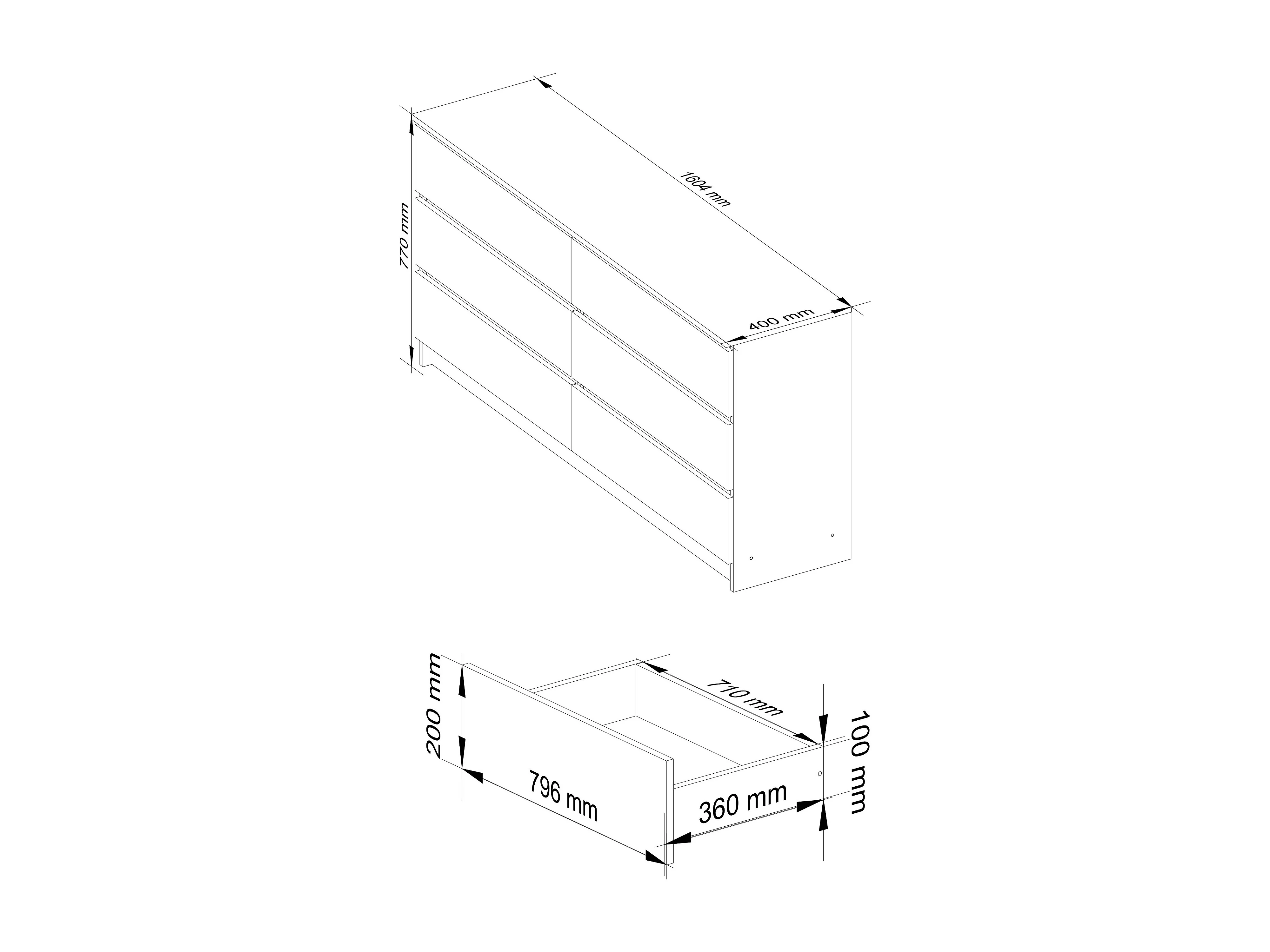 Cassettiera AKORD K160 Quercia Artisan 160 cm 6 cassetti inserto frontale Grigio Grafite 160x40x77 cm