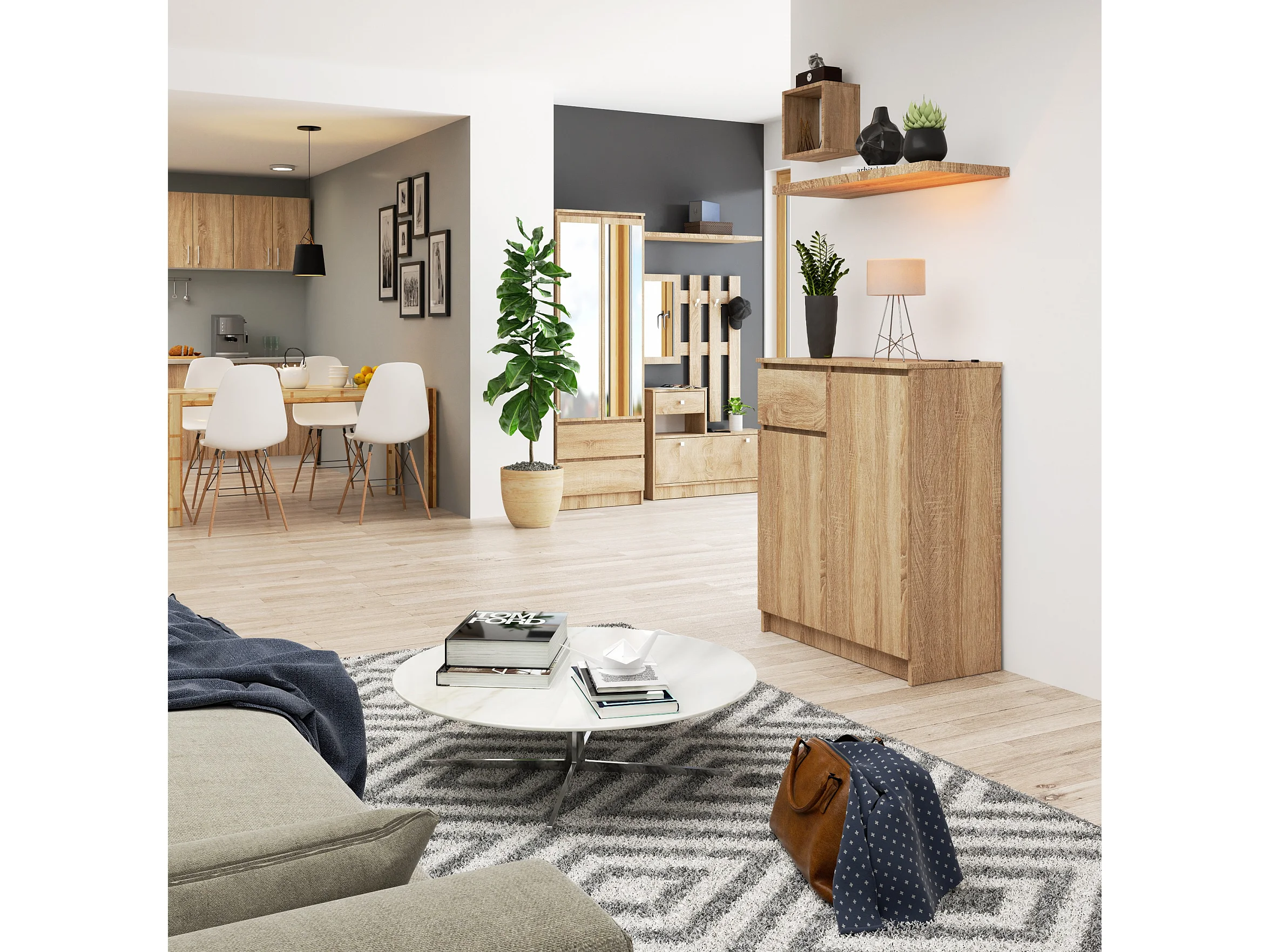 Cassettiera AKORD K80 Cassettiera Sonoma Quercia 80 cm 2 ante 1 cassetto 80x40x99 cm