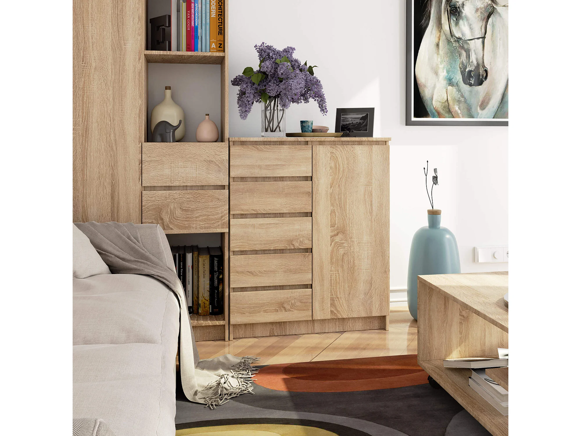 Cassettiera AKORD K80 Comò Quercia Sonoma 80 cm 1 porta 5 cassetti 80x35x97 cm