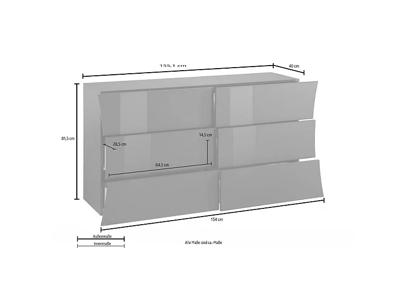 Cassettiera Arco 150 – 6 cassetti – 155x81x40 – Bianco Lucido