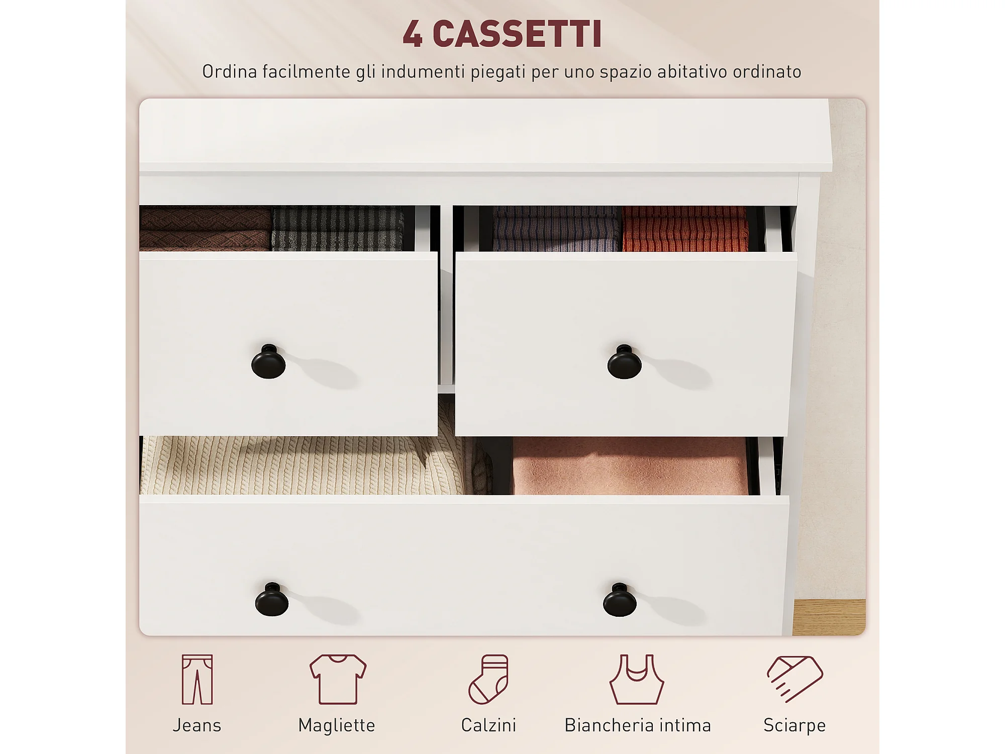 Cassettiera 4 cassetti in truciolato moderna 55x33x80 cm bianco lucido