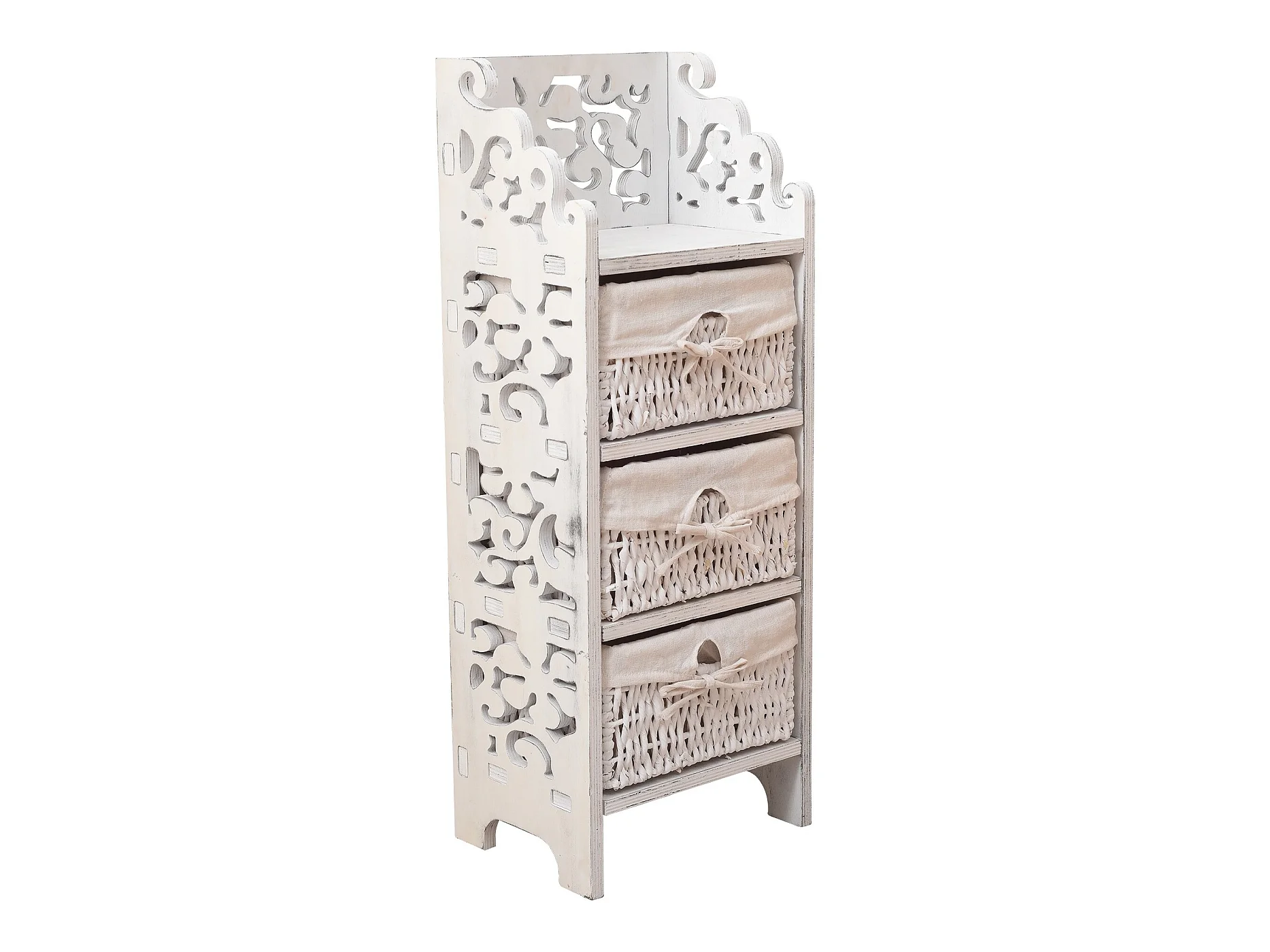 Cassettiera Comodino 3 Cassetti Legno Bianco Shabby 78x29x22