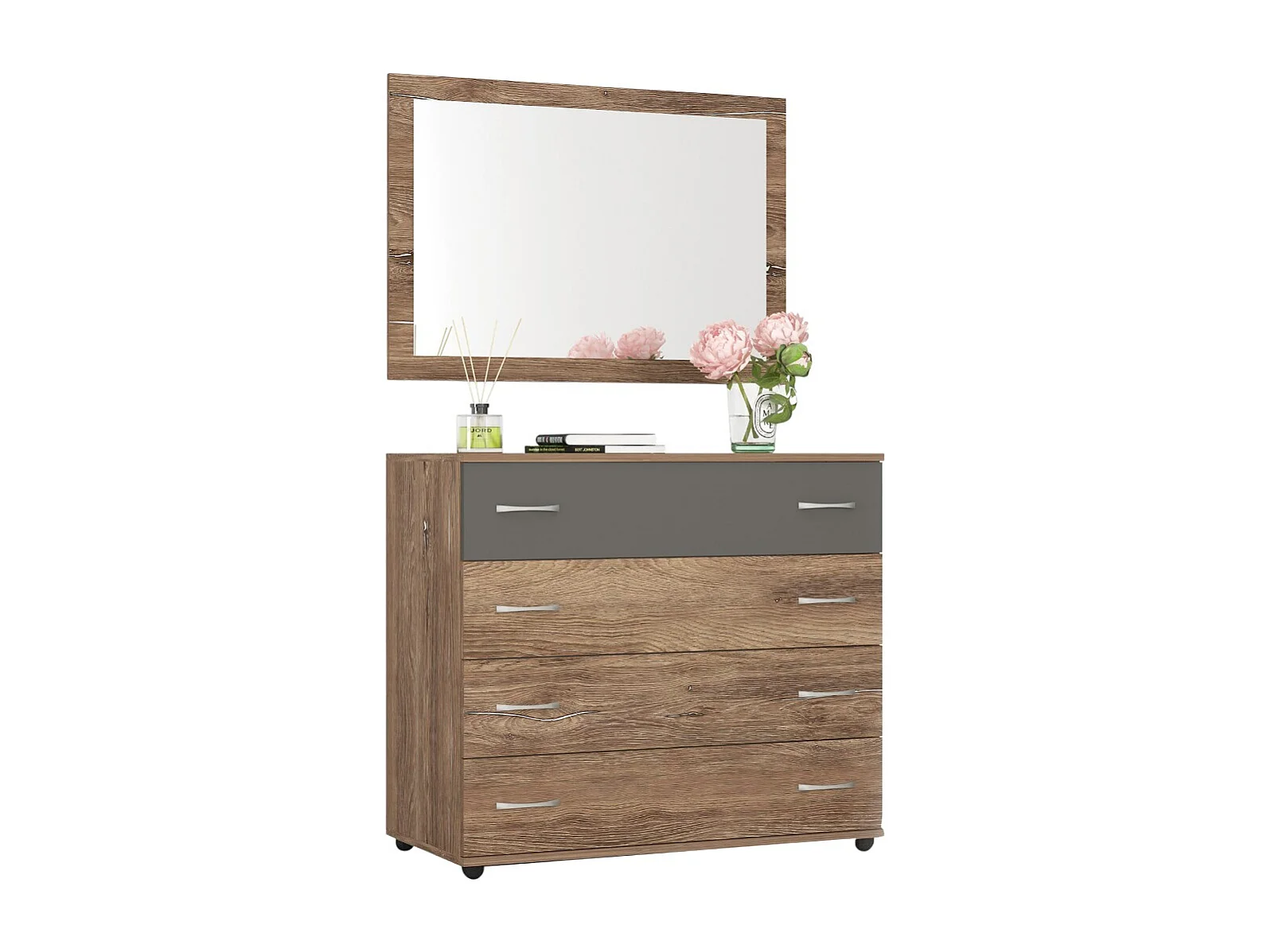 Cassettiera per camera da letto con 4 cassetti marrone e antracite CG7