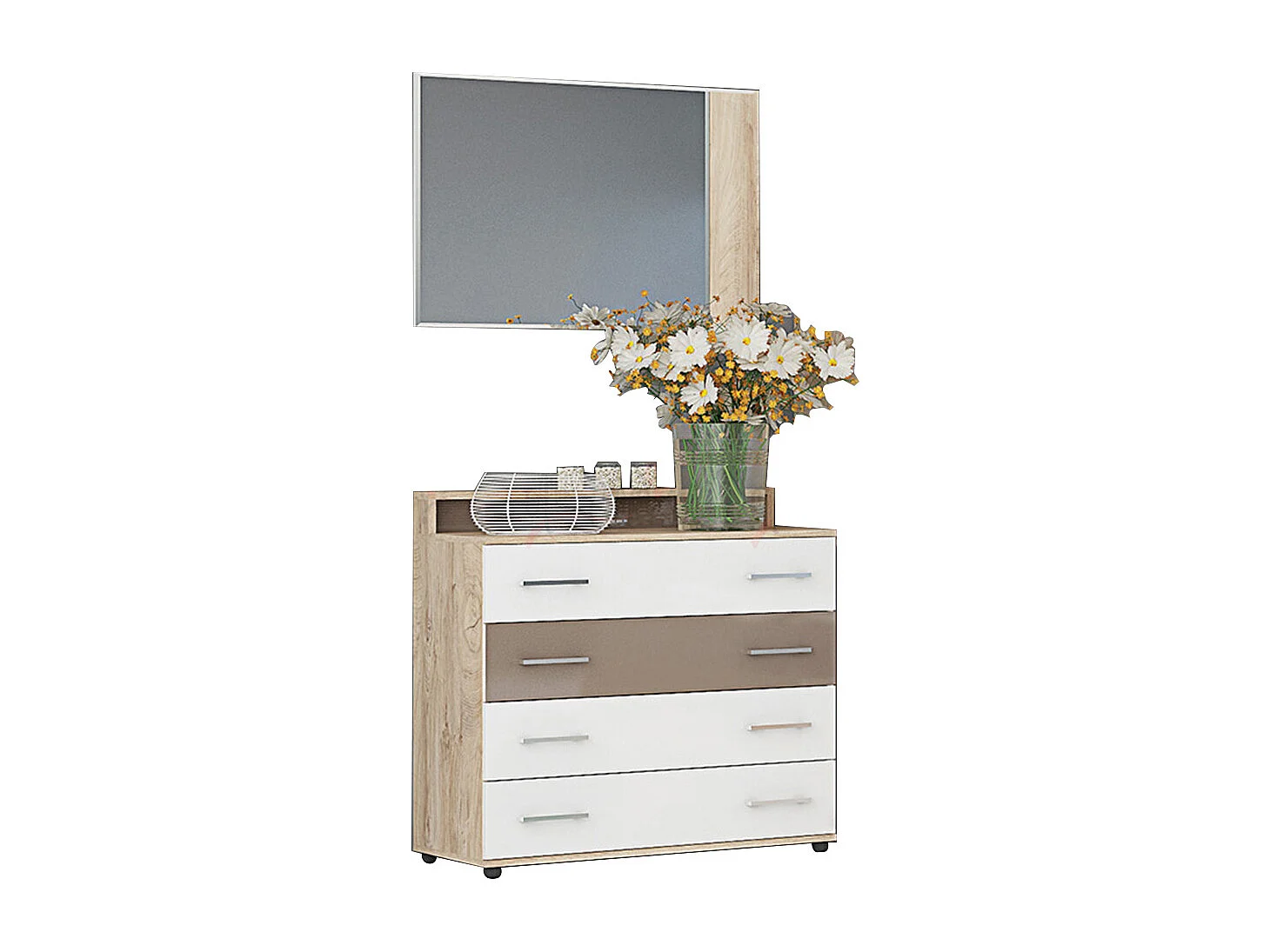 Cassettiera per camera da letto con 4 cassetti quercia bianca e cappuccino CG7