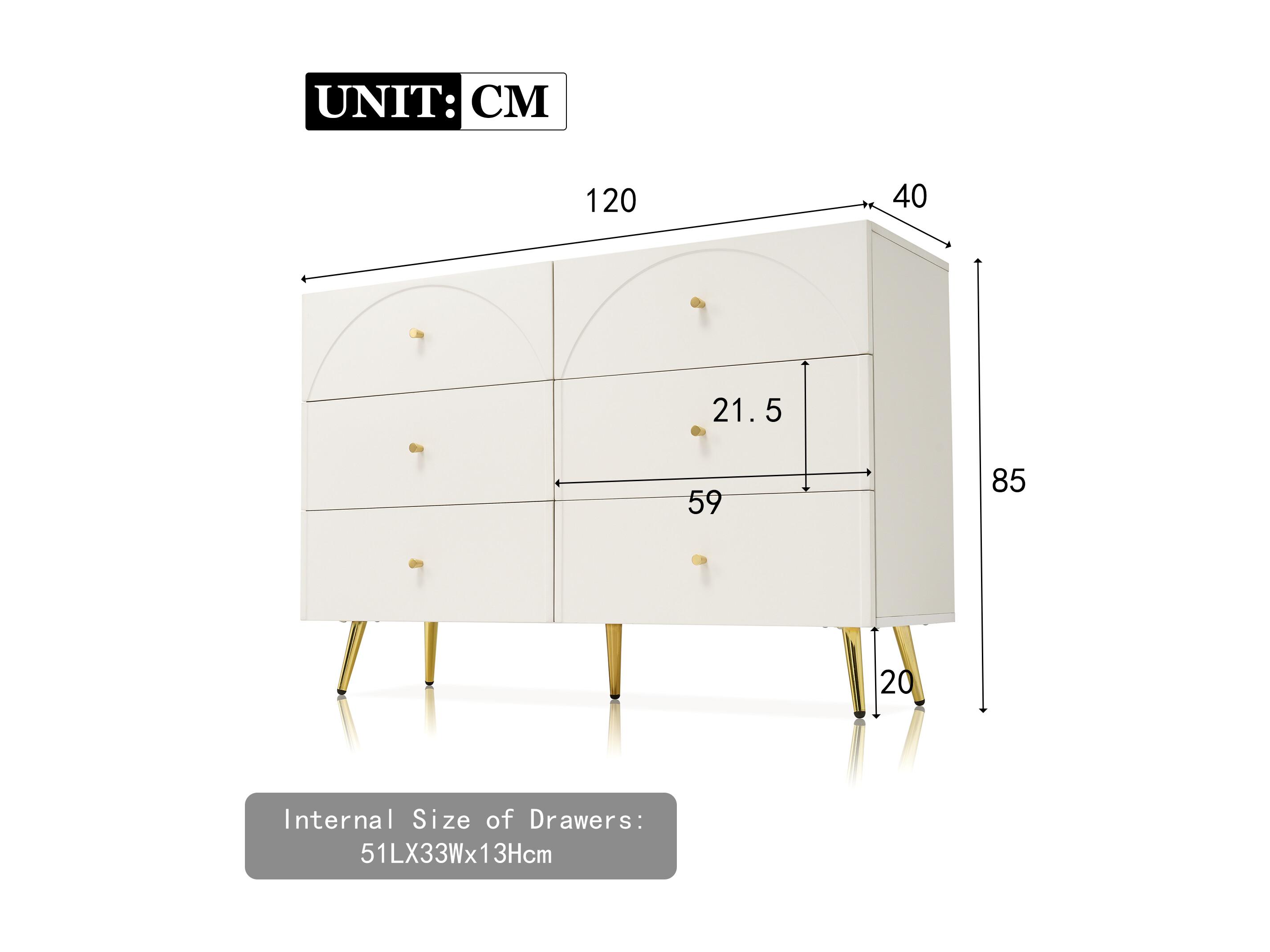 Comò 6 cassetti moderne bois blanc rangement chambre pieds métal 120x40x75 cm