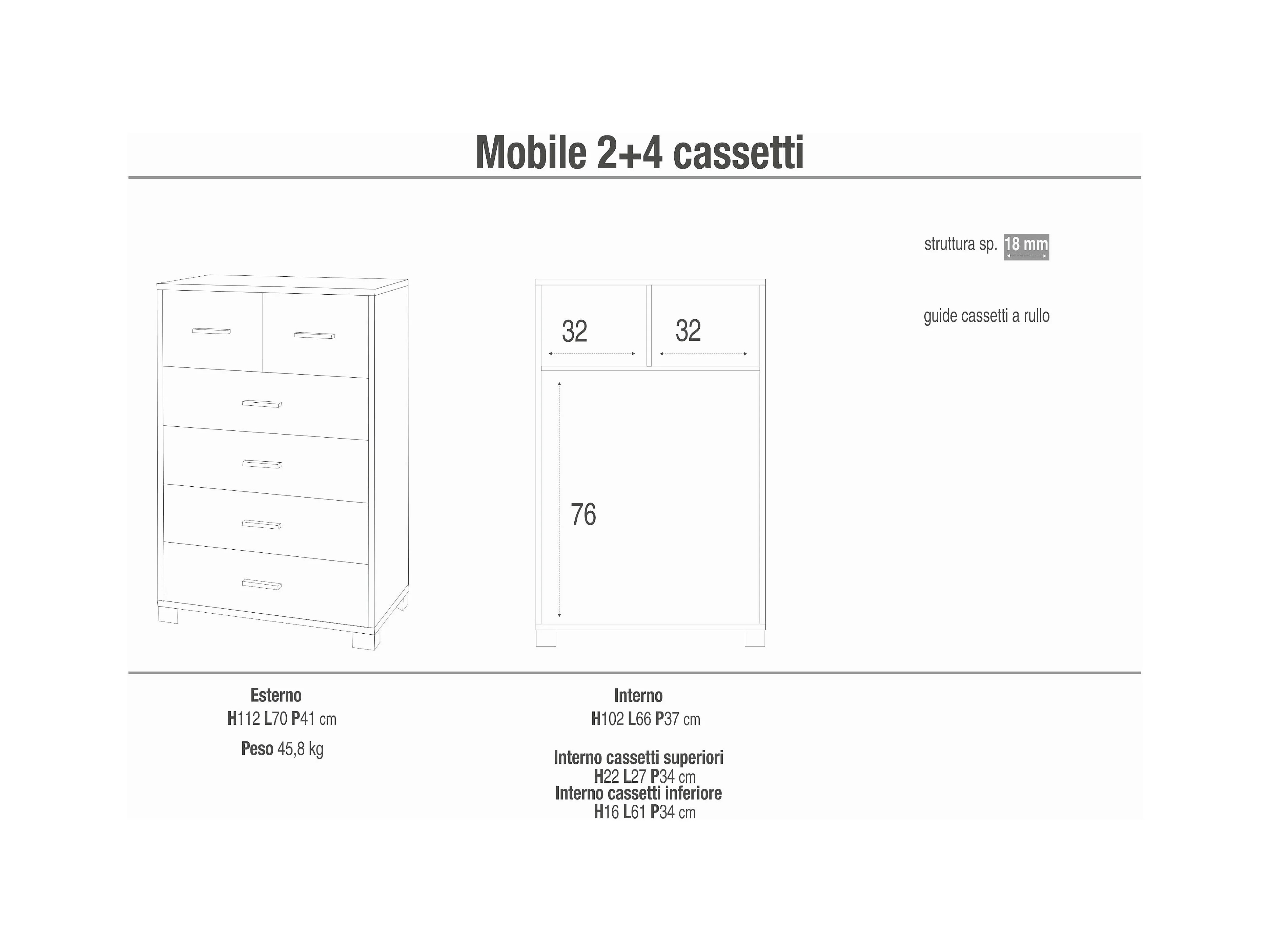 MilaniHome.it - cassettiera con 6 cassetti di design moderno cm 70 l x 41 p x 112 hdi coloreBianco