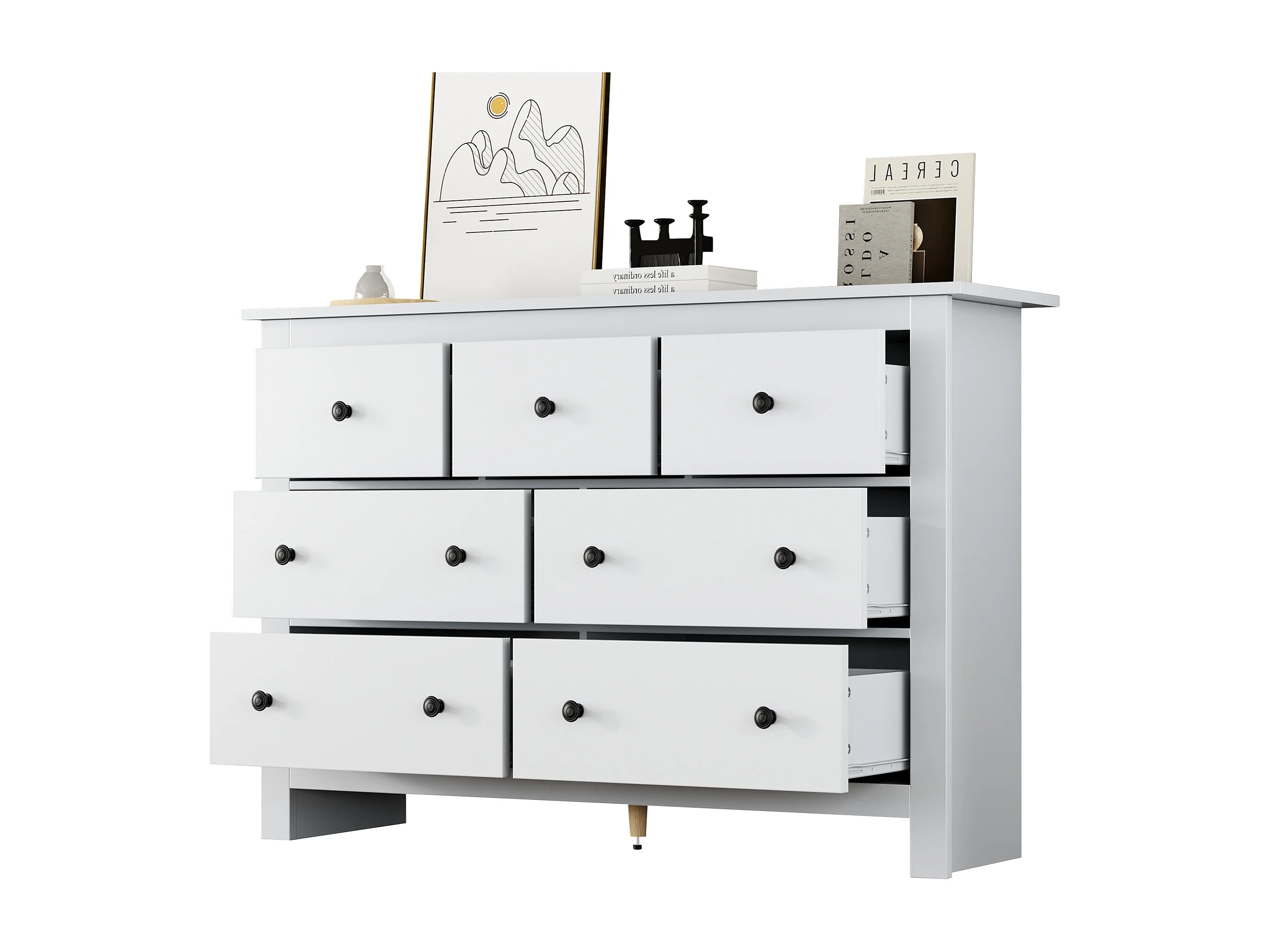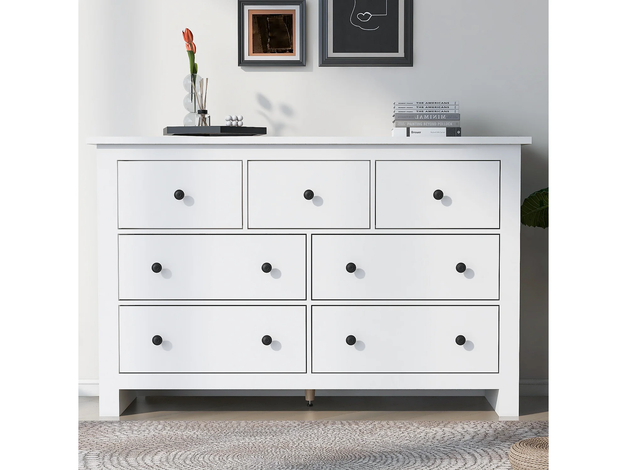 Cassettiera con 7 cassetti - maniglie nere - Bianco