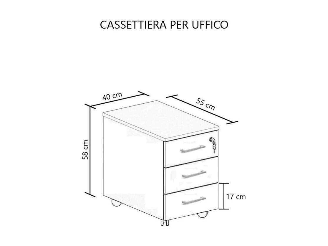 Cassettiera da ufficio 3 cassetti olmo e bianco frassinato Ibisco con ruote e serratura 40x55x58H