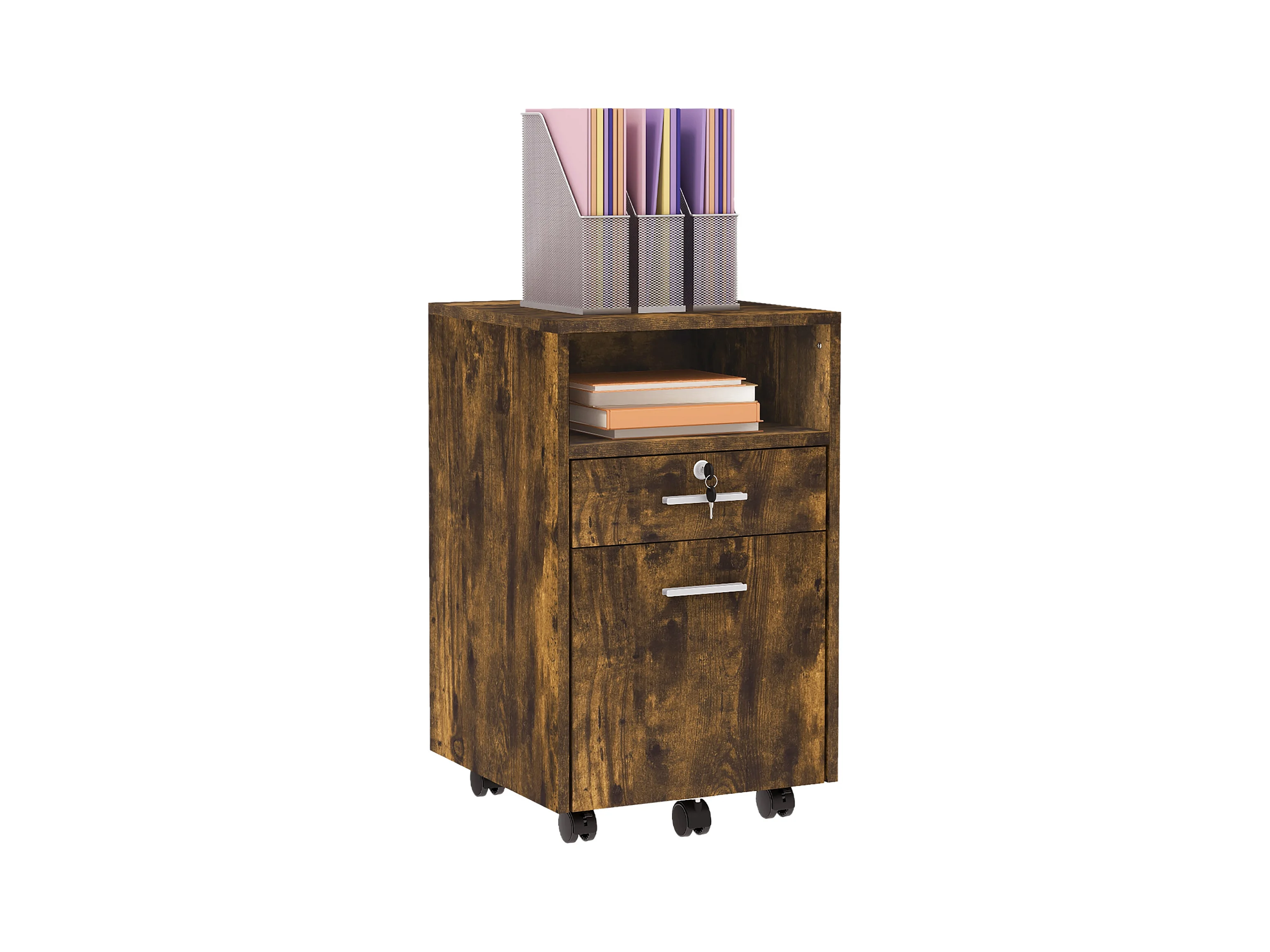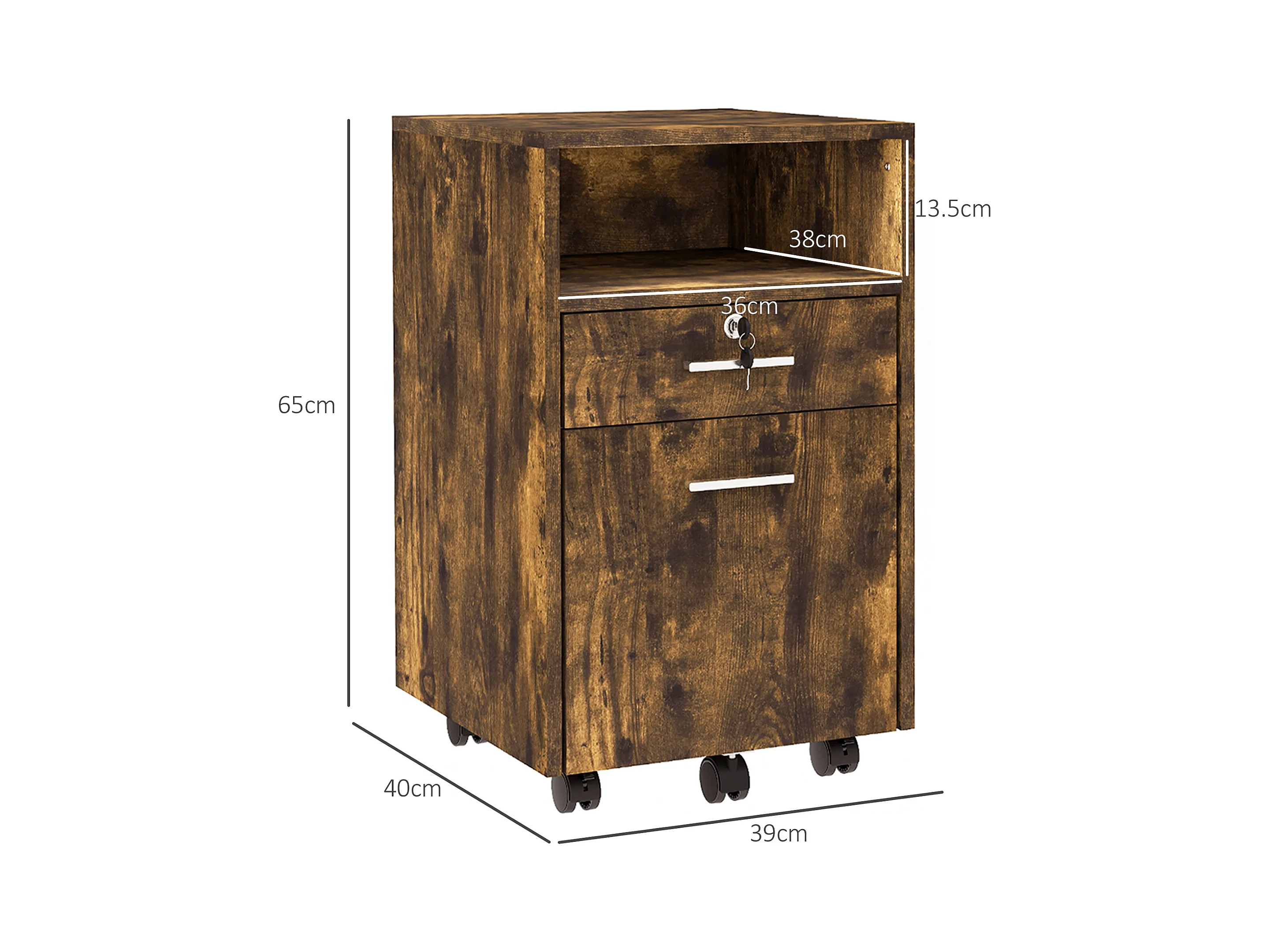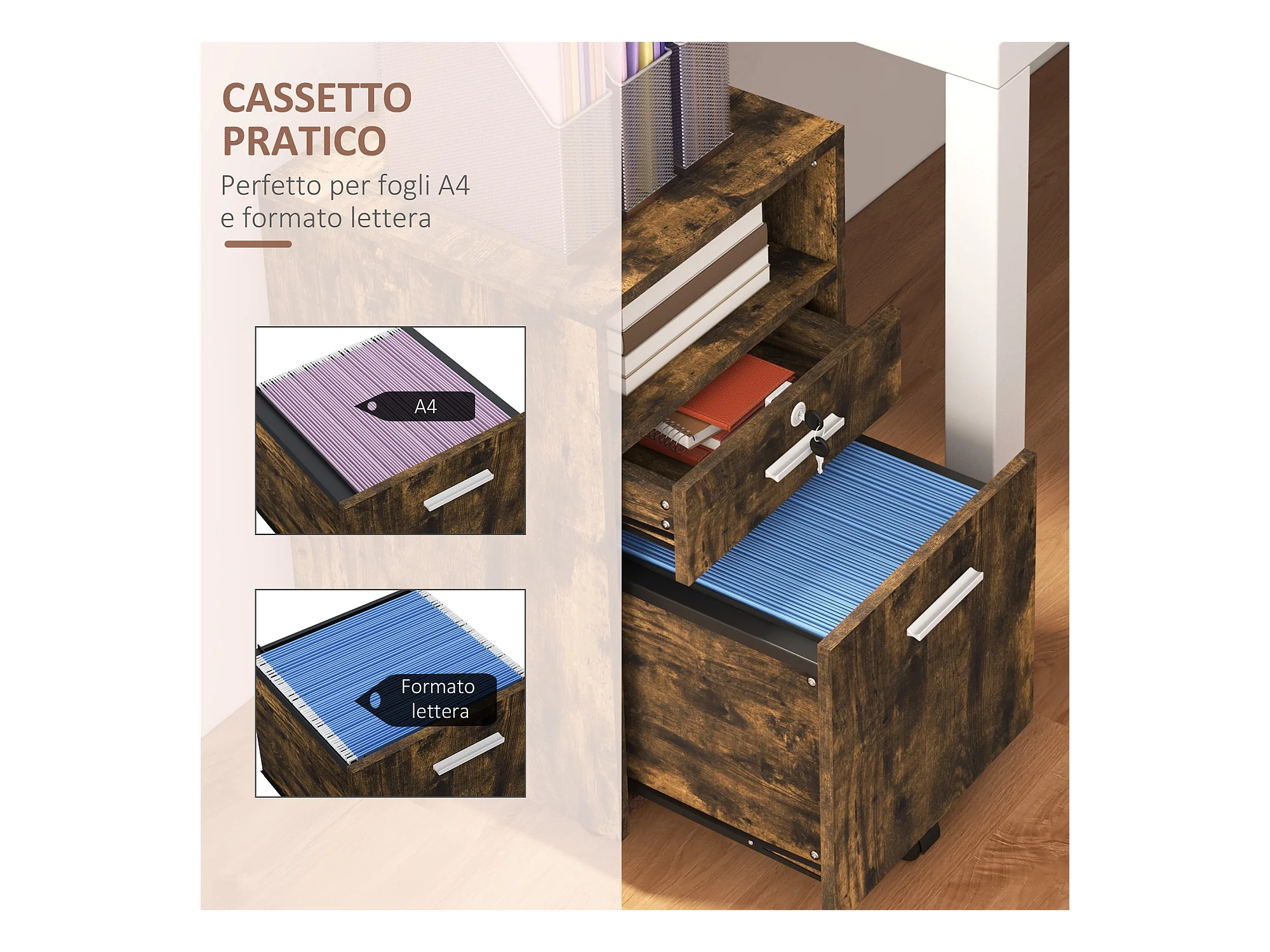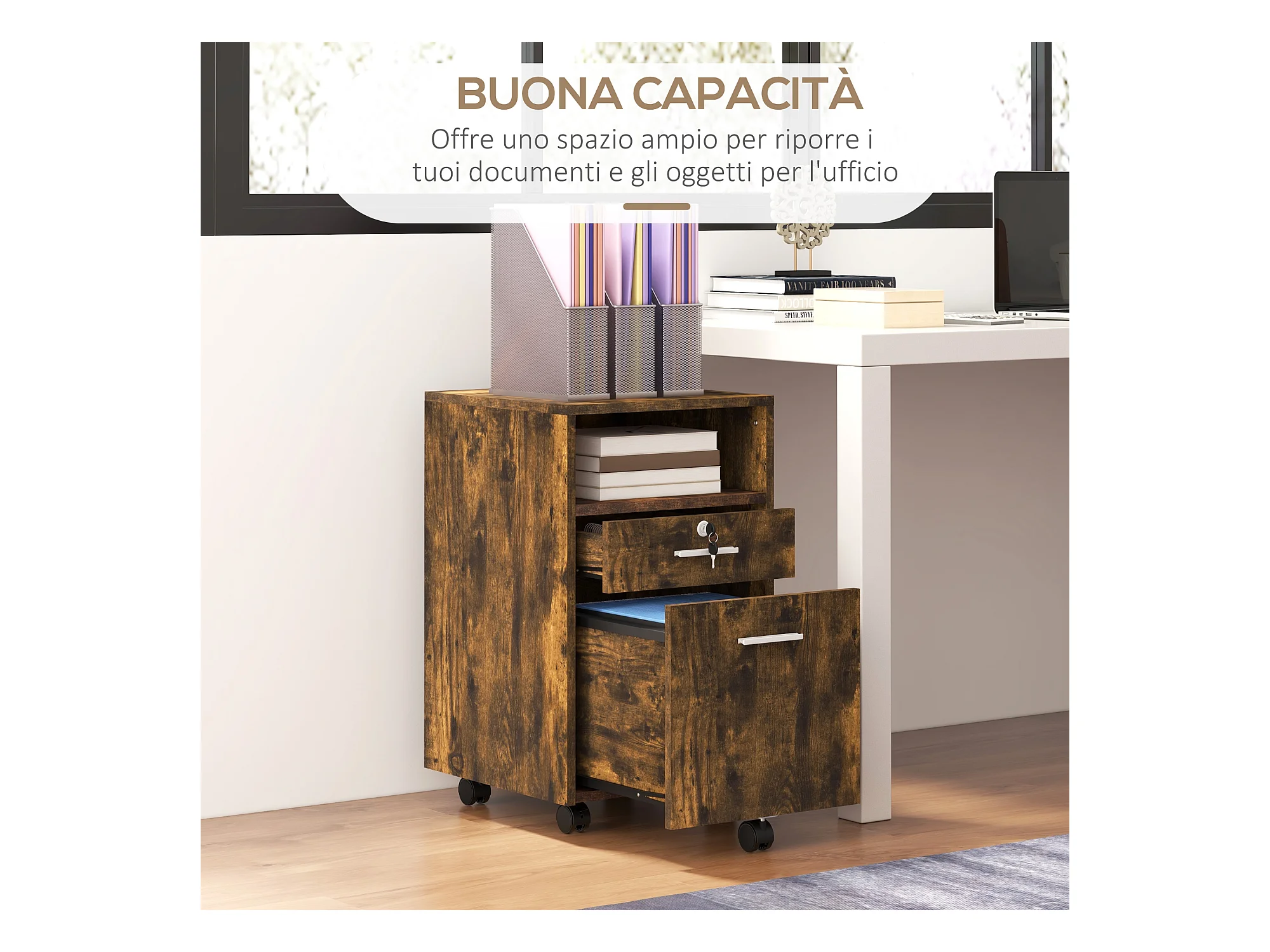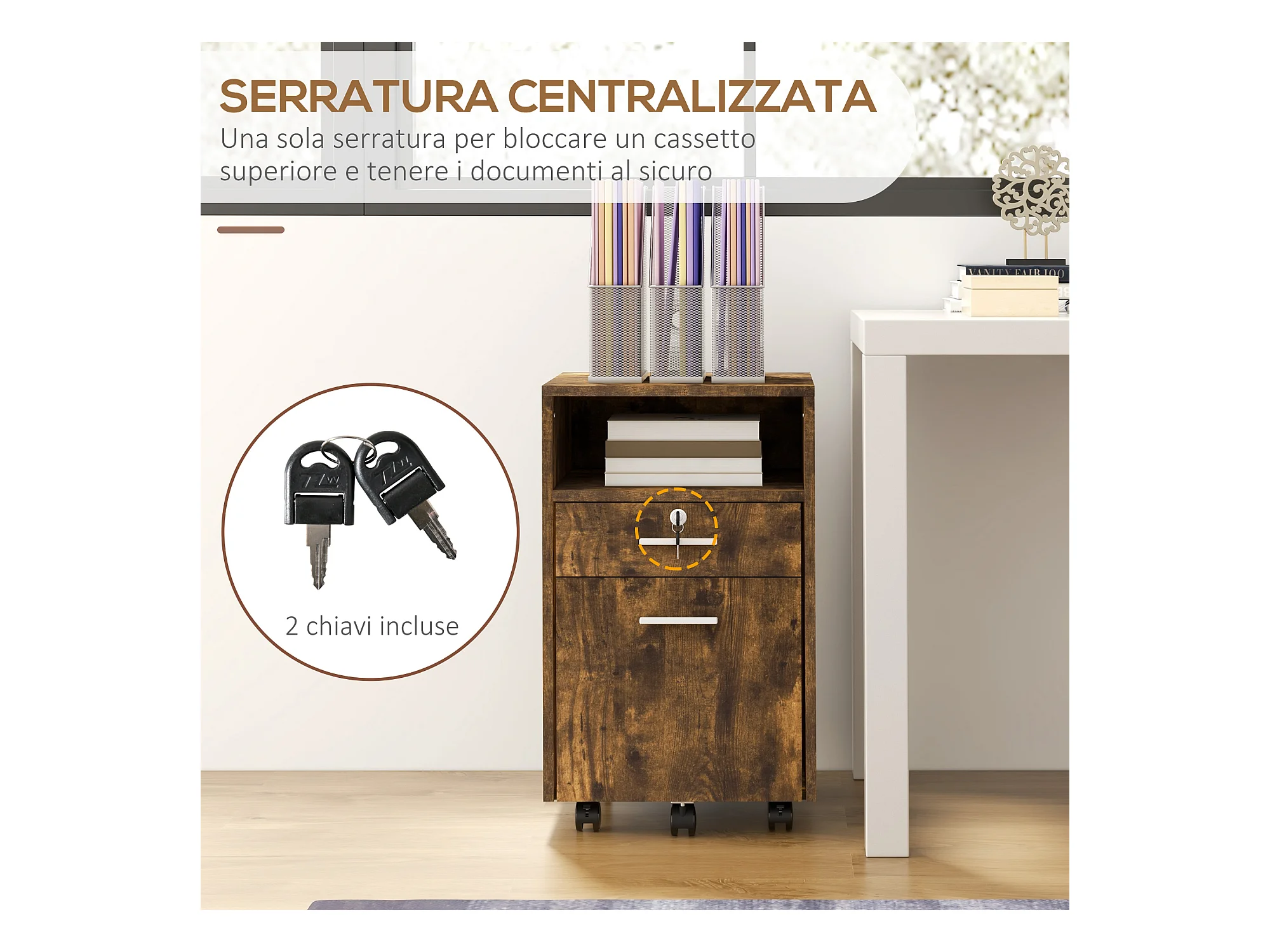 Cassettiera da Ufficio con 2 Cassetti e Ripiano Aperto marrone