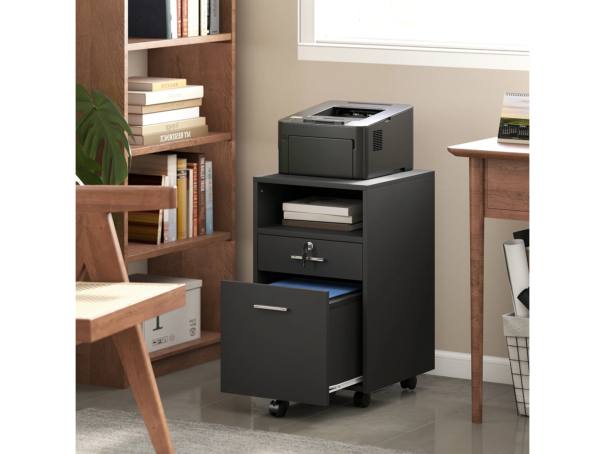 Mobiletto da Ufficio con ripiano aperto, cassetto e armadietto nero
