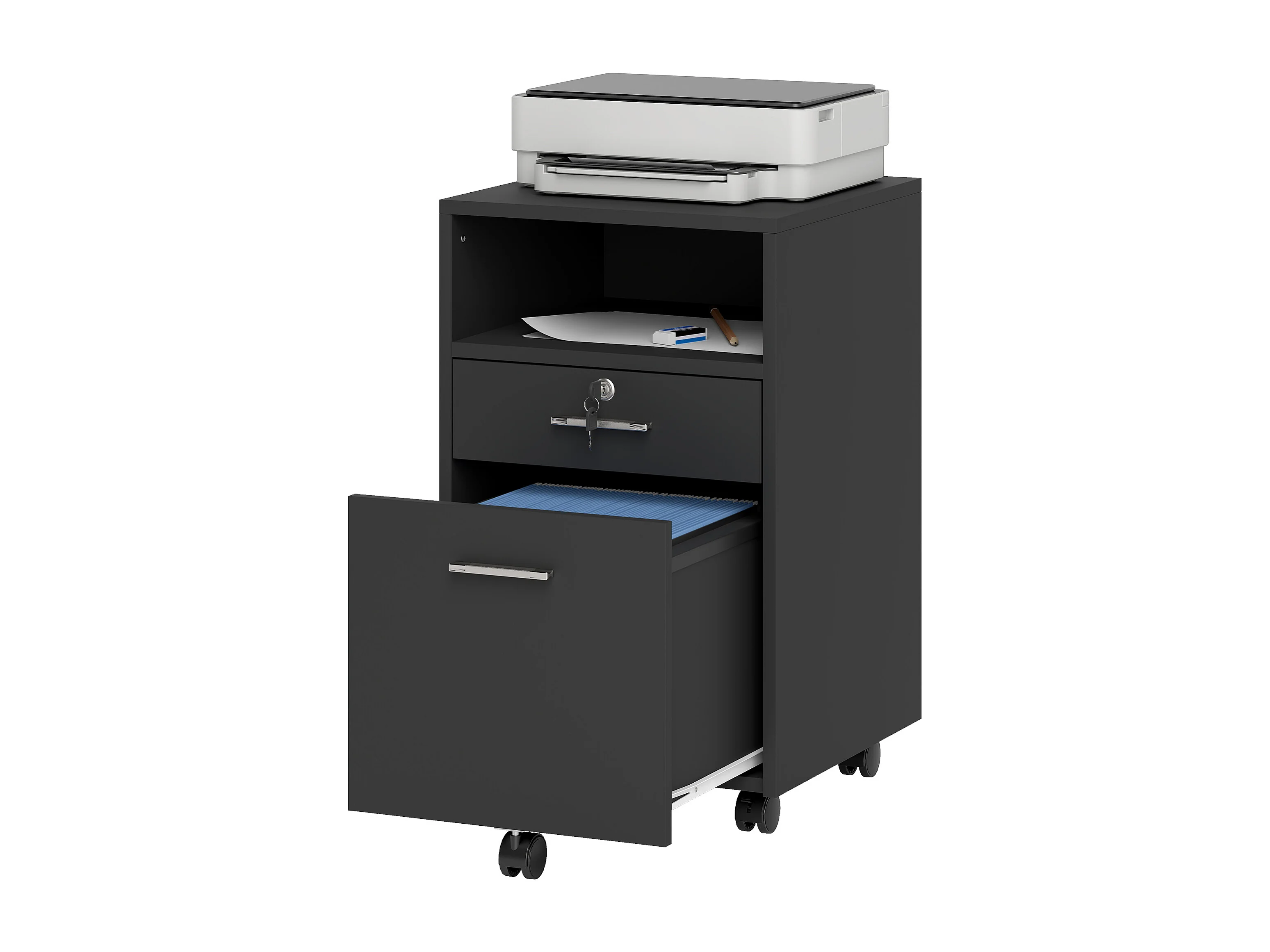 Cassettiera da ufficio con 2 cassetti e ripiano aperto nero