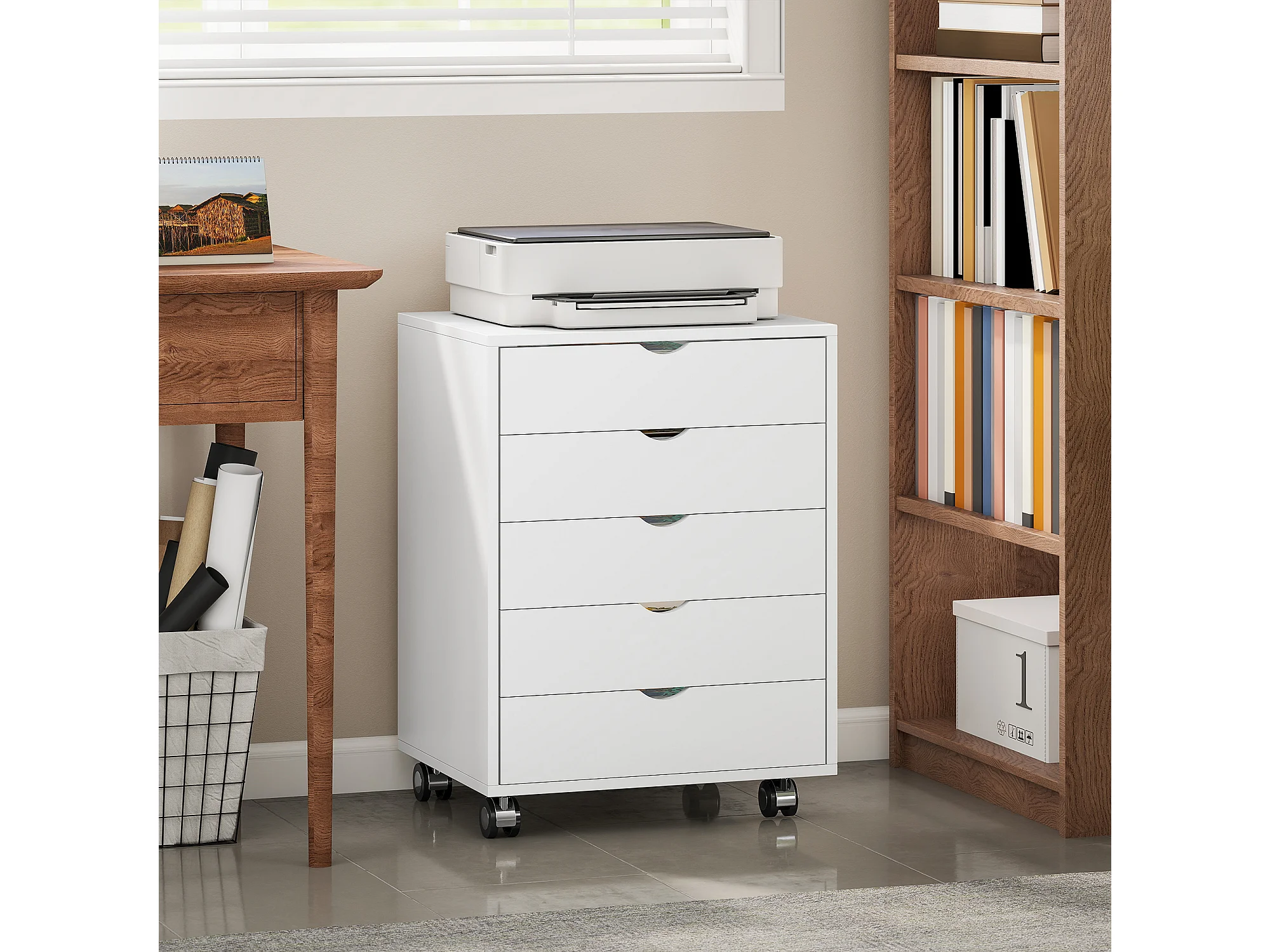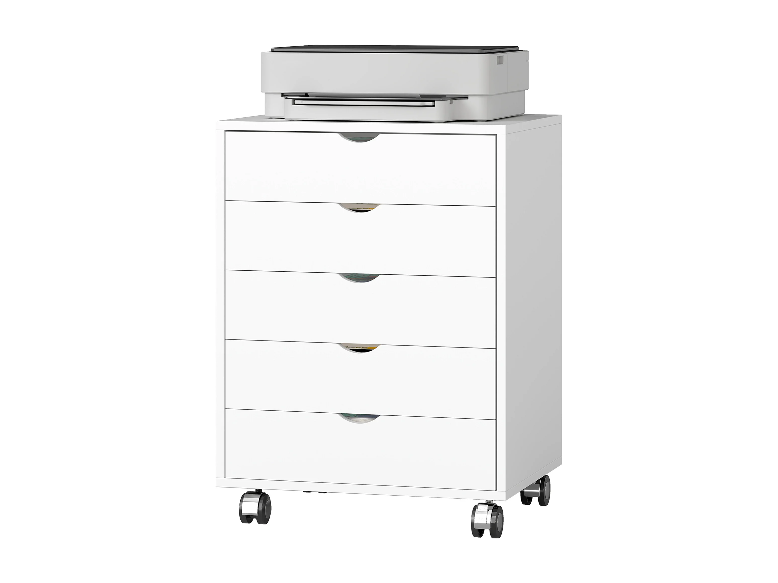 Cassettiera da ufficio con 5 cassetti formato a3 con ruote bianco