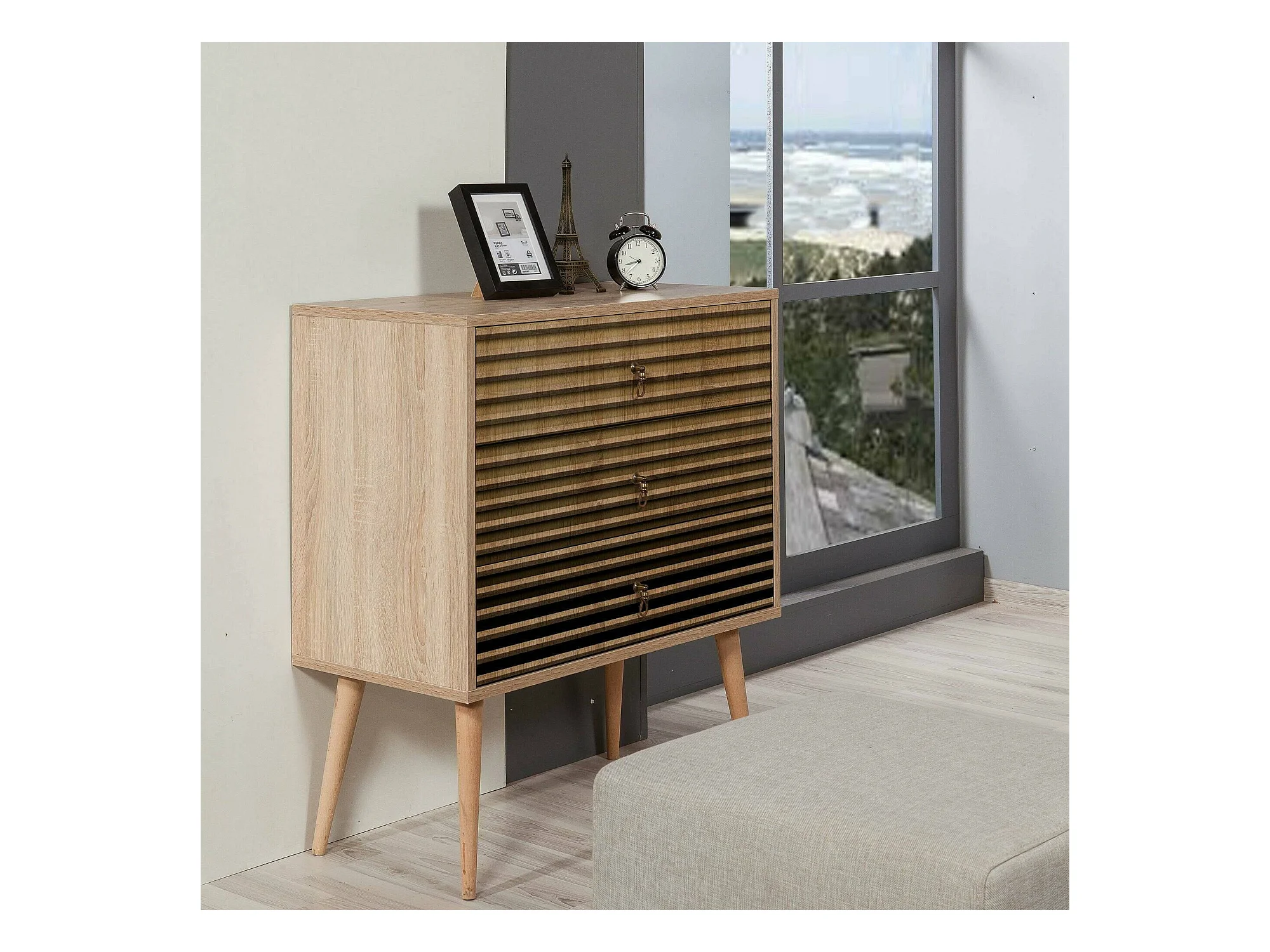 Cassettone effetto legno, 3 cassetti, marrone chiaro