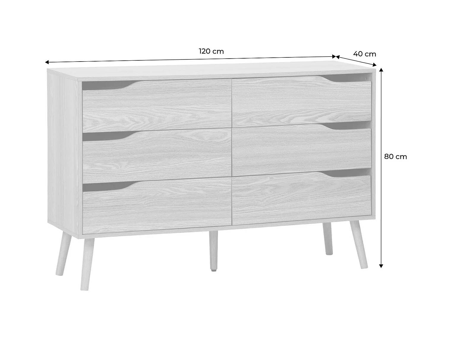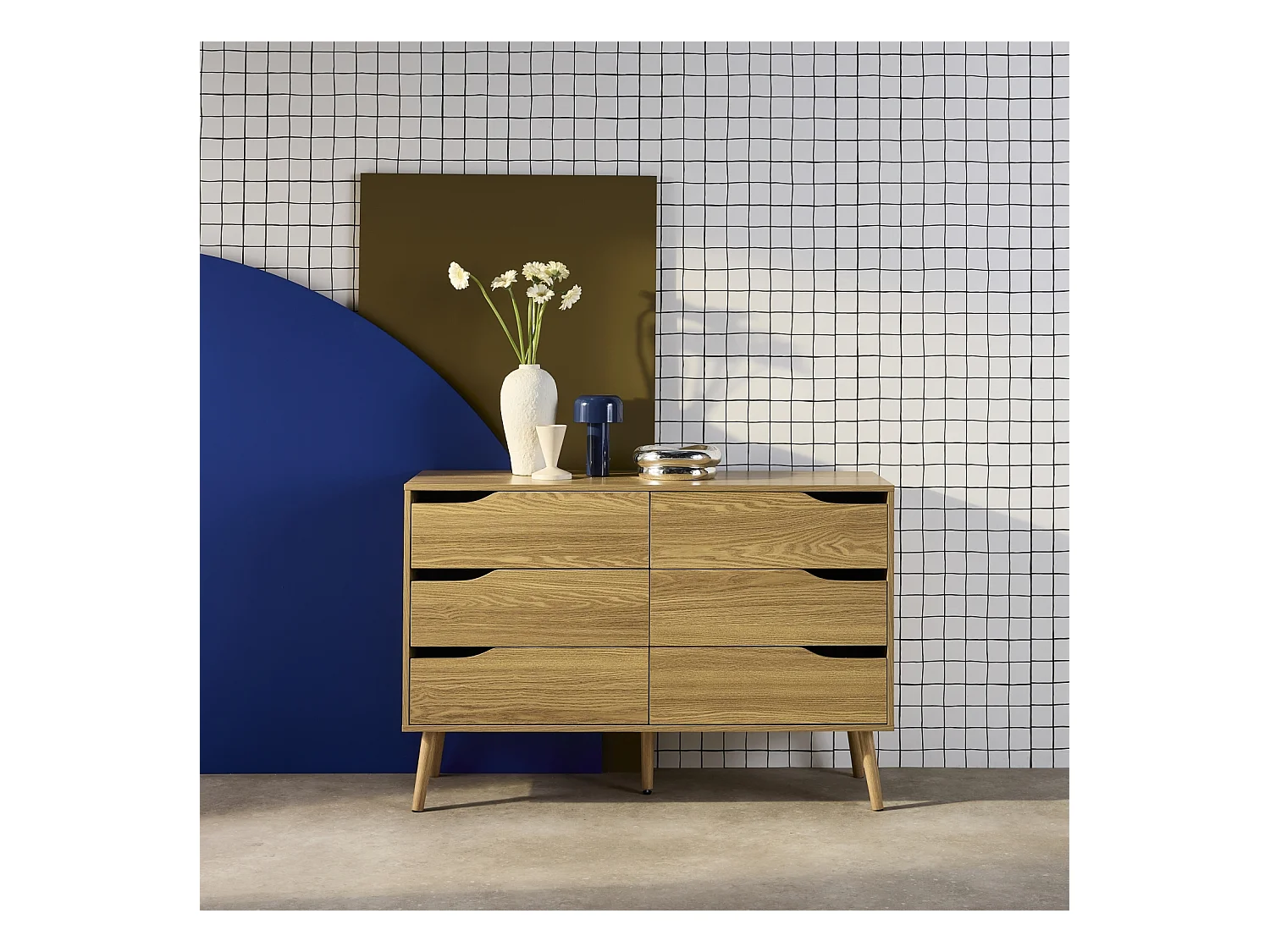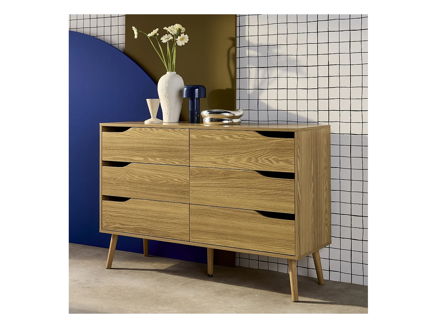 Cassettiera effetto legno, 6 cassetti, effetto frassino