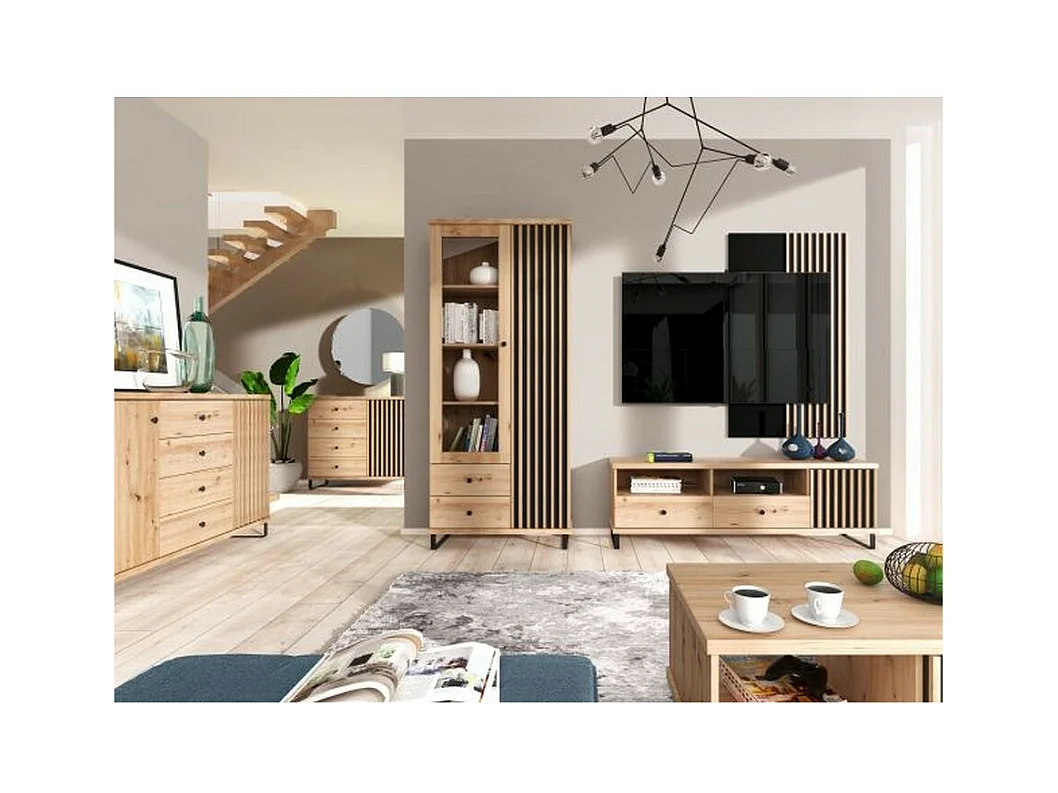 Credenza a 3 ante PUMP 160 cm in rovere wotan e look nero