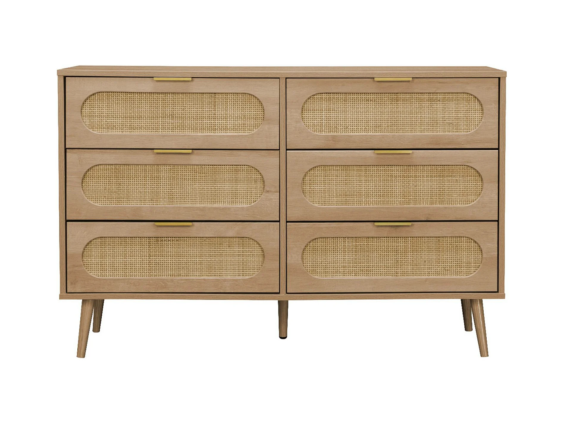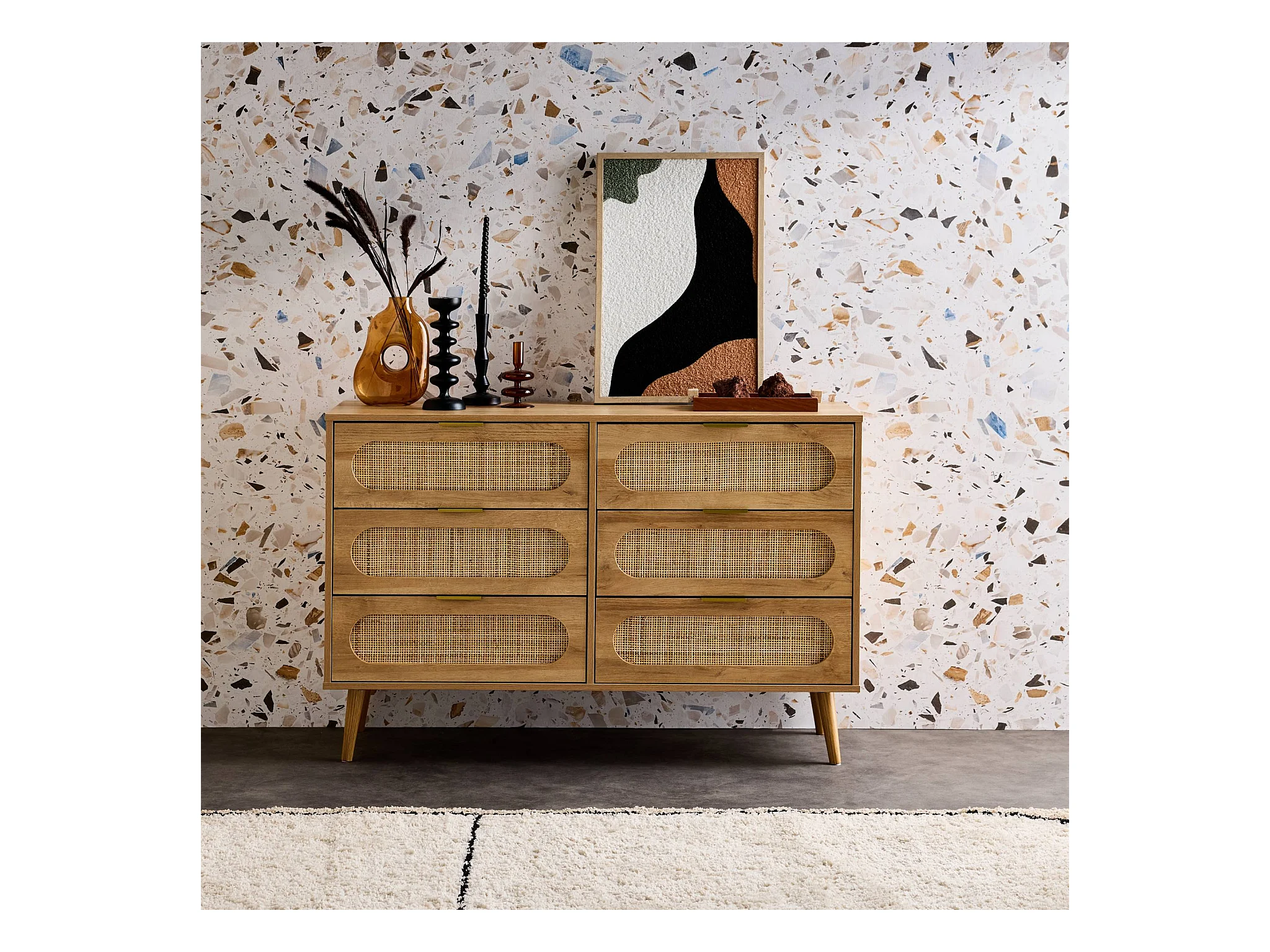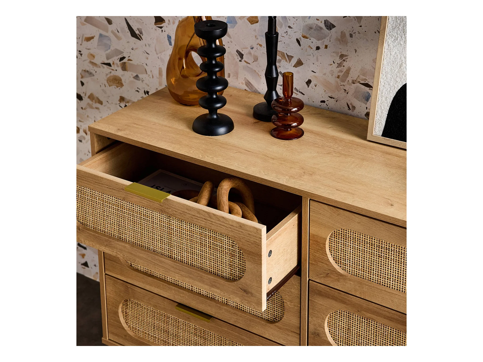 Cassettiera in legno e canna arrotondata, 6 cassetti, marrone naturale