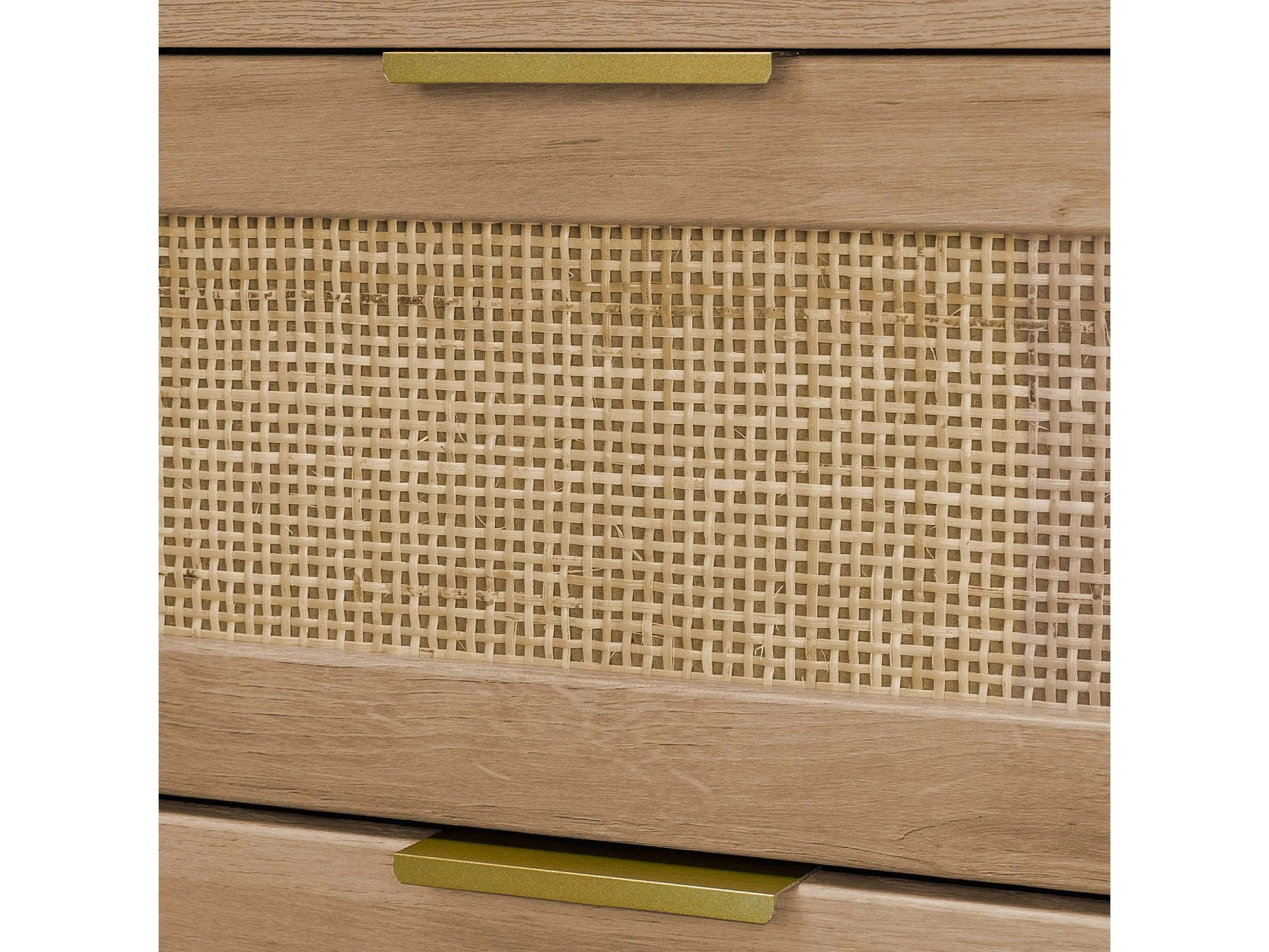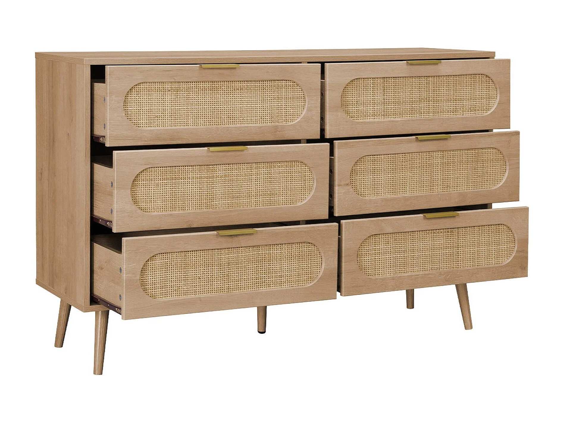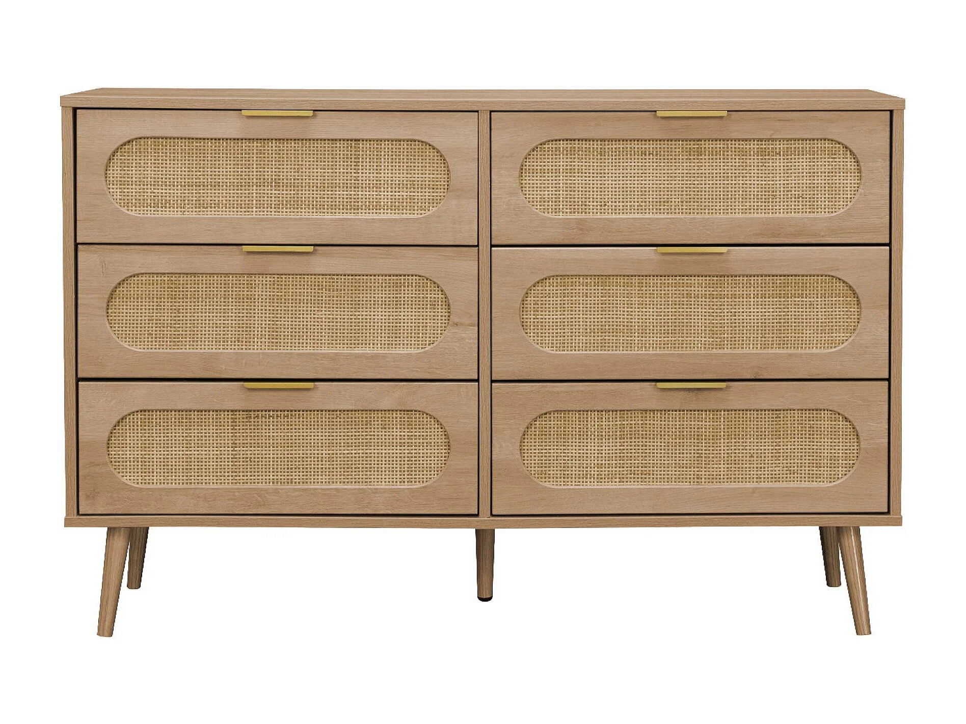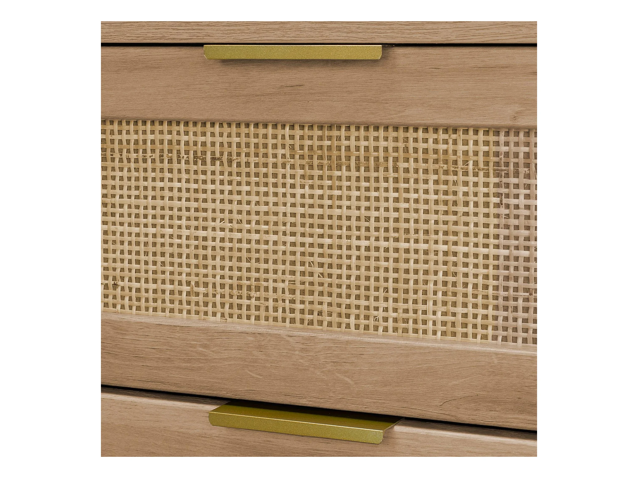 Cassettiera in legno e canna arrotondata, 6 cassetti, marrone naturale