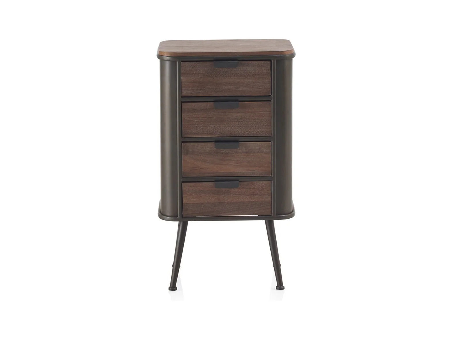 Cassettiera in metallo con piano e 4 cassetti in legno di abete