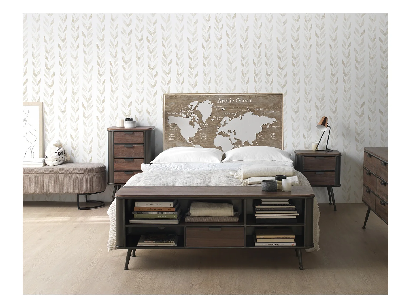 Letto con contenitori e cassetti