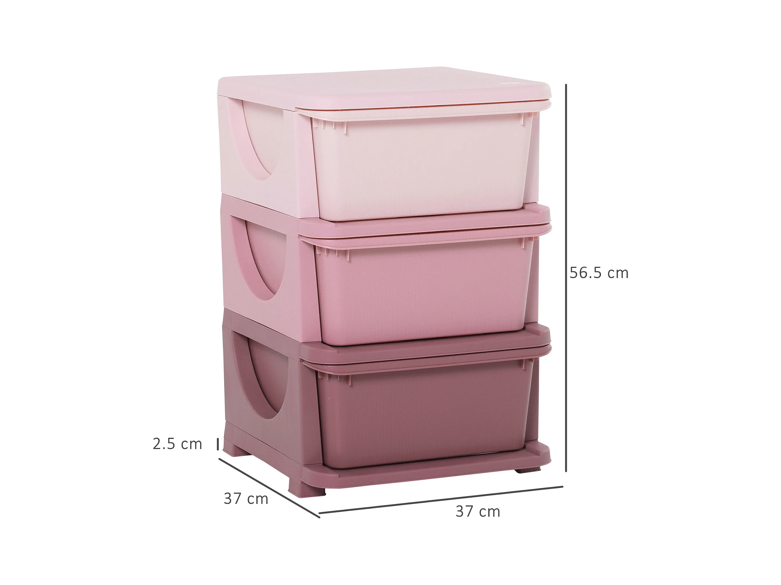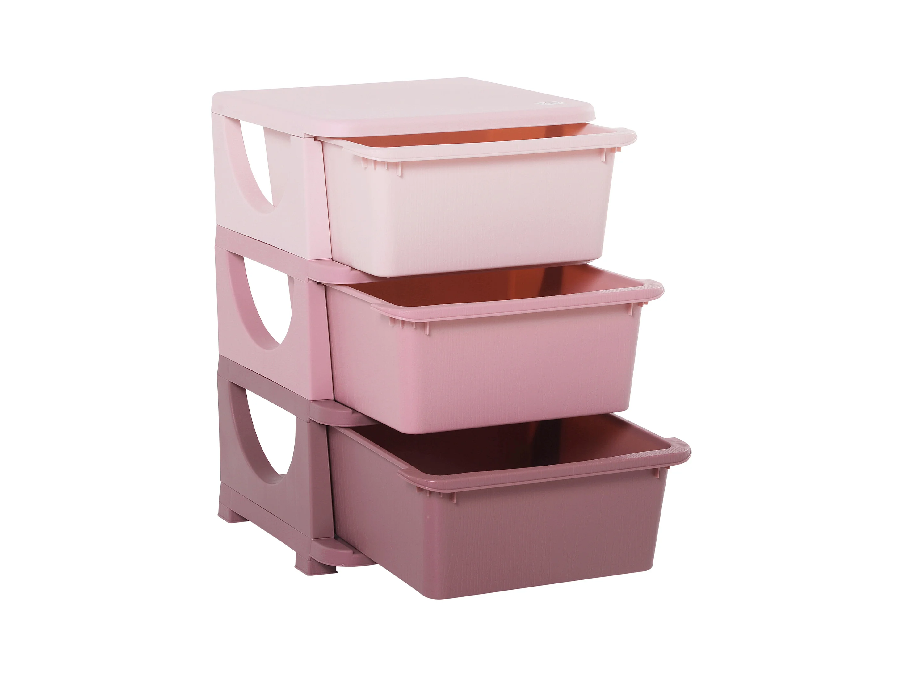 Cassettiera in plastica colorata 3 cassetti 37x37x56.5cm rosa