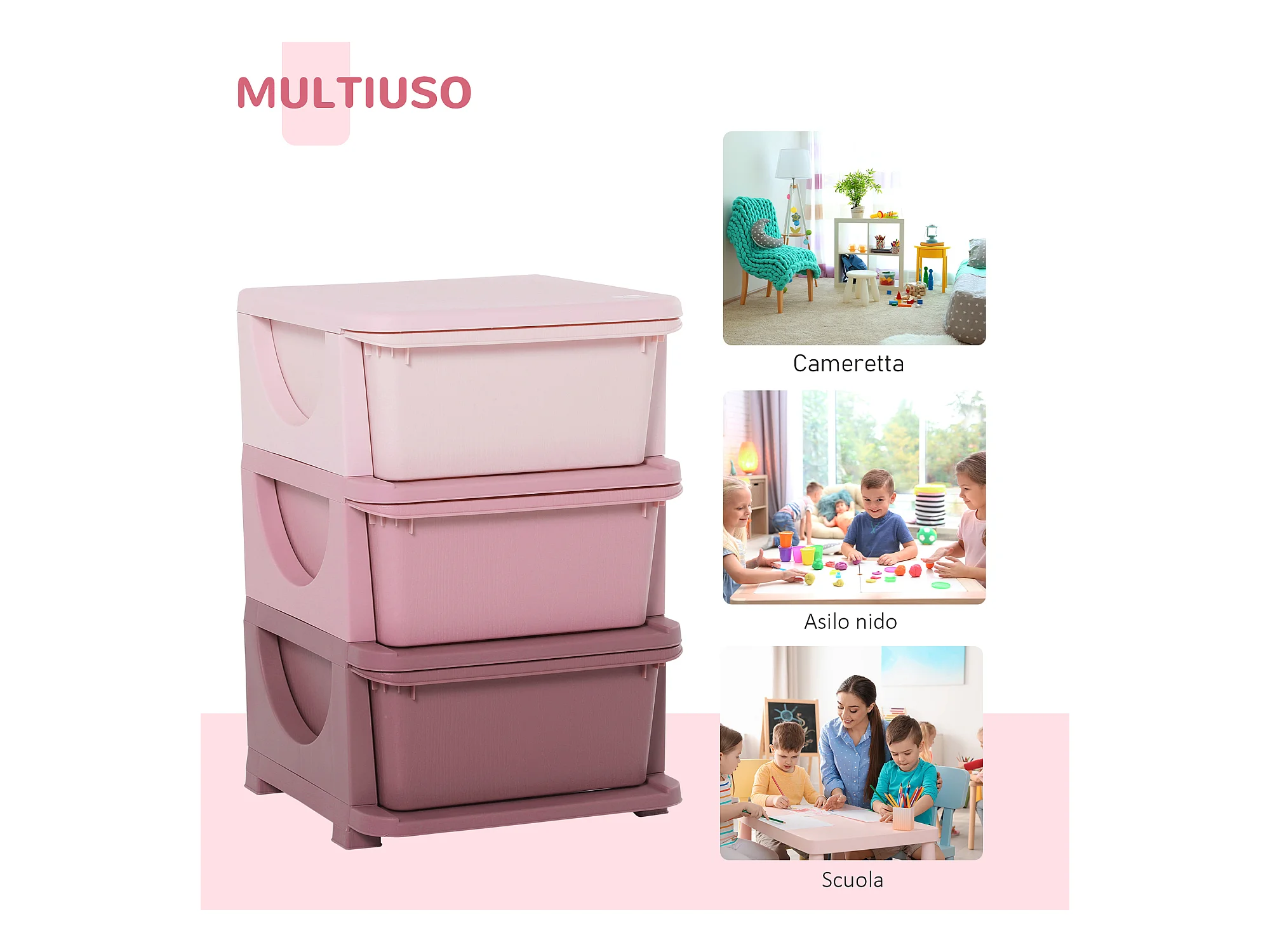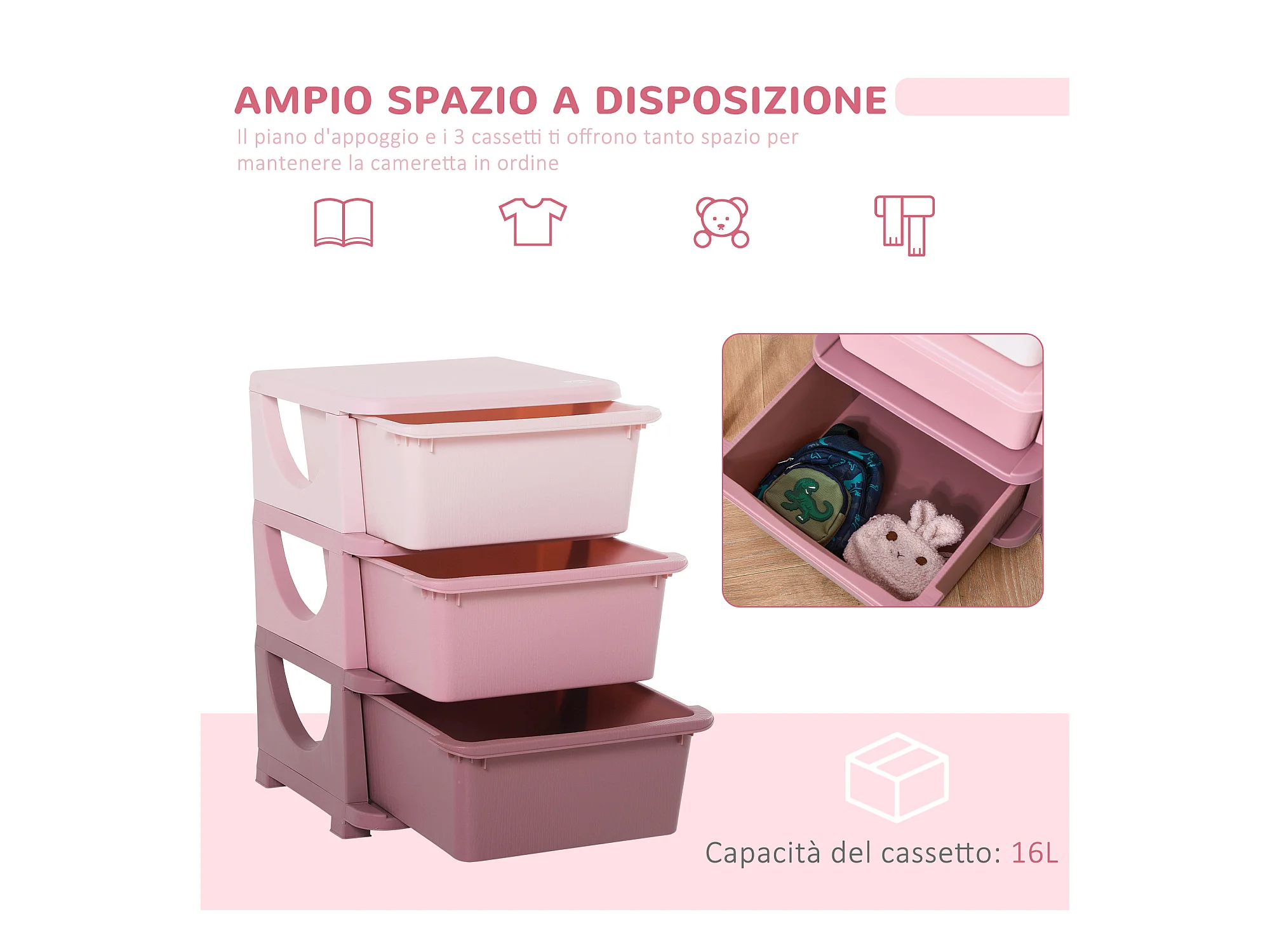 Cassettiera 6 cassetti per bambini con bordi arrotondati in pp rosa