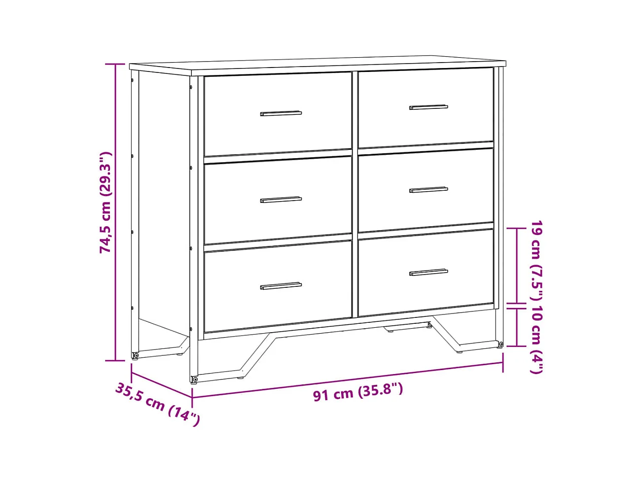 Cassettiera in rovere Sonoma 91x35,5x74,5 cm in legno ingegnerizzato