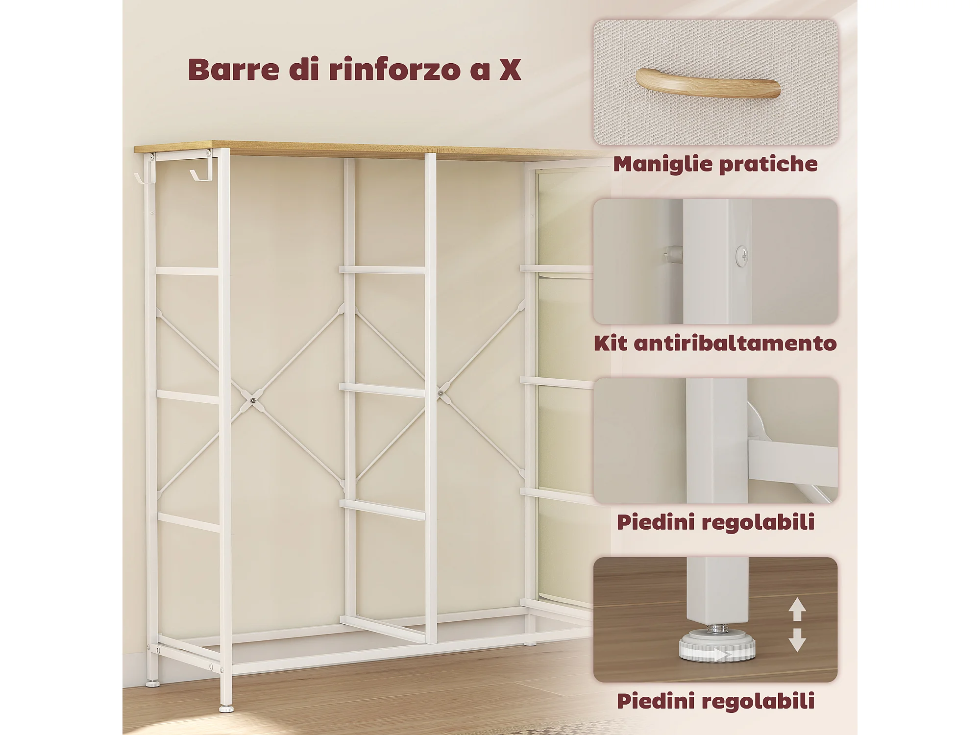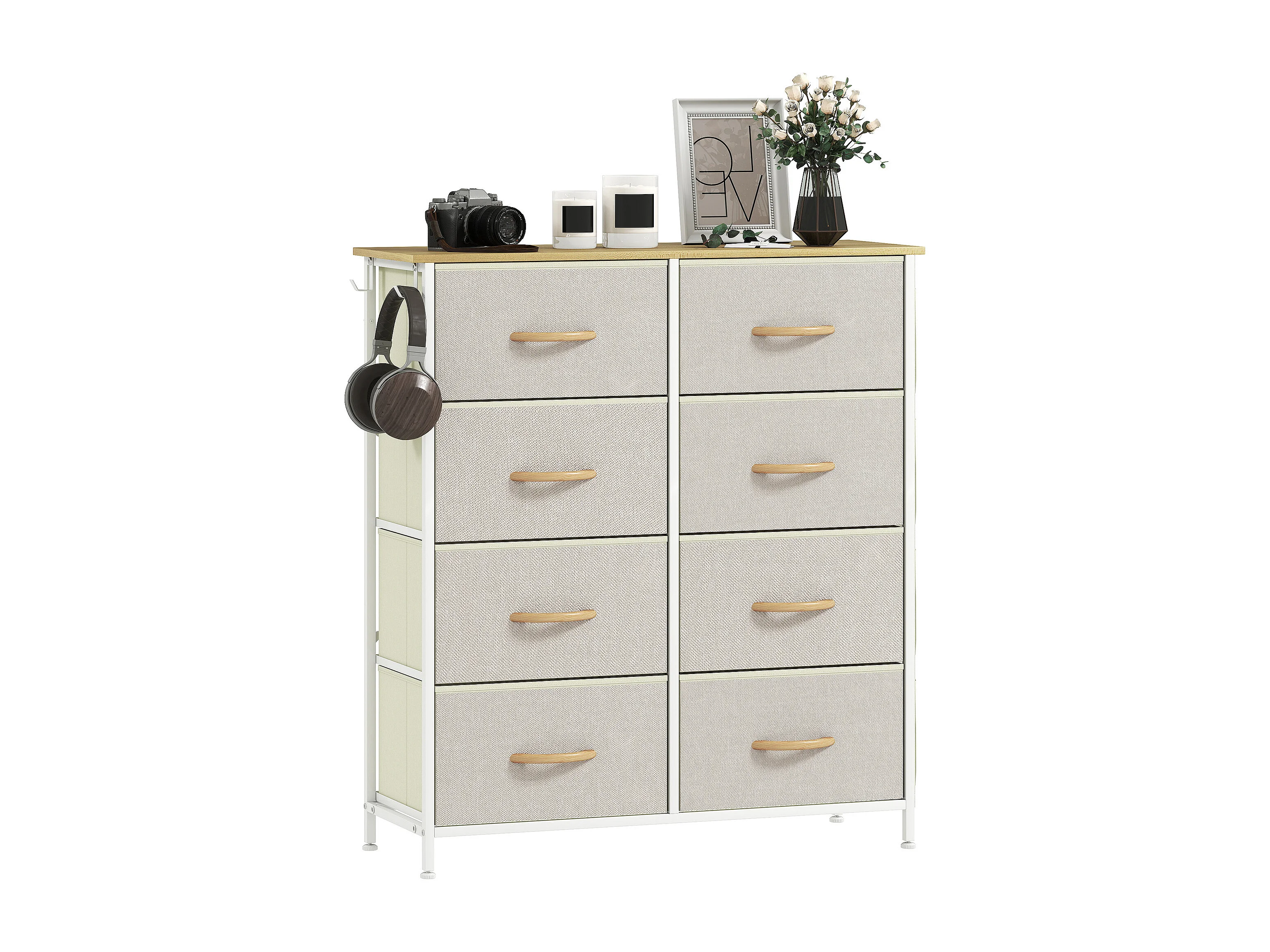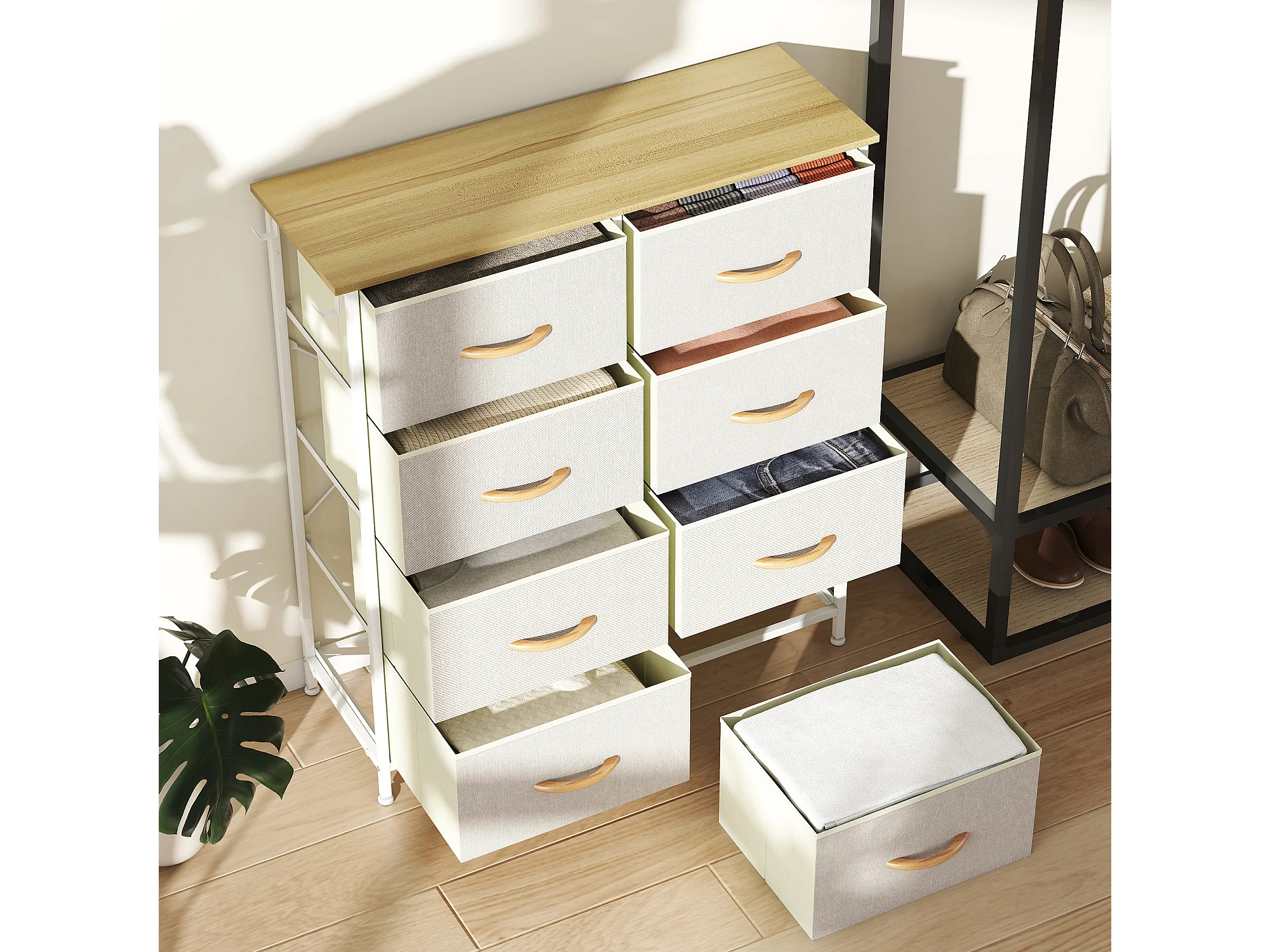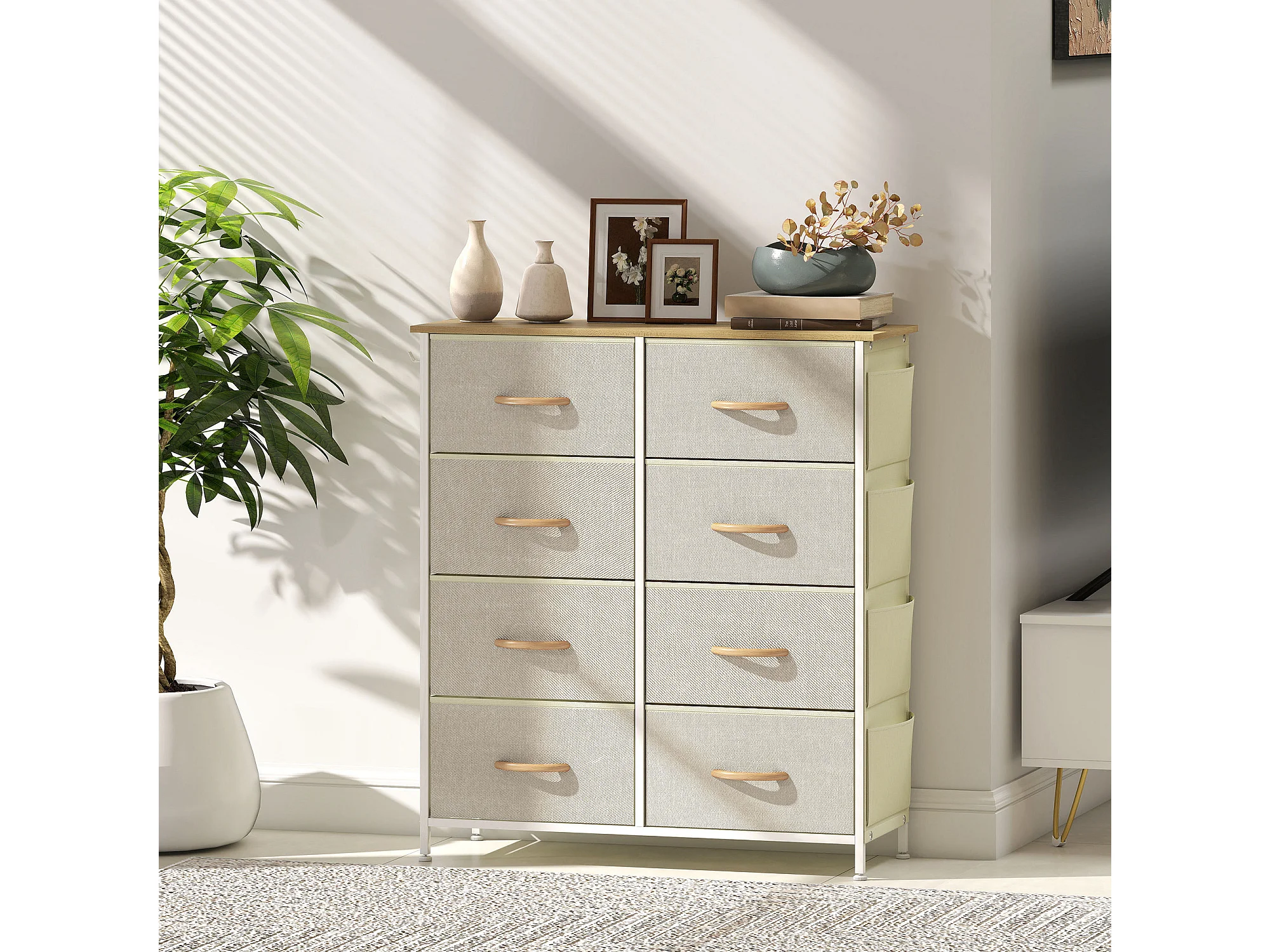 Cassettiera in tessuto con 8 cassetti pieghevoli 4 tasche portaoggetti e 2 ganci