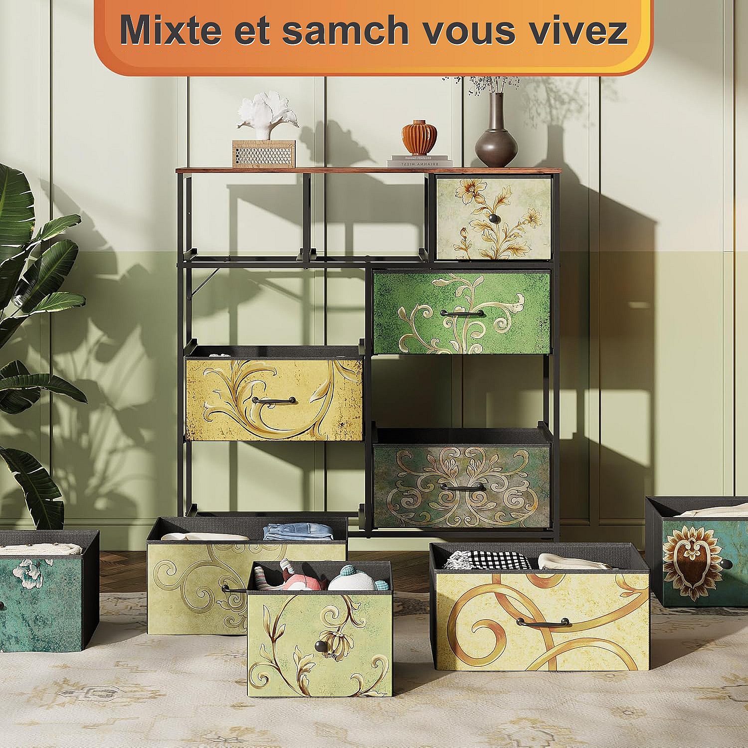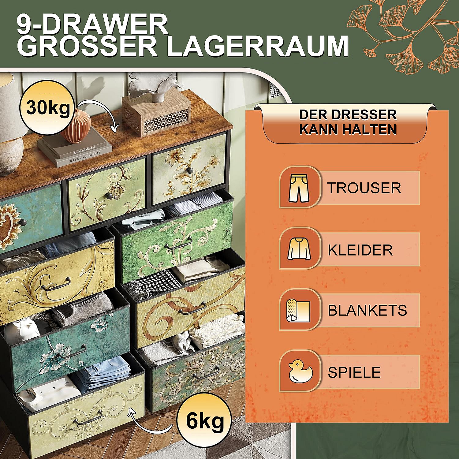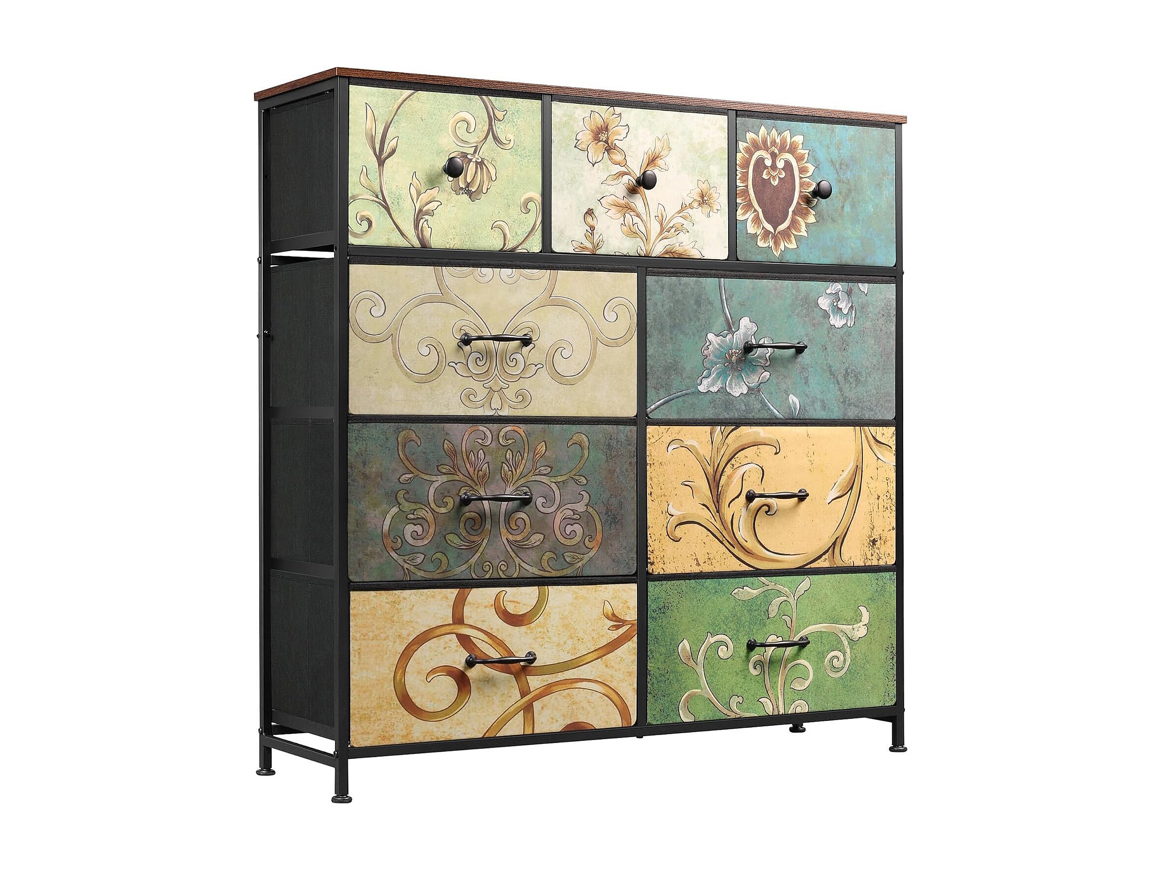Cassettiera in tessuto con 9 cassetti, 100 x 30 x 100 cm - Design con motivo retrò