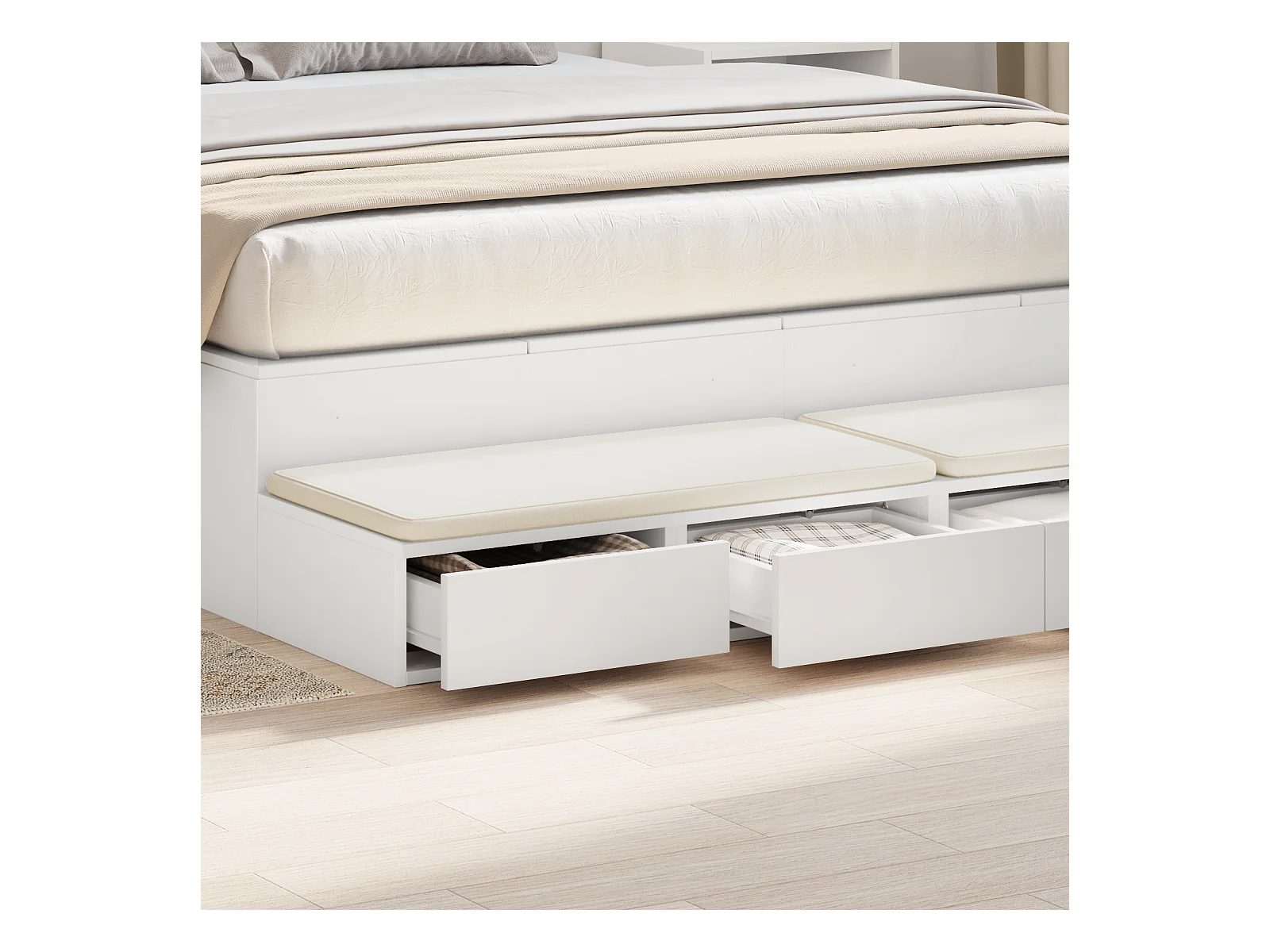 Letto con contenitori e cassetti