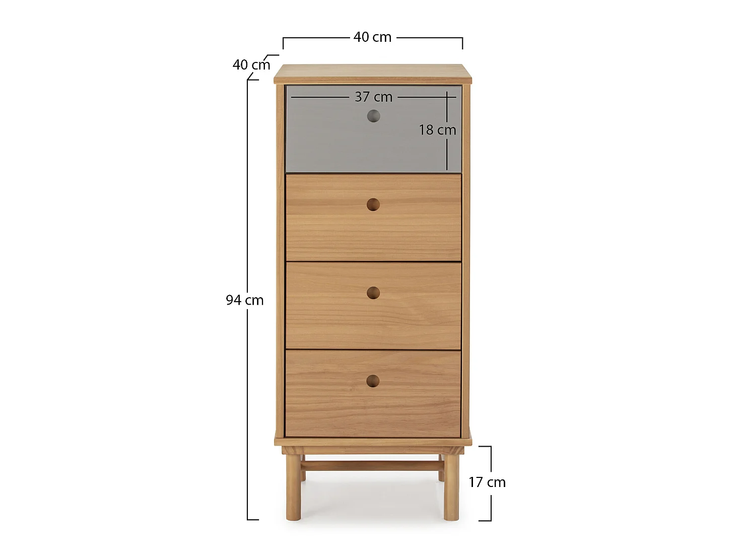 Cassettiera Magnus 4 cassetti, legno massiccio, 40 cm (larghezza) 40 cm (profondità) 94 cm (altezza)